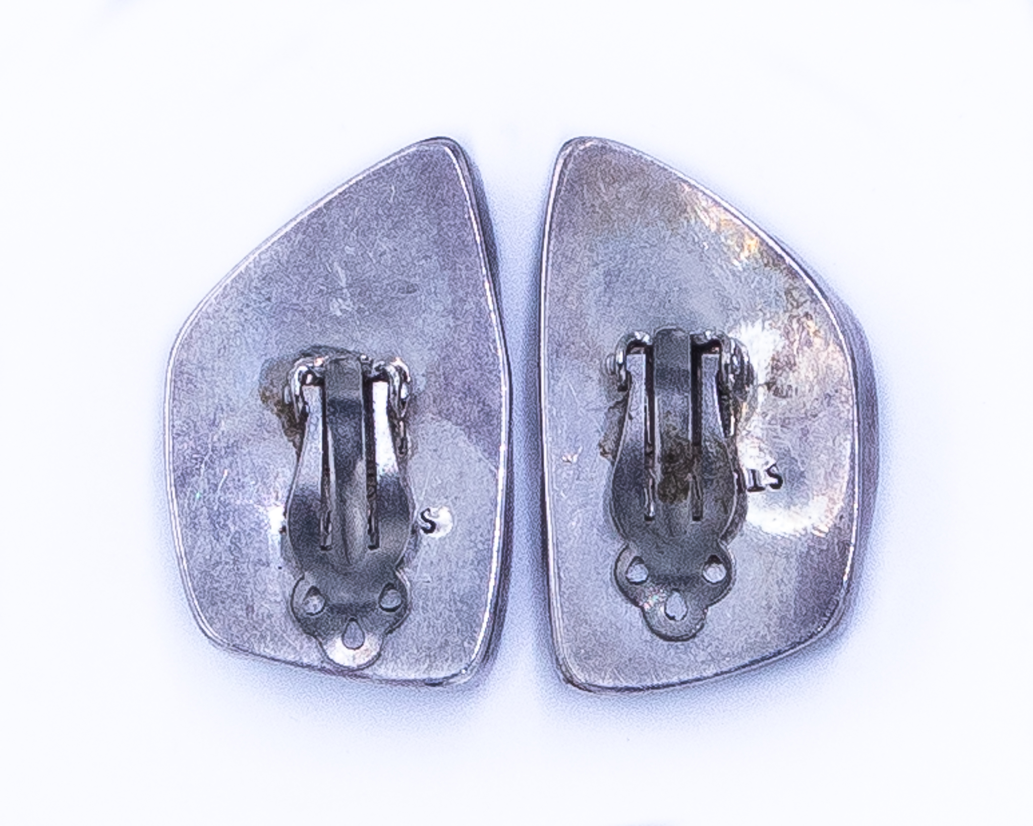 Vintage Navajo Spiderweb Turquoise Sterling Clip On Earrings 14.5g
