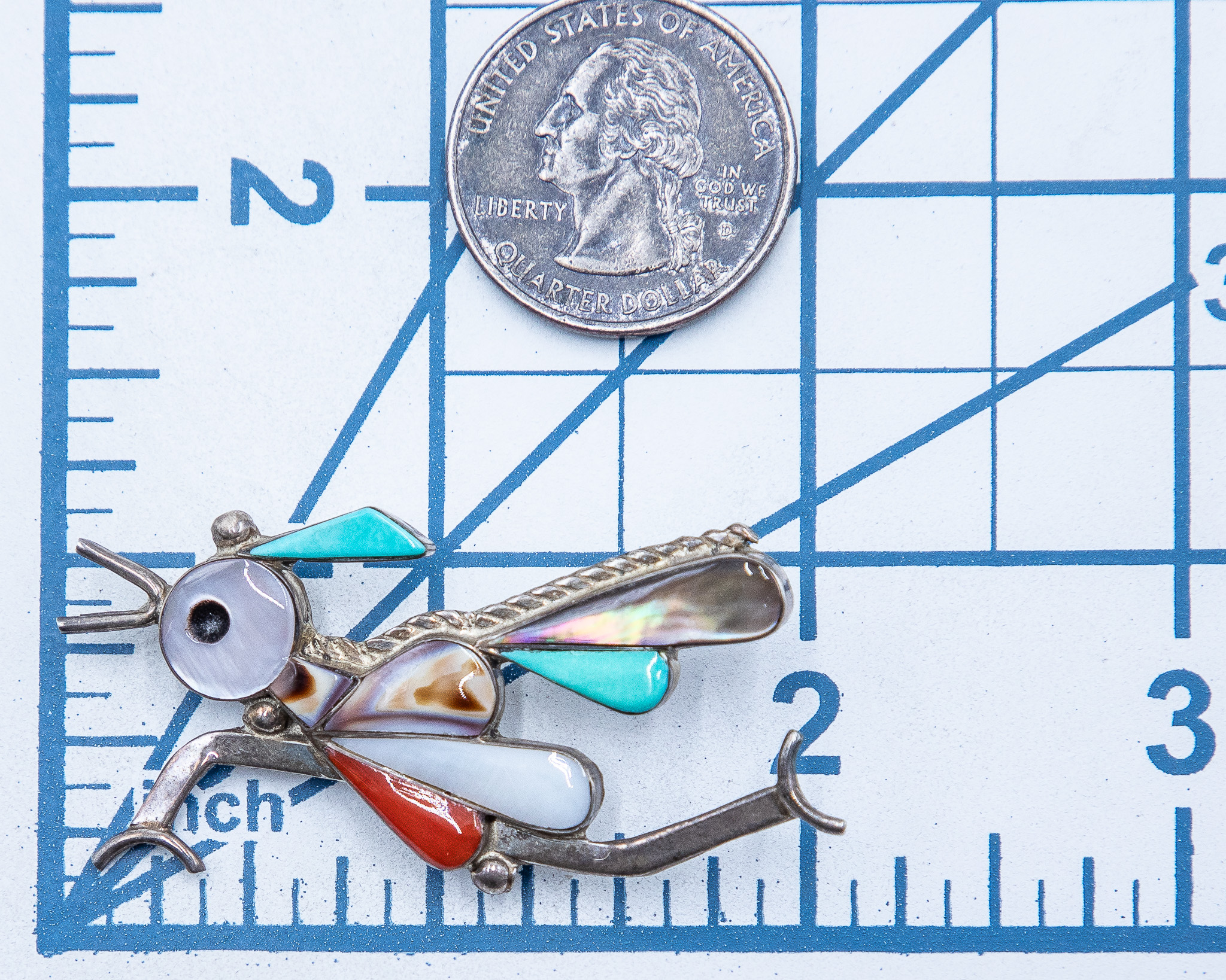 Caroline Edaakie Zuni Vintage Sterling Multistone Inlay Roadrunner Pendant/Brooch 6.6g