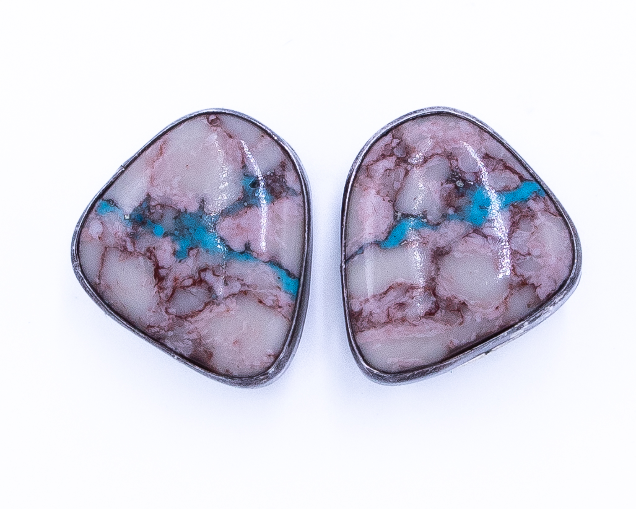 Vintage Navajo Boulder Royston Ribbon Turquoise Sterling Earrings 12.5g