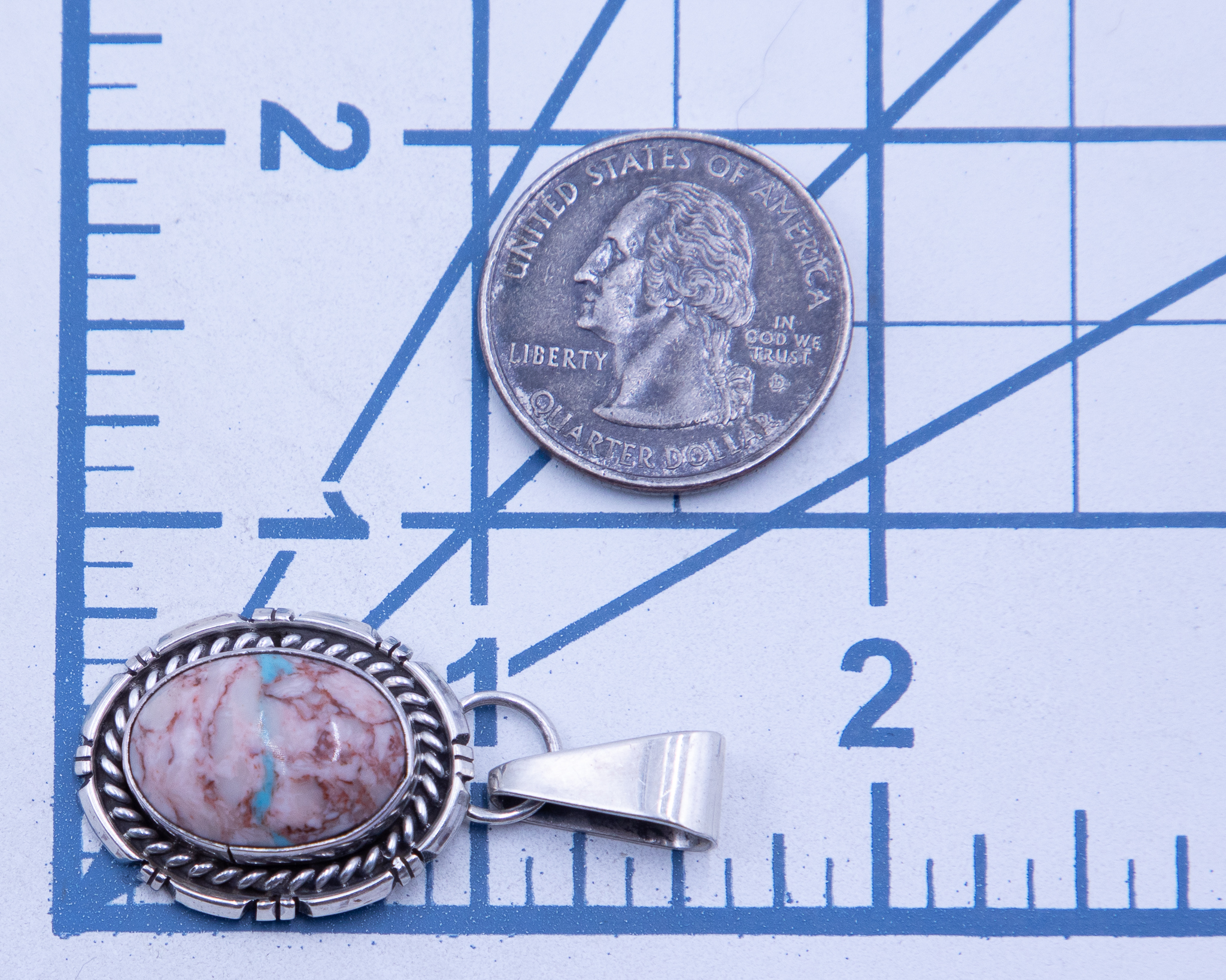 Signed P Navajo Boulder Royston Ribbon Turquoise Sterling Pendant 7g