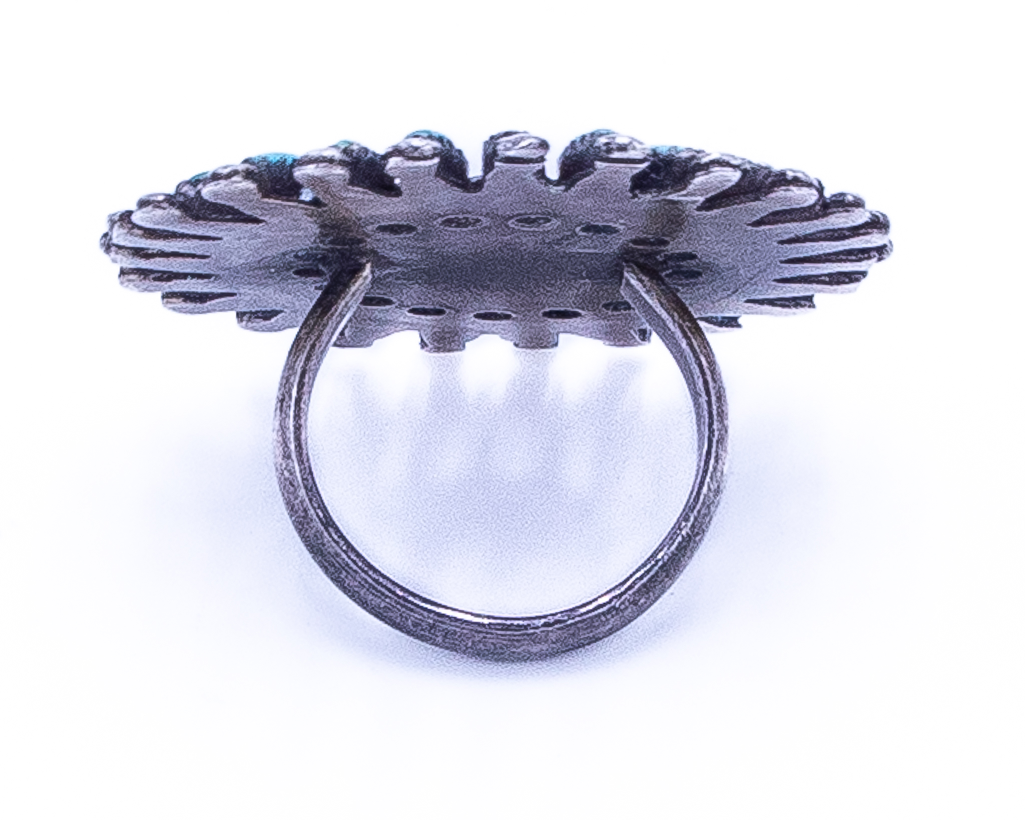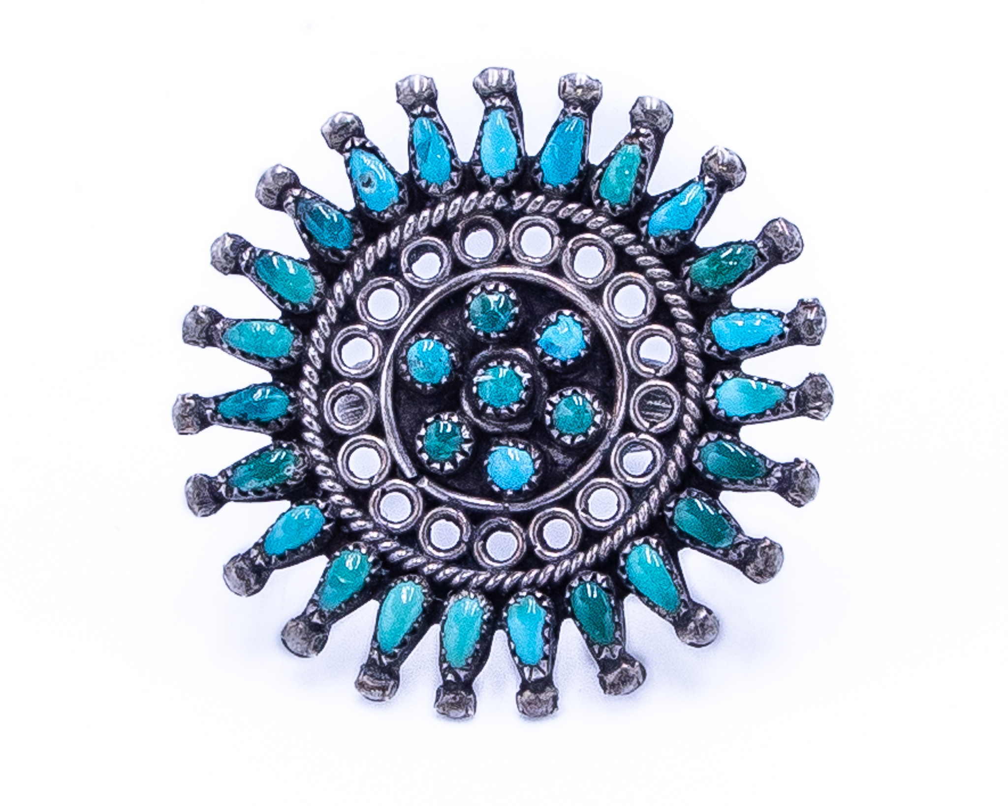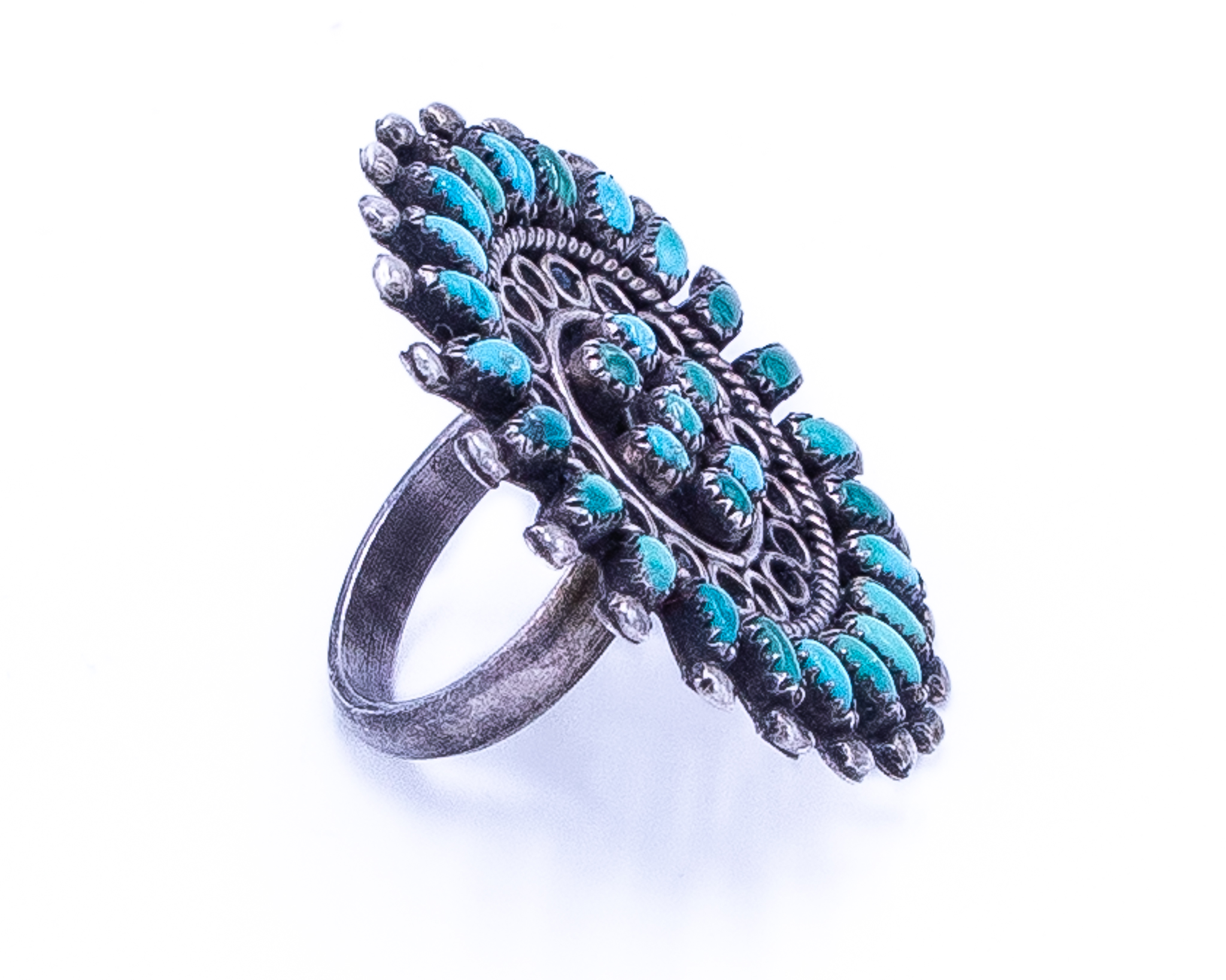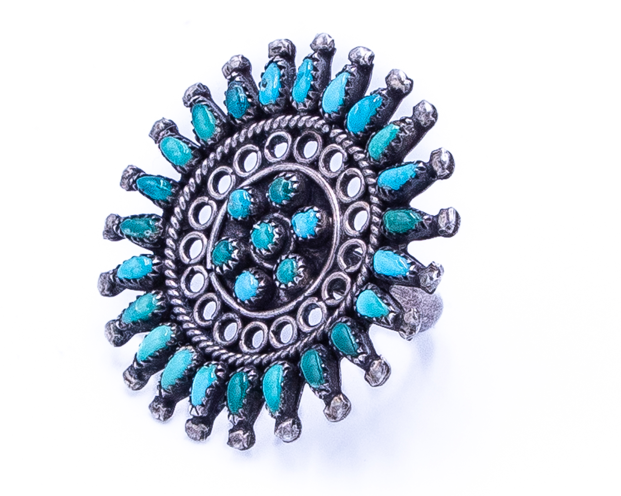Vintage Zuni Snake Eye Petit Point Turquoise Sterling Ring Sz 6, 9g