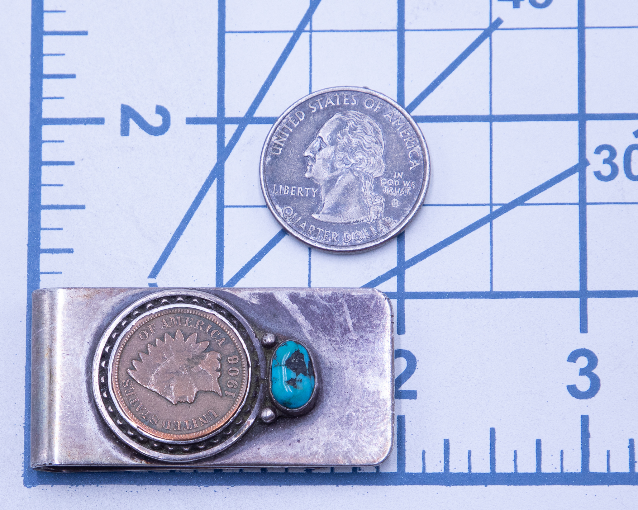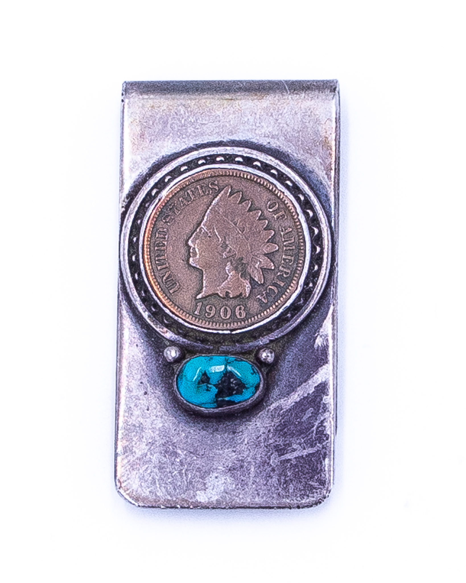 1906 Indian Head Penny Vintage Navajo Turquoise Sterling Money Clip 29g