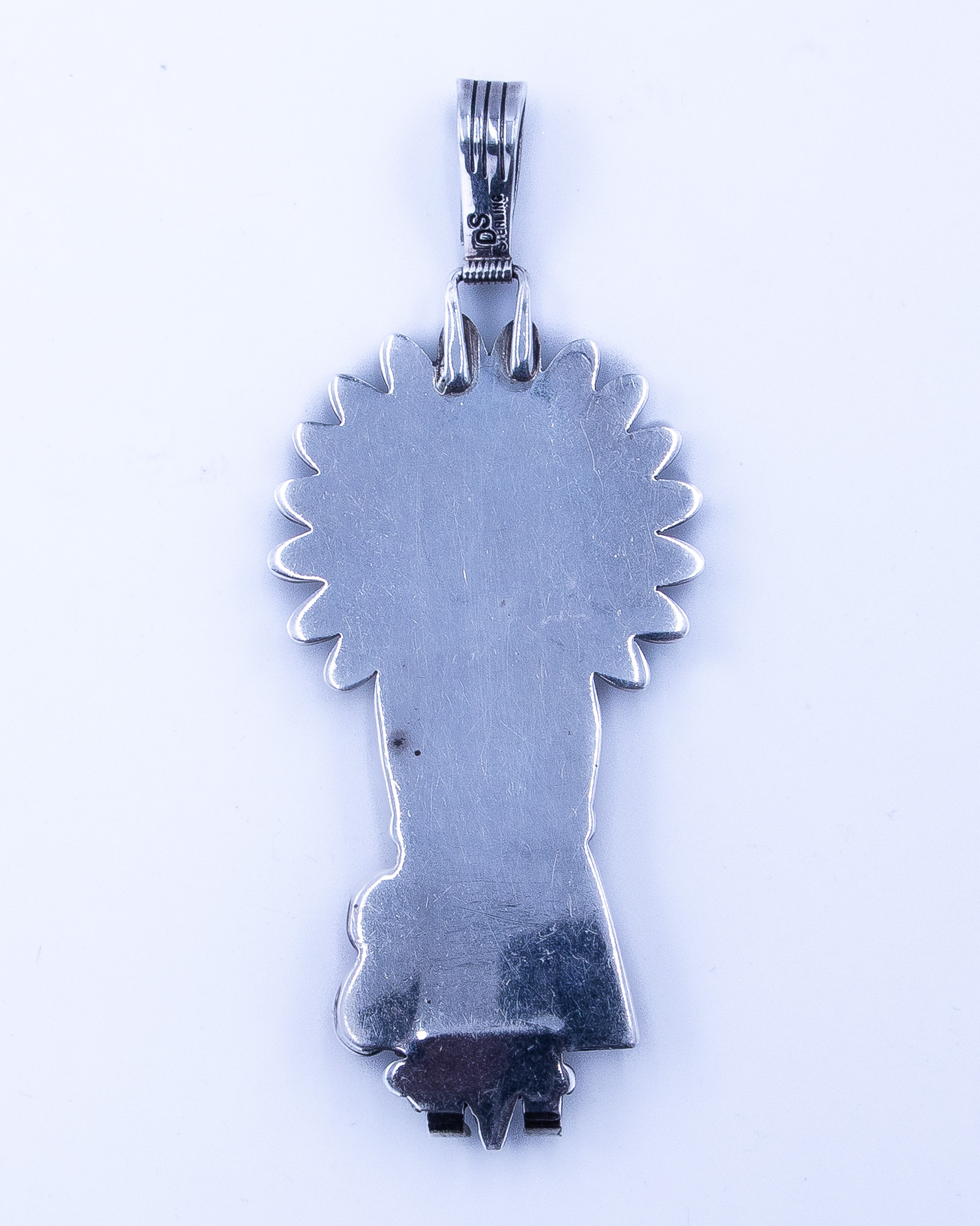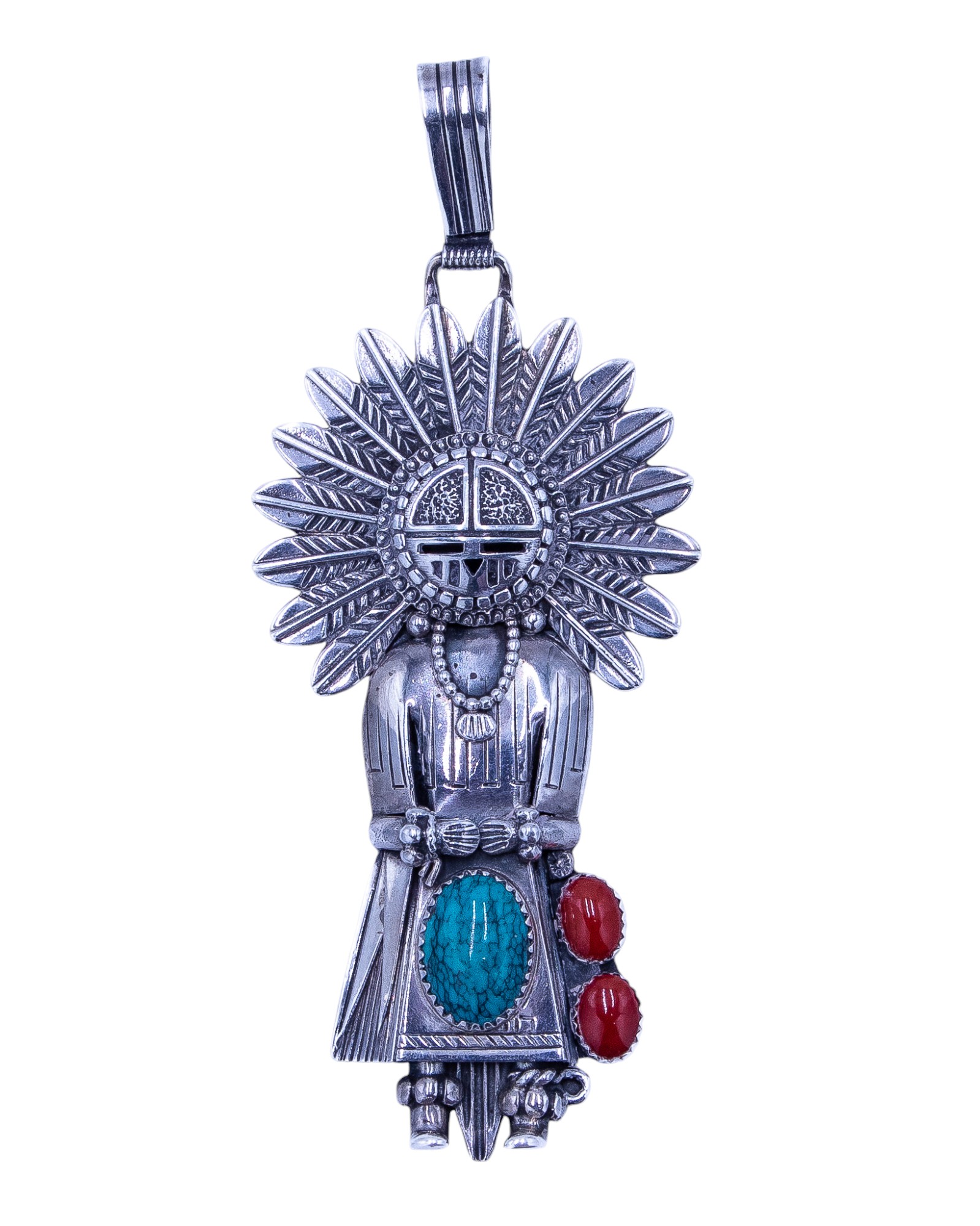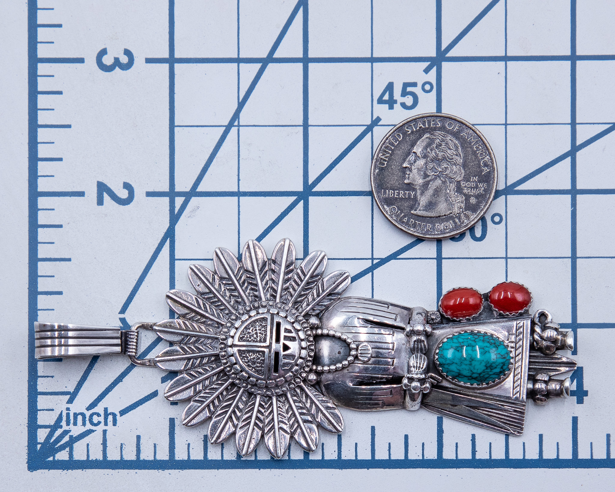 Dorothy Secatero Kachina Sunface Turquoise Coral Sterling Pendant 34.4g