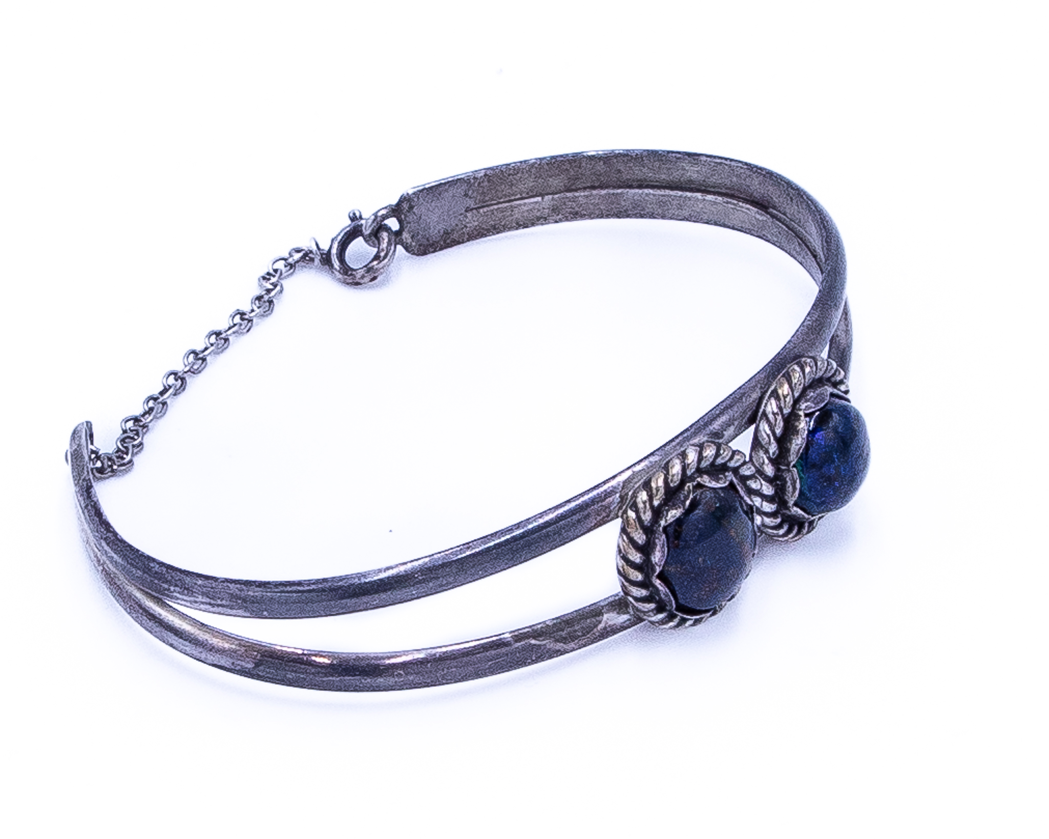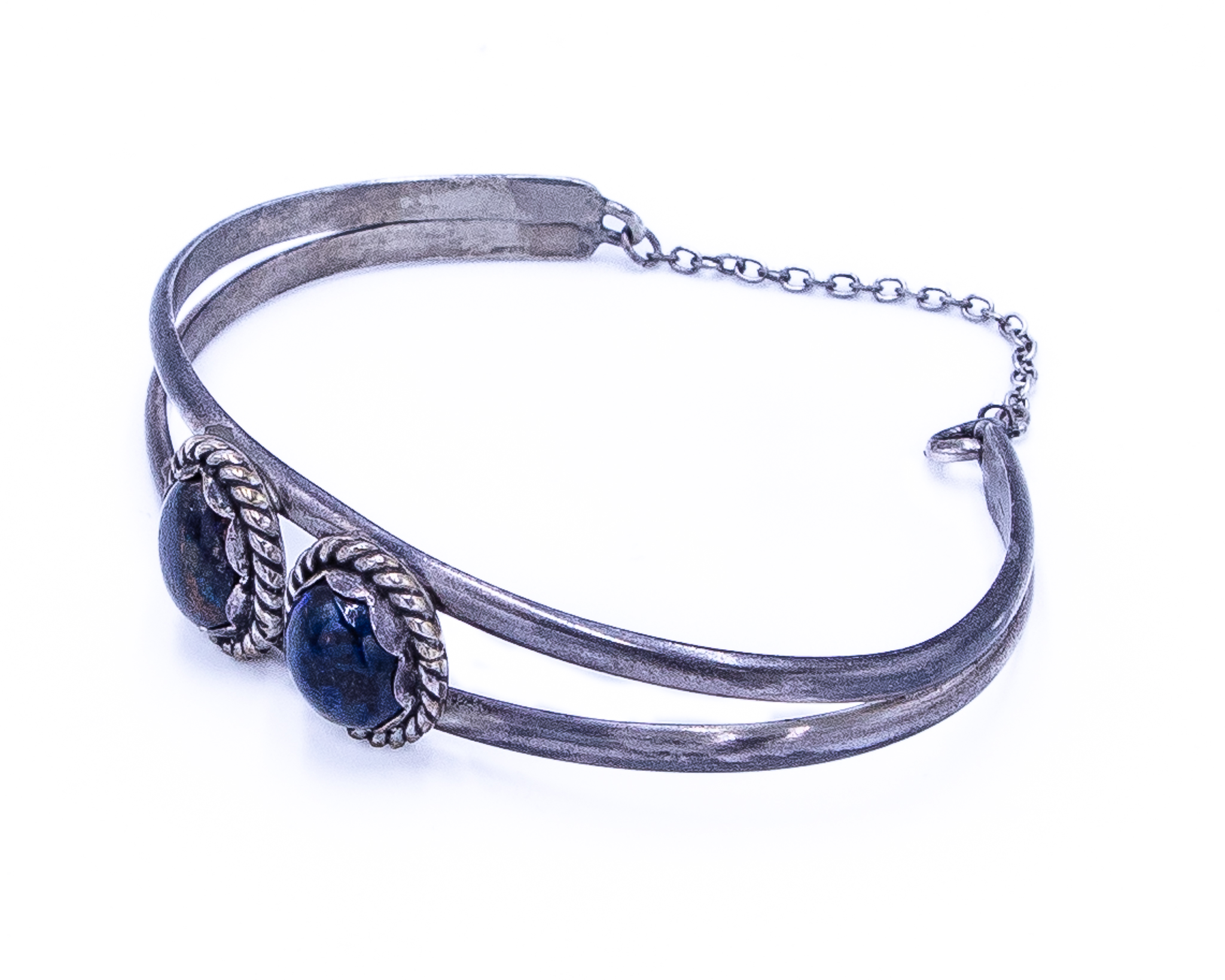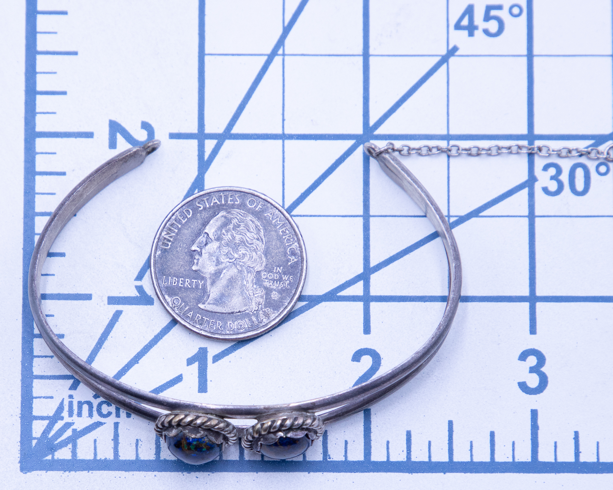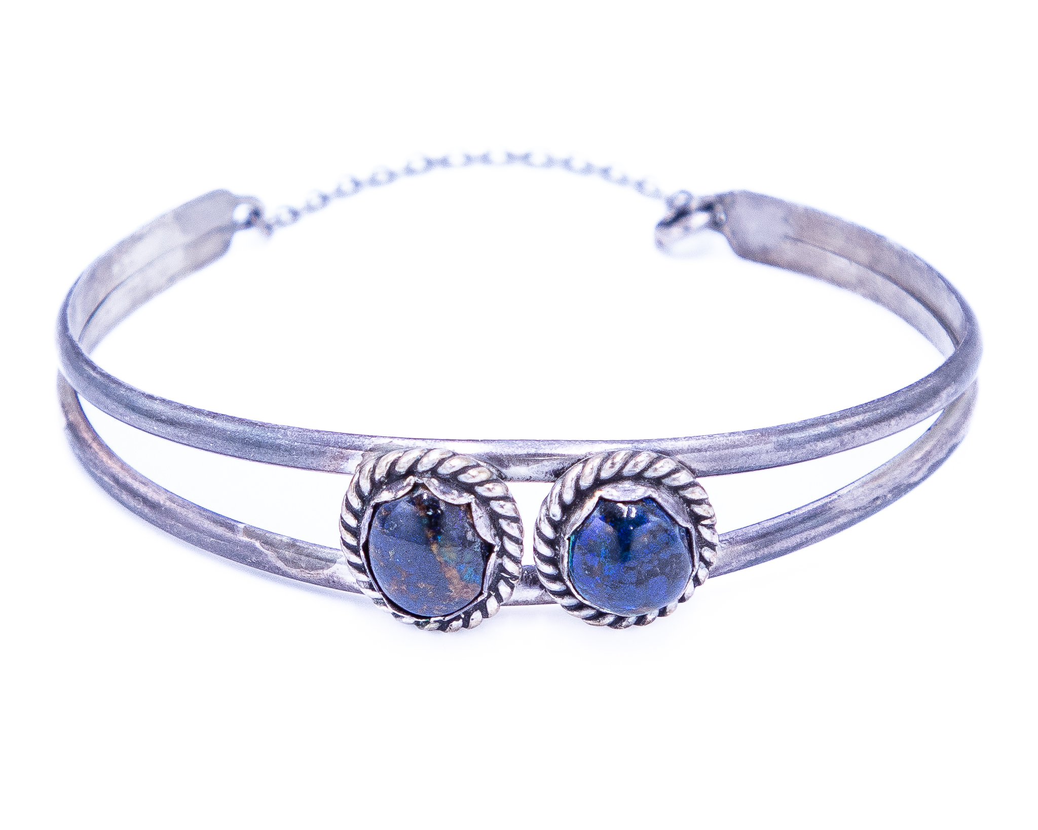 Signed Navajo Azurite Sterling Clasp Cuff Bracelet 17g-Pictograph Signature