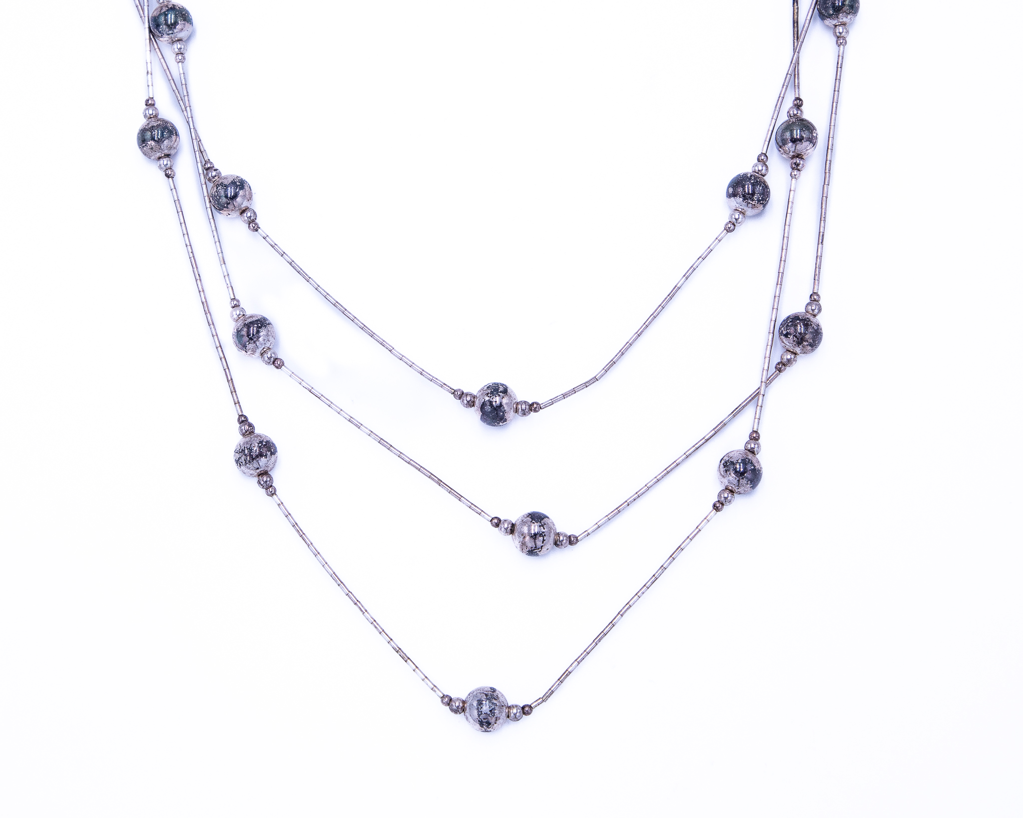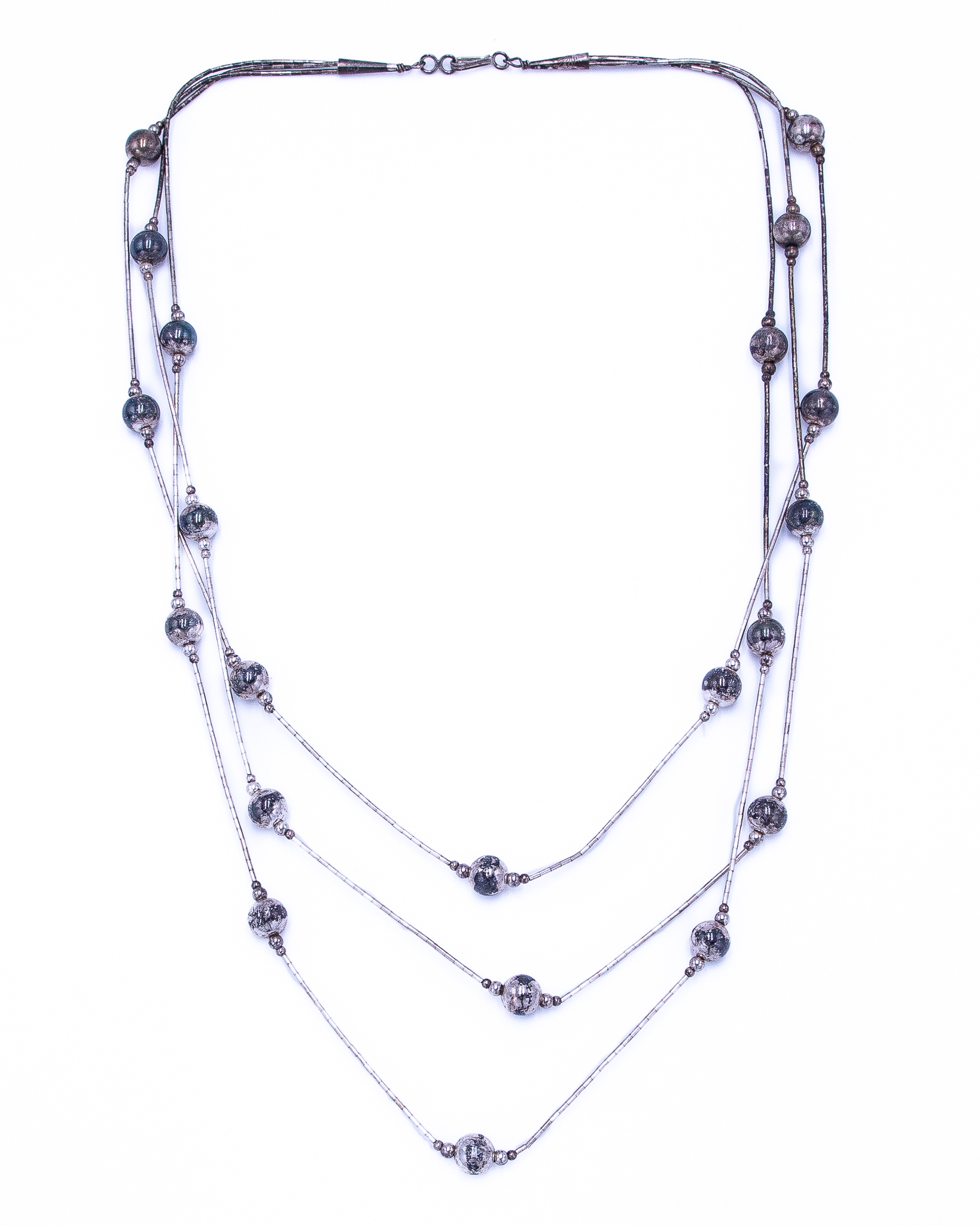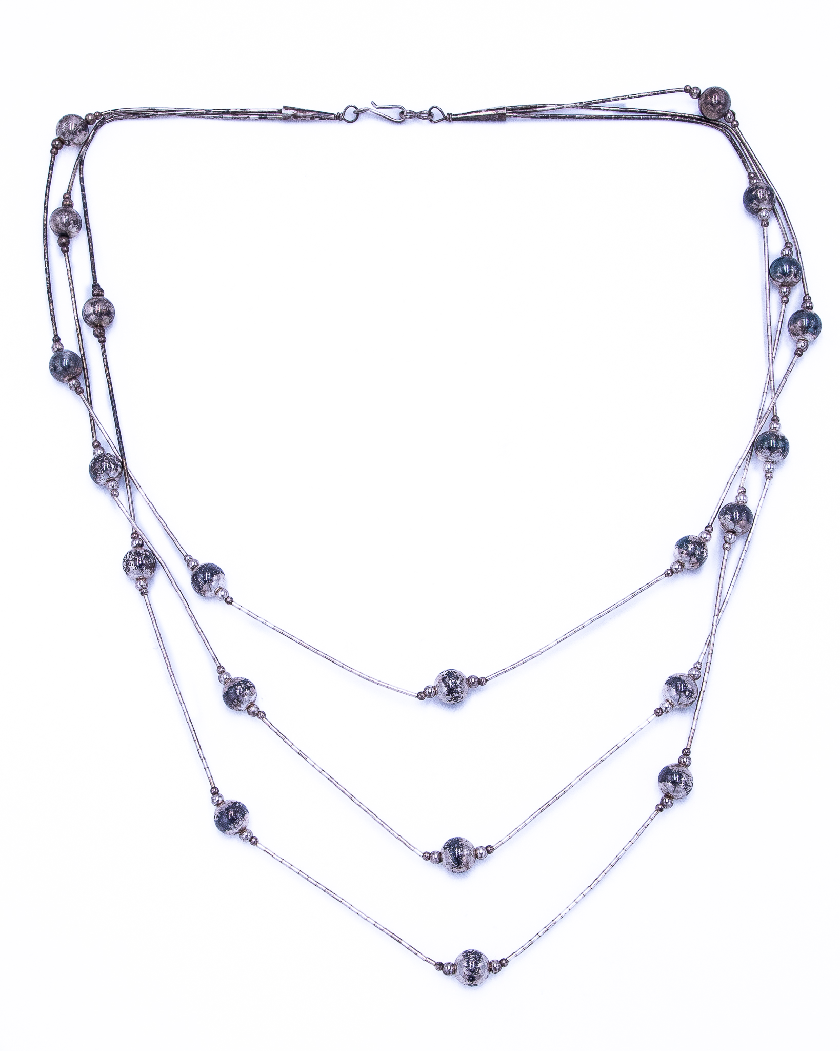 Vintage Native American Liquid Sterling Silver Beaded Necklace 20g