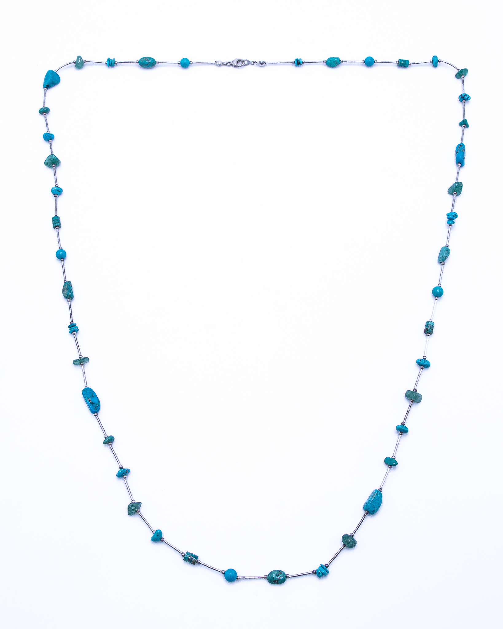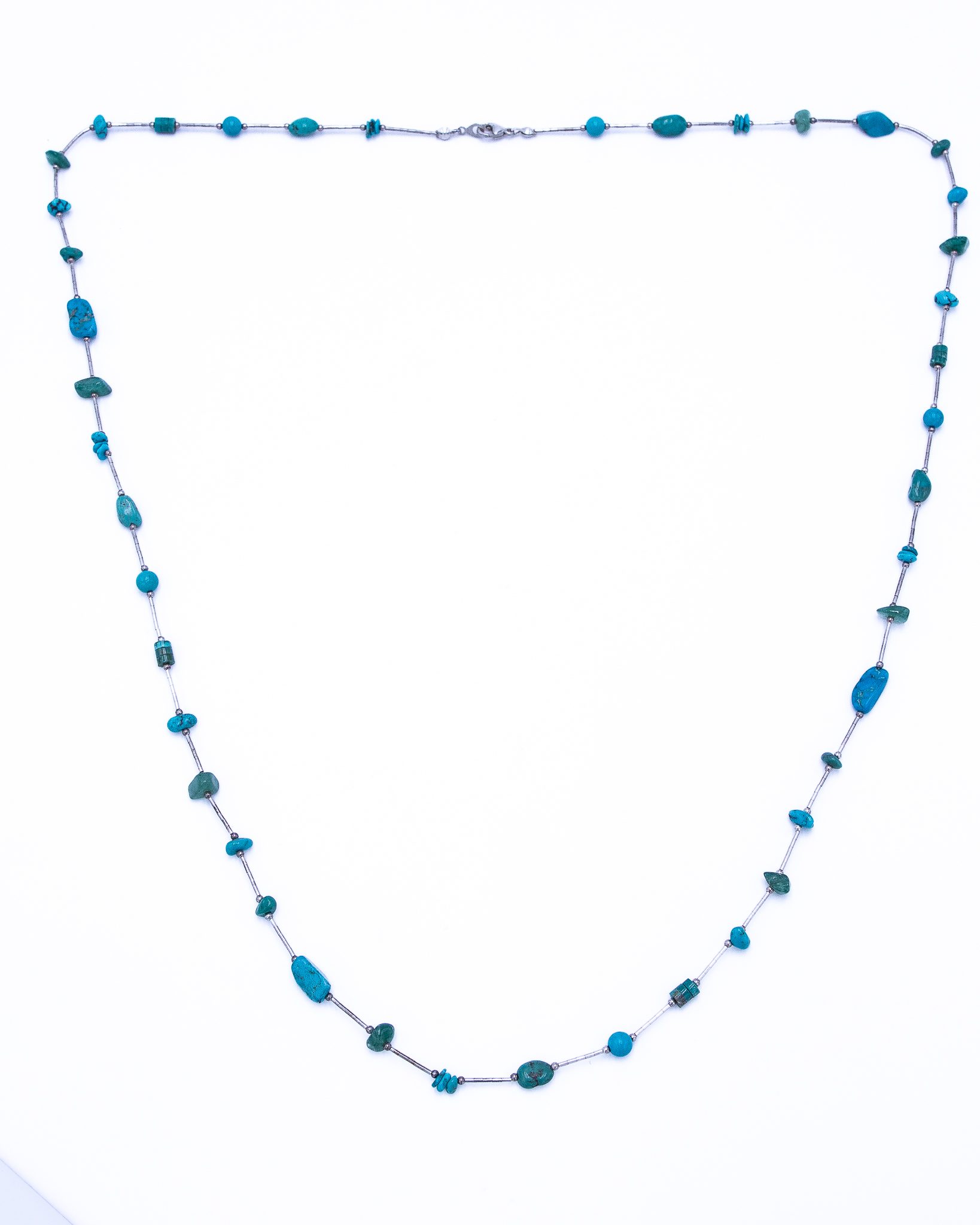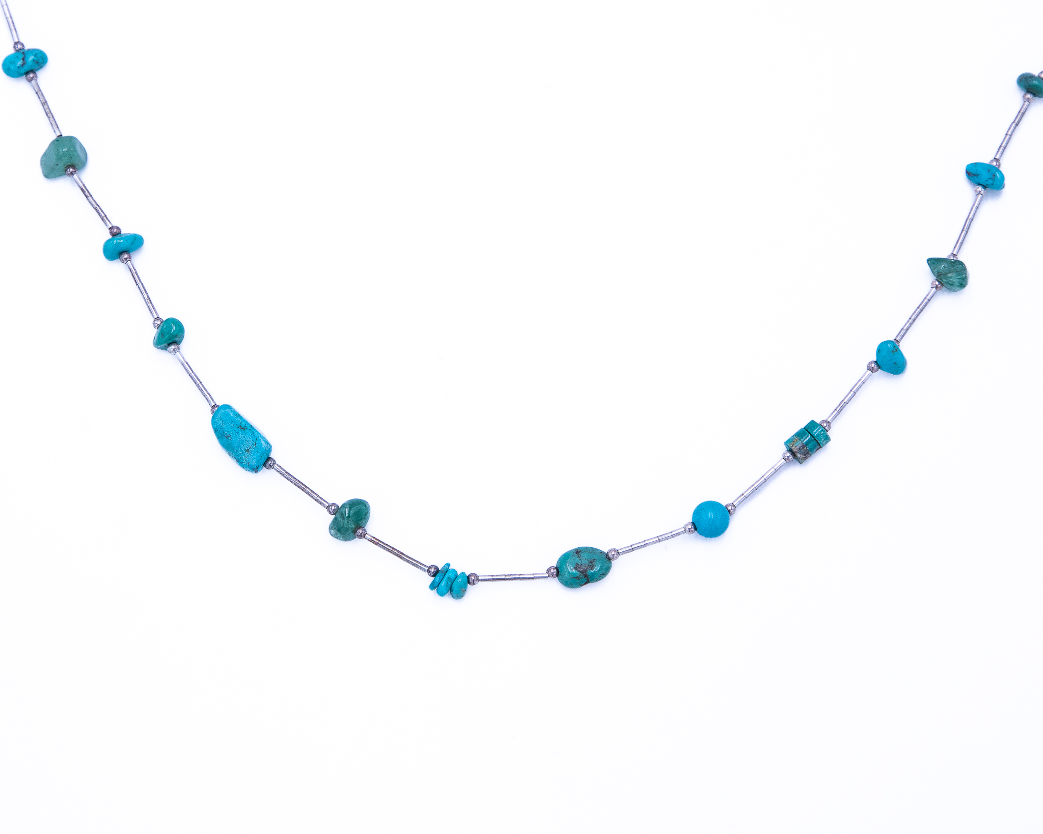 Shubes Manufacturing Inc. Turquoise Chunk Liquid Sterling Silver Necklace 18g