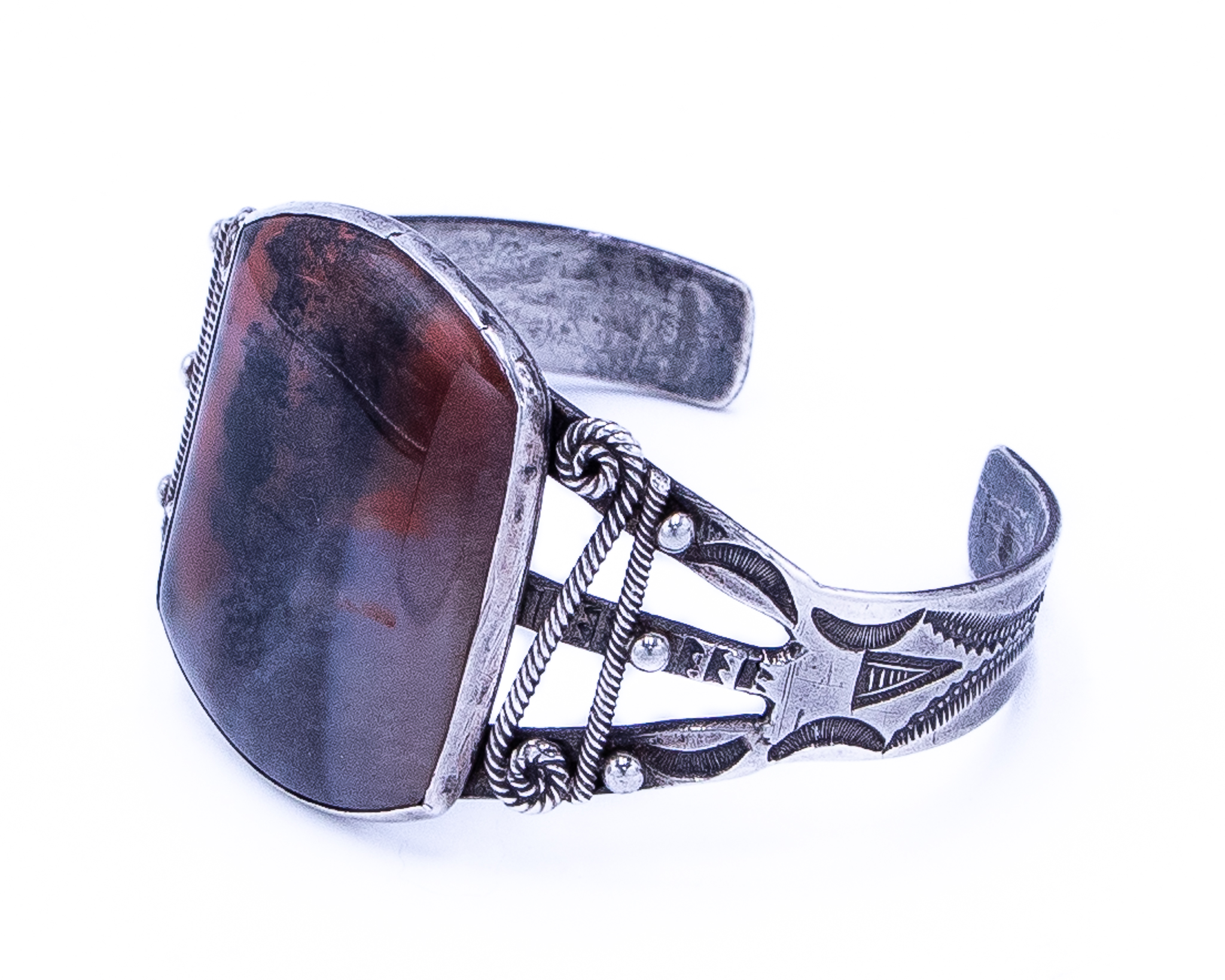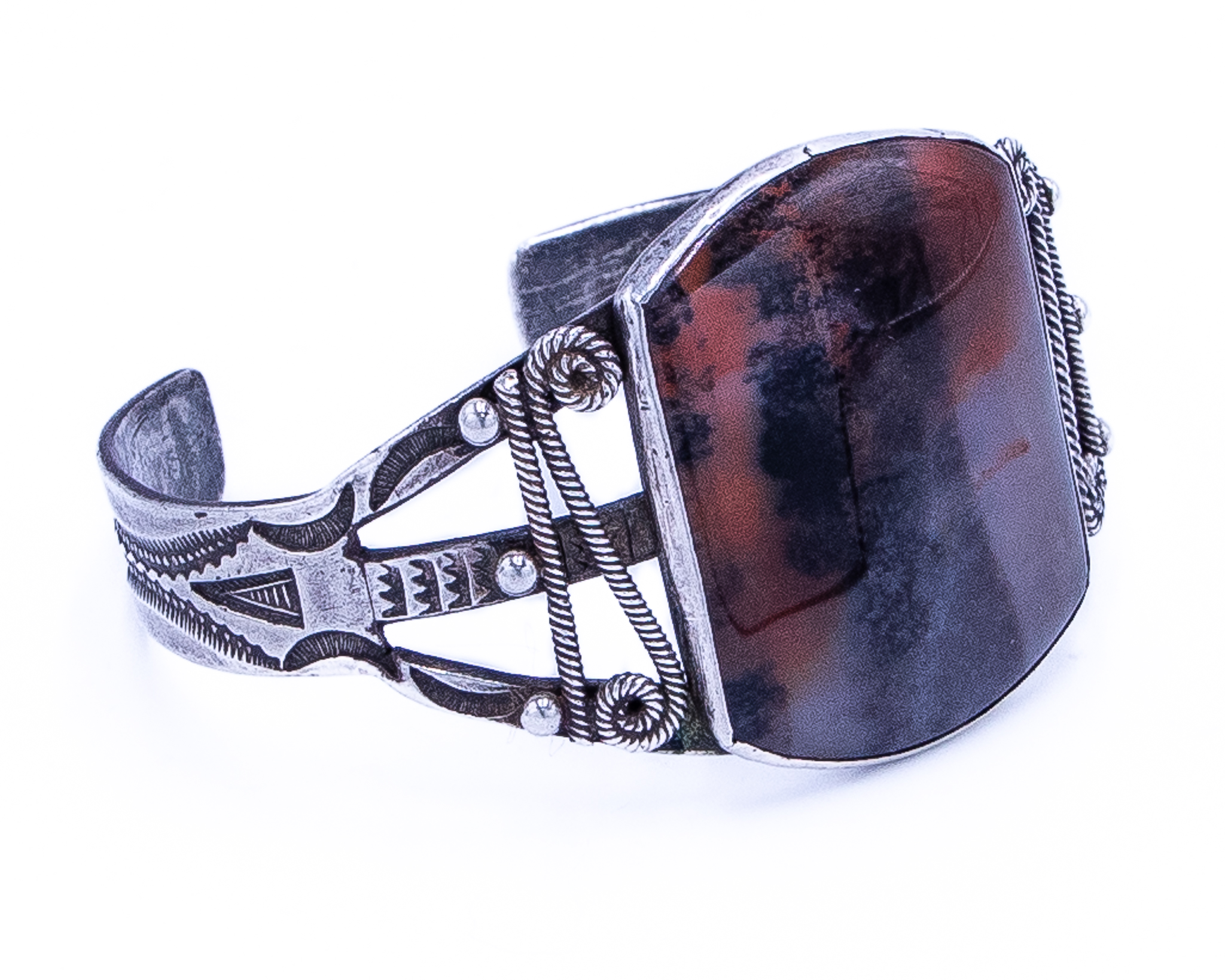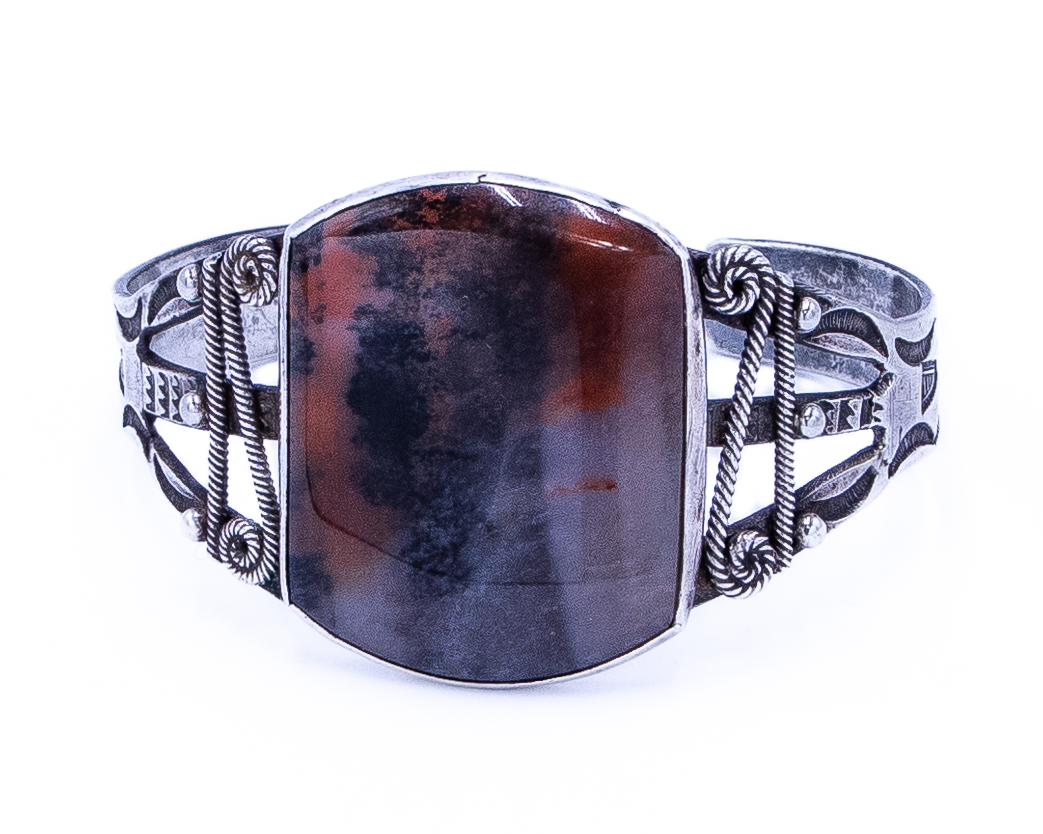 Vintage Navajo Brecciated Jasper Sterling Overlay Cuff Bracelet 40g