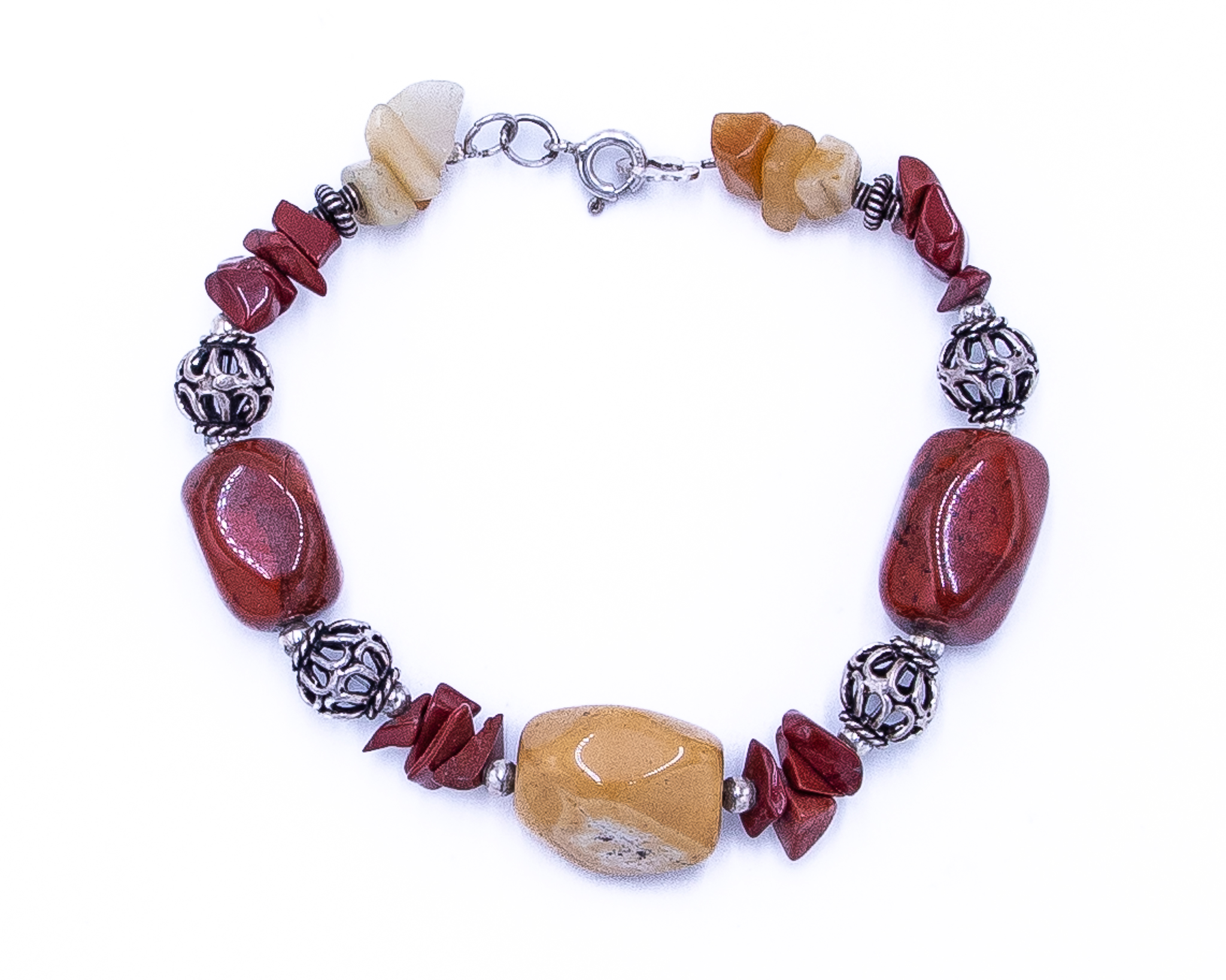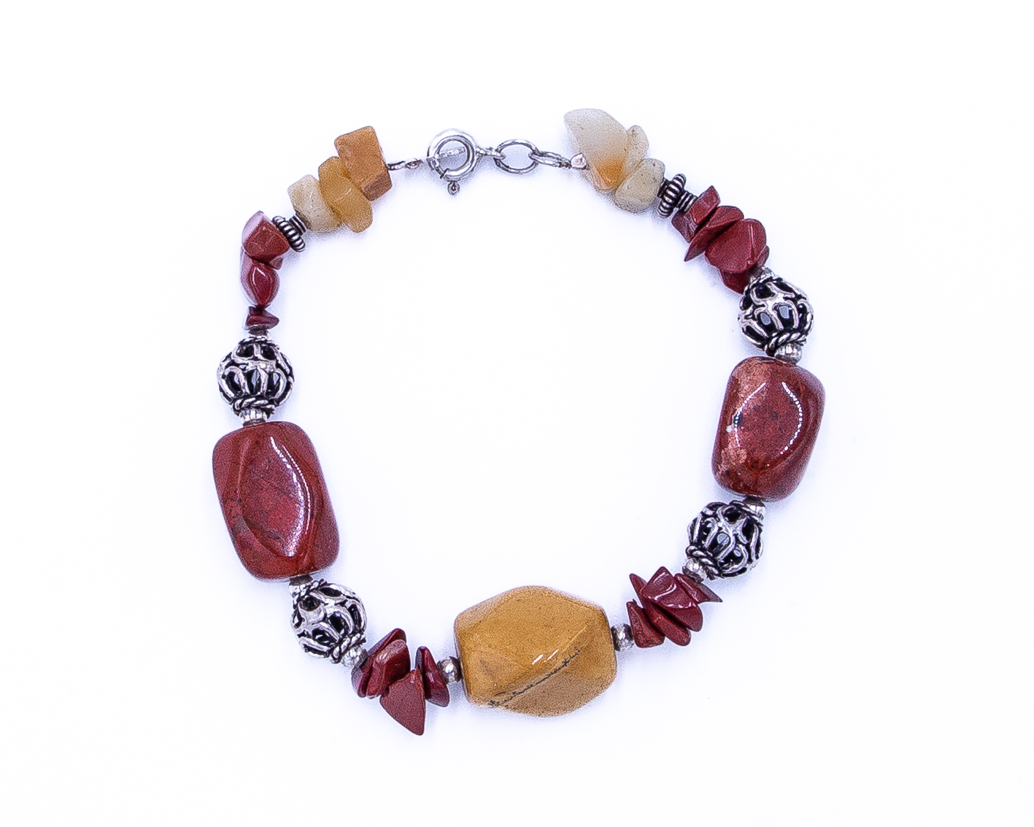 Vintage Southwestern Inspired Jasper Chunk Sterling Bracelet 23g-Signed CW/MC, Not Native American