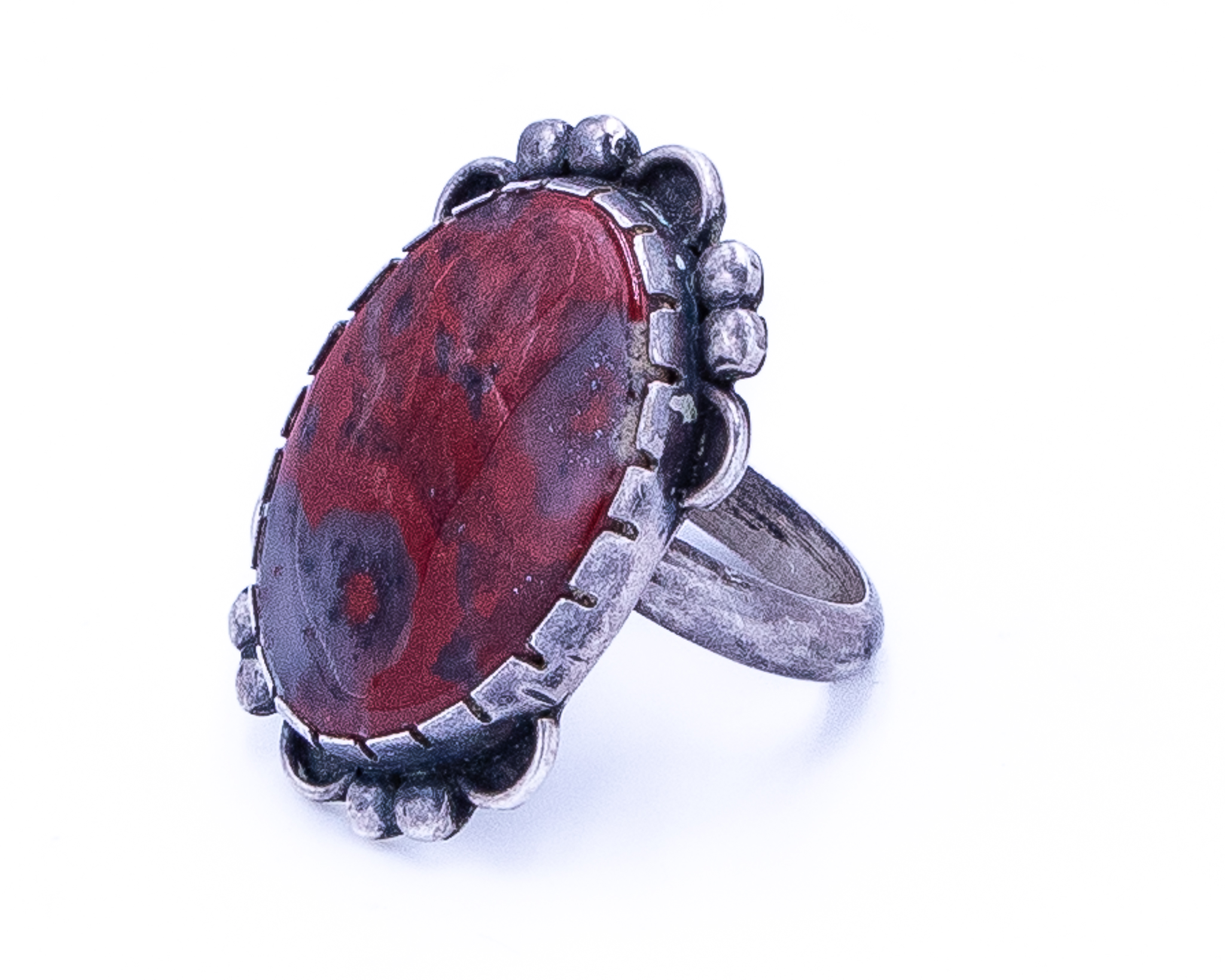 Signed EJ Navajo Brecciated Jasper Sterling Ring Sz 6.25, 7g