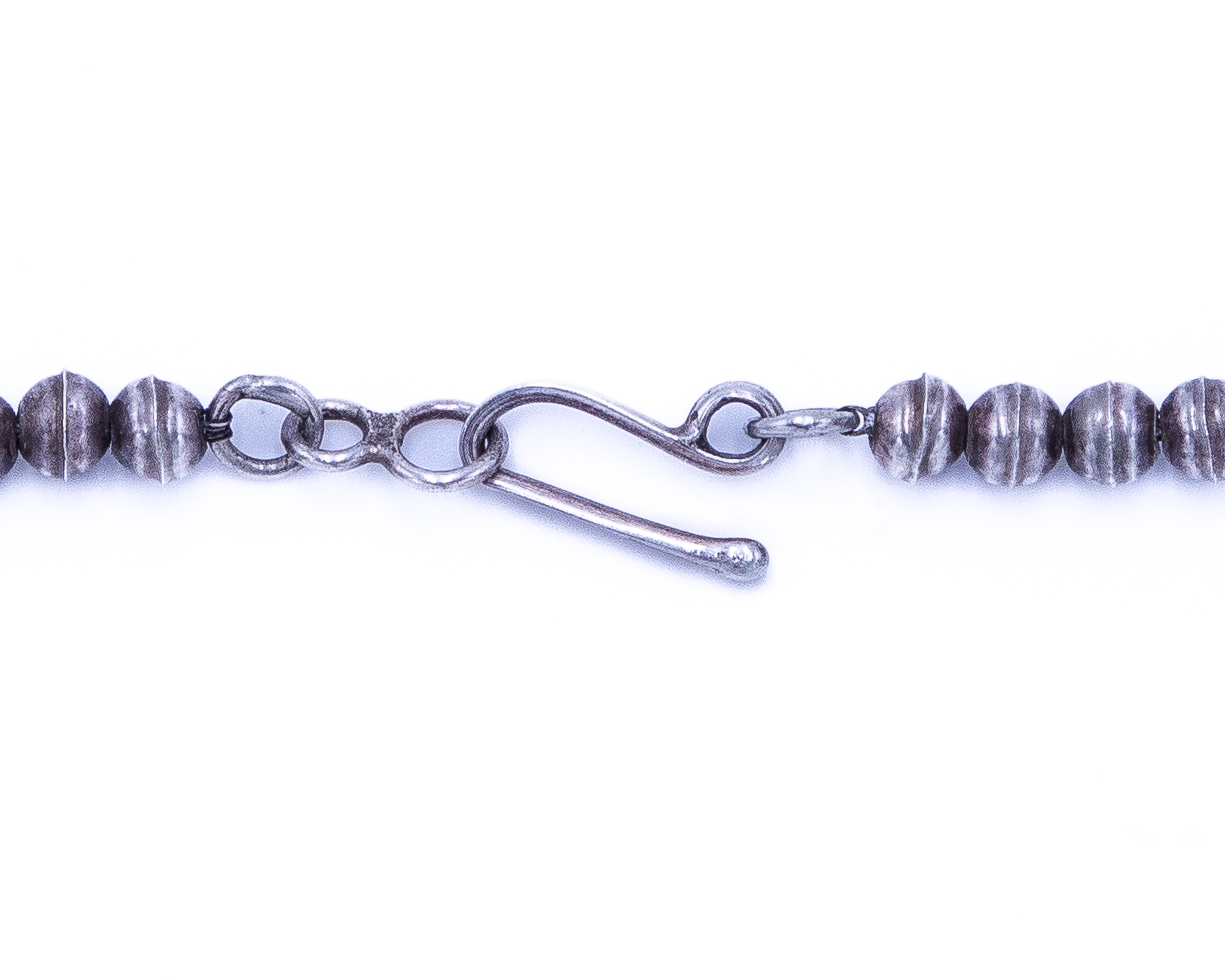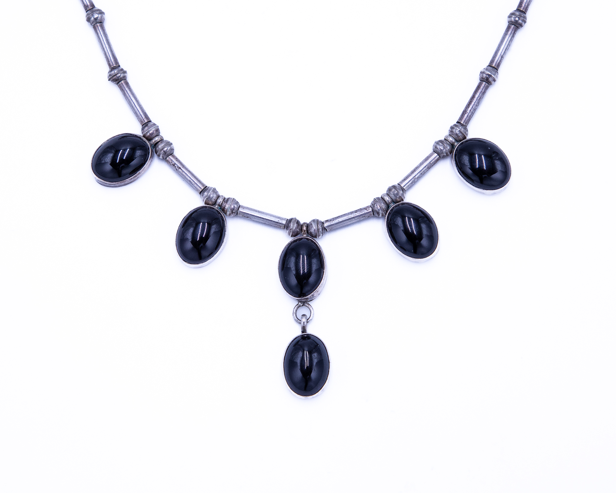 Signed LW Navajo Onyx Sterling Hollow Beaded Necklace 33.5g