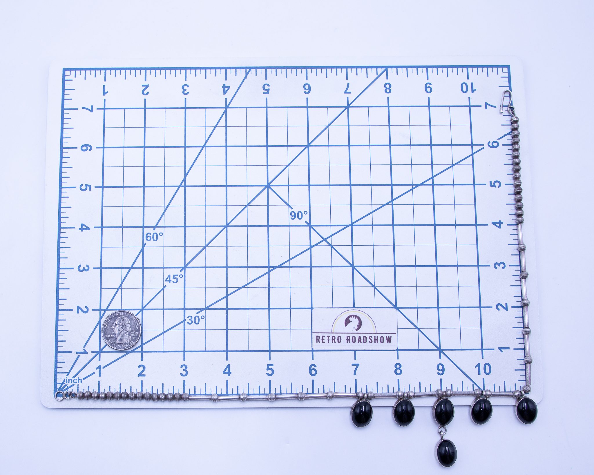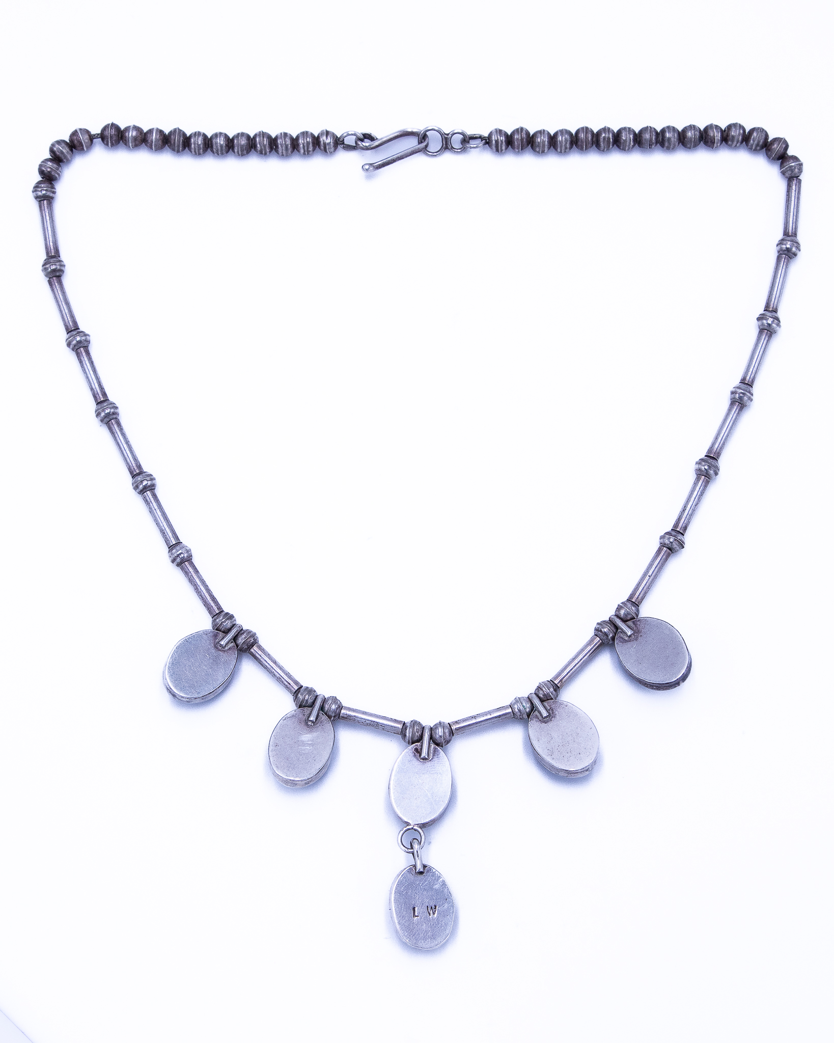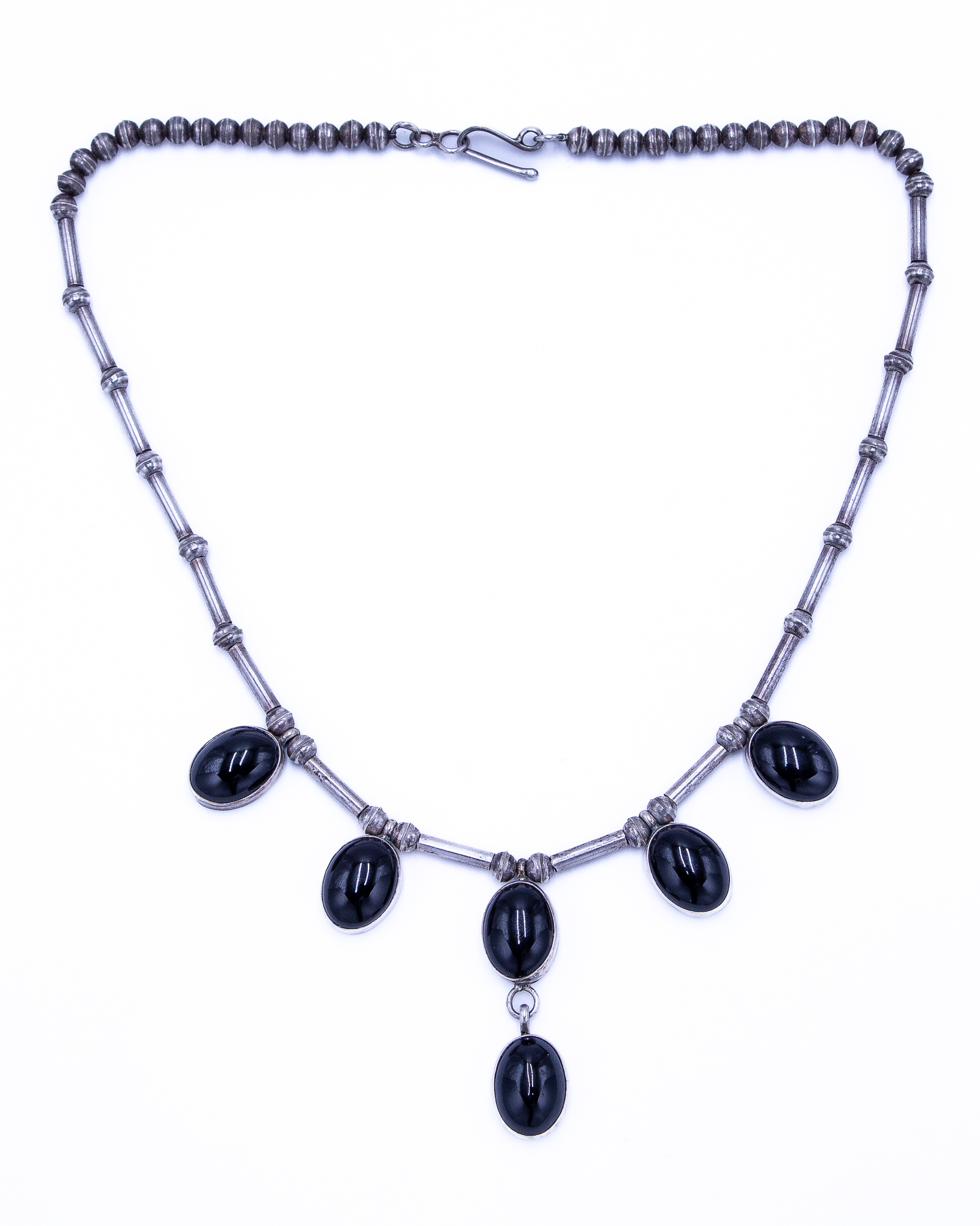 Signed LW Navajo Onyx Sterling Hollow Beaded Necklace