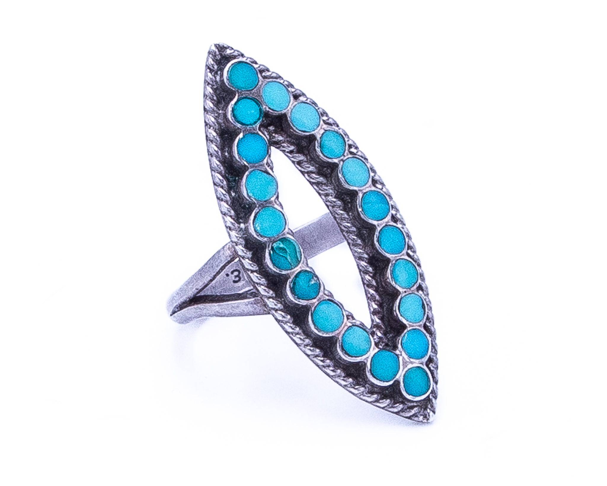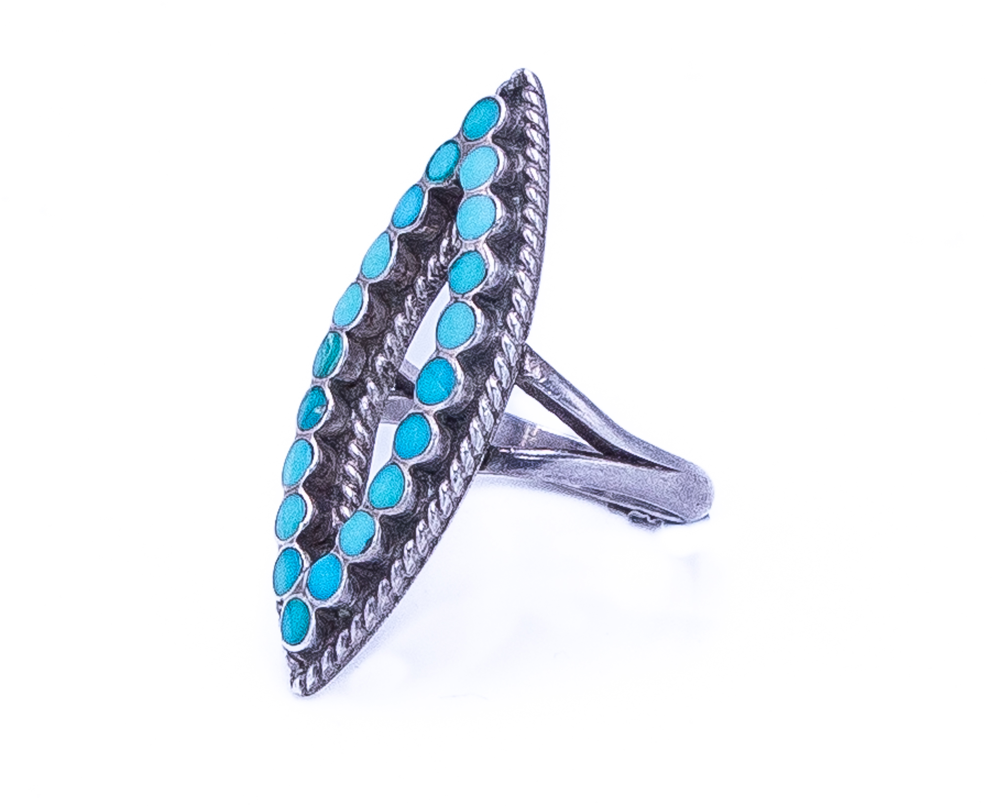 Signed BGE Zuni Turquoise Sterling Dishta Ring Sz 4.75