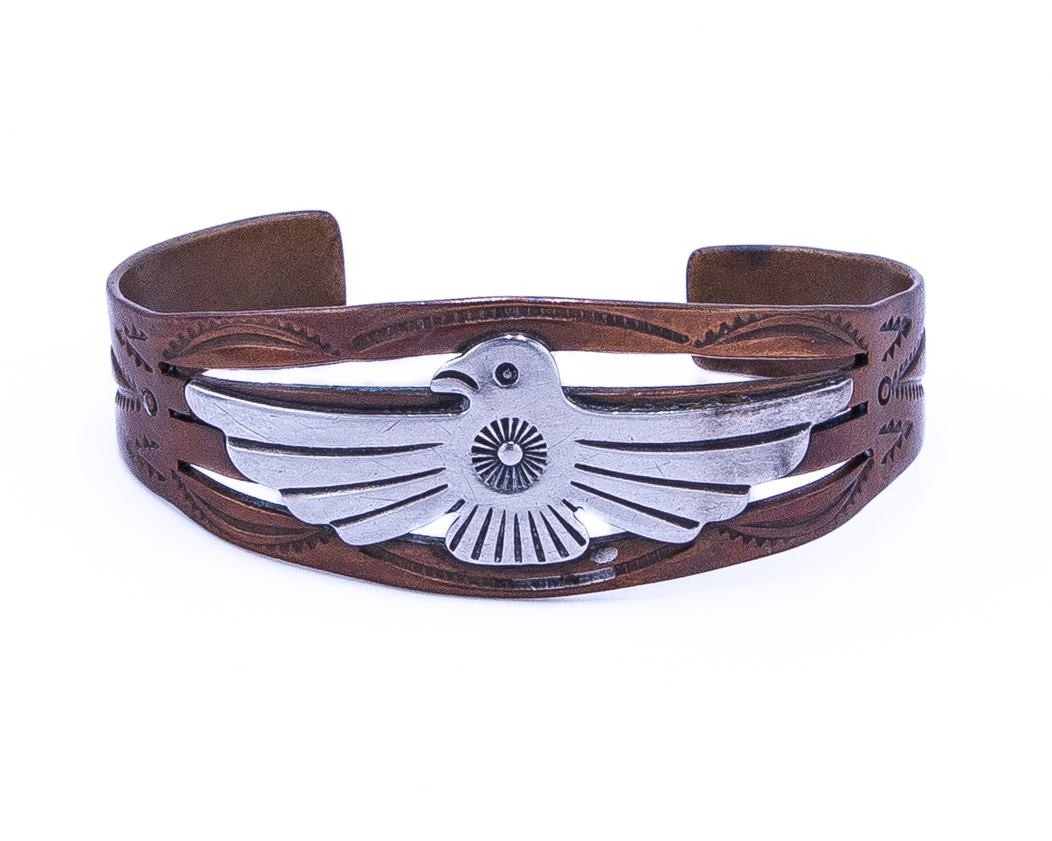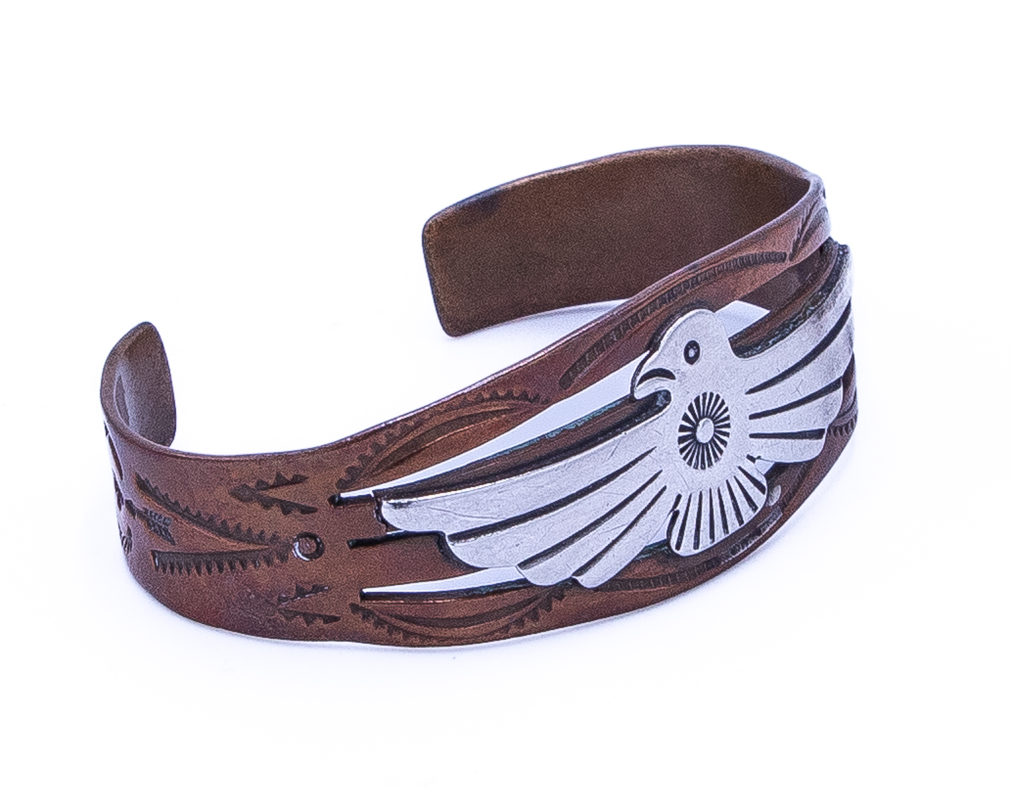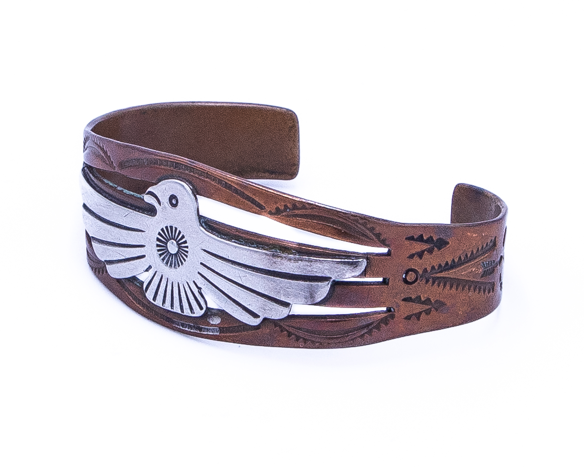 Vintage Navajo Sterling Thunderbird On Copper Cuff Bracelet As Is 27g-Copper Band Broken at Wing Tips