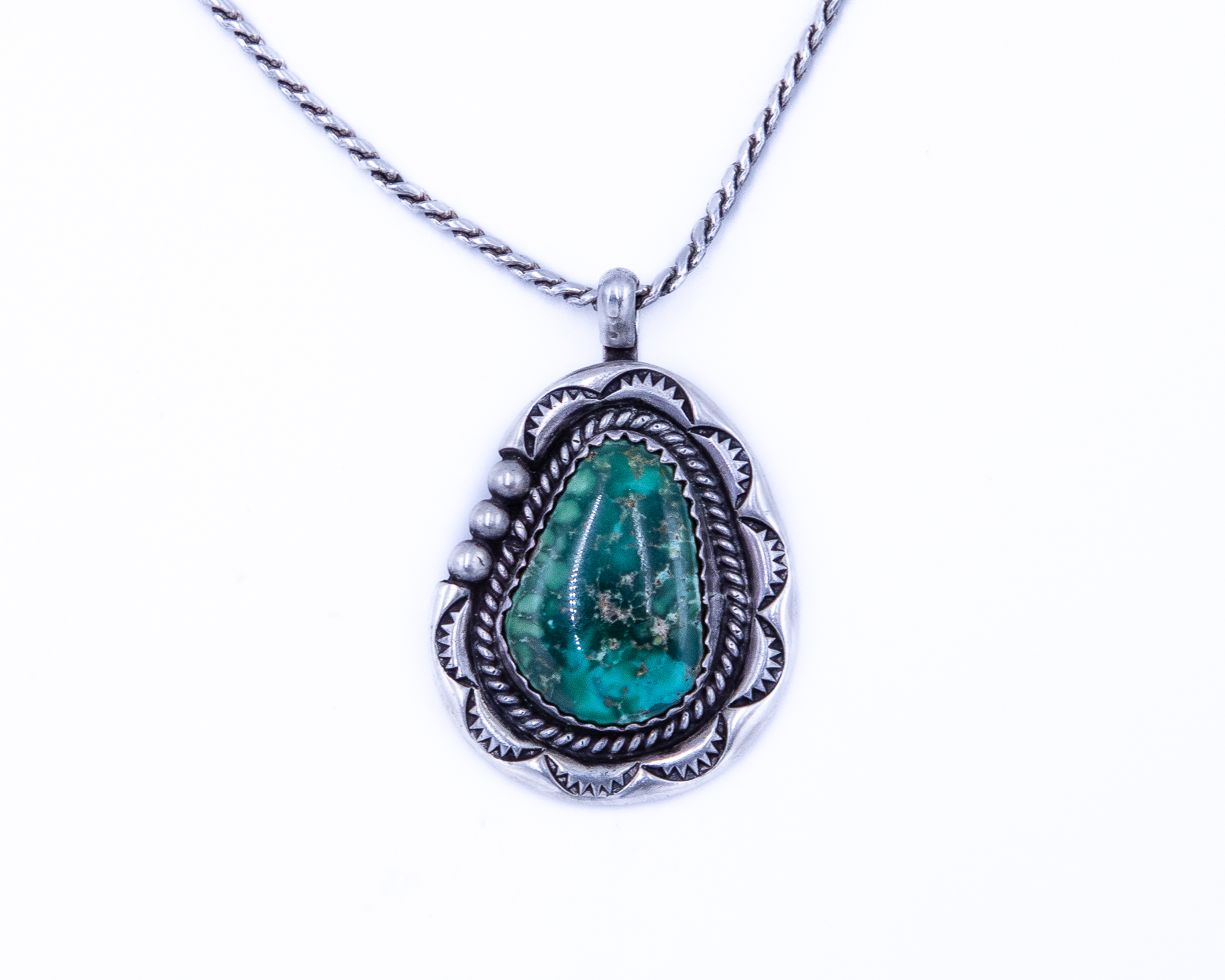 Vintage Navajo Green Turquoise Sterling Necklace 17g
