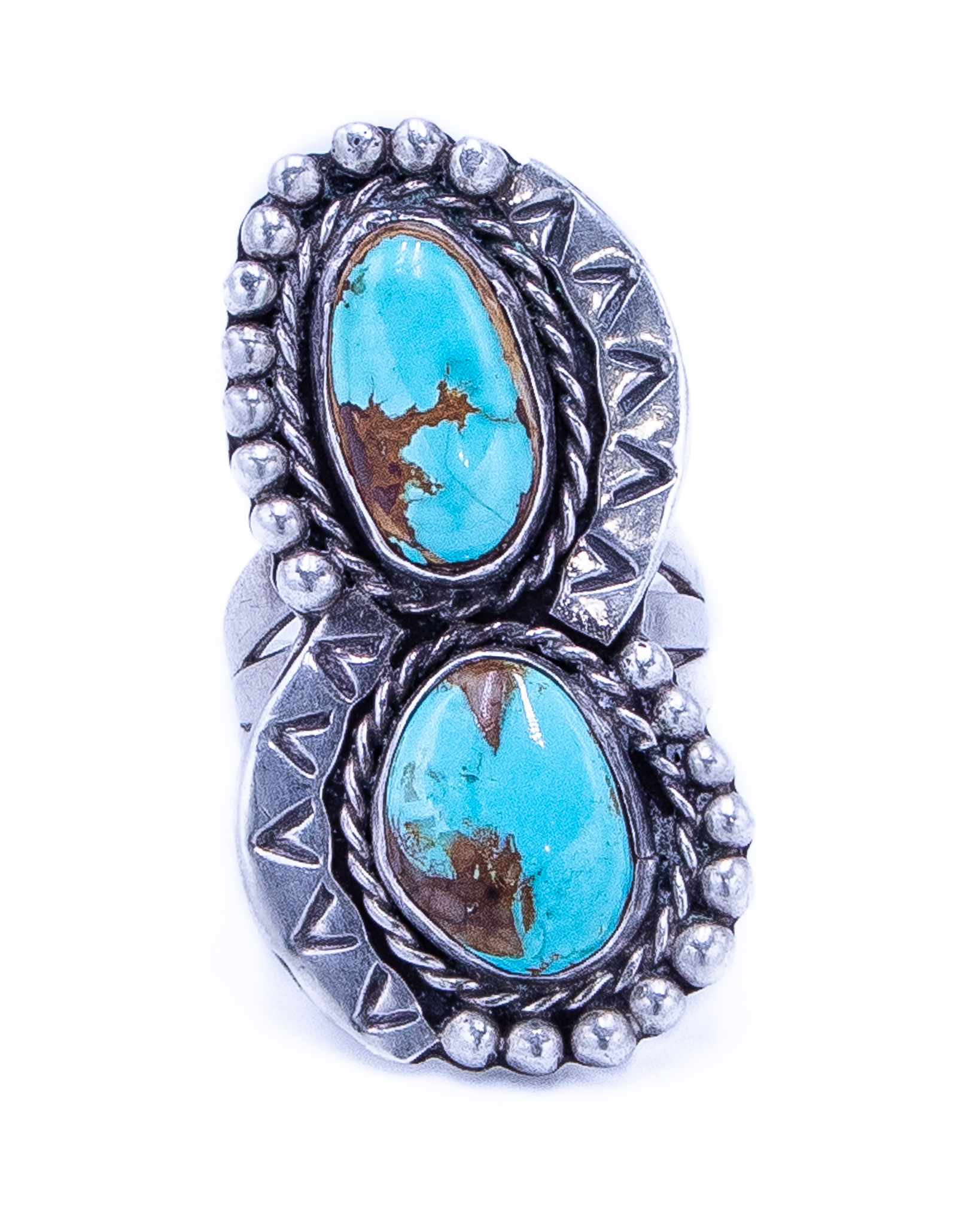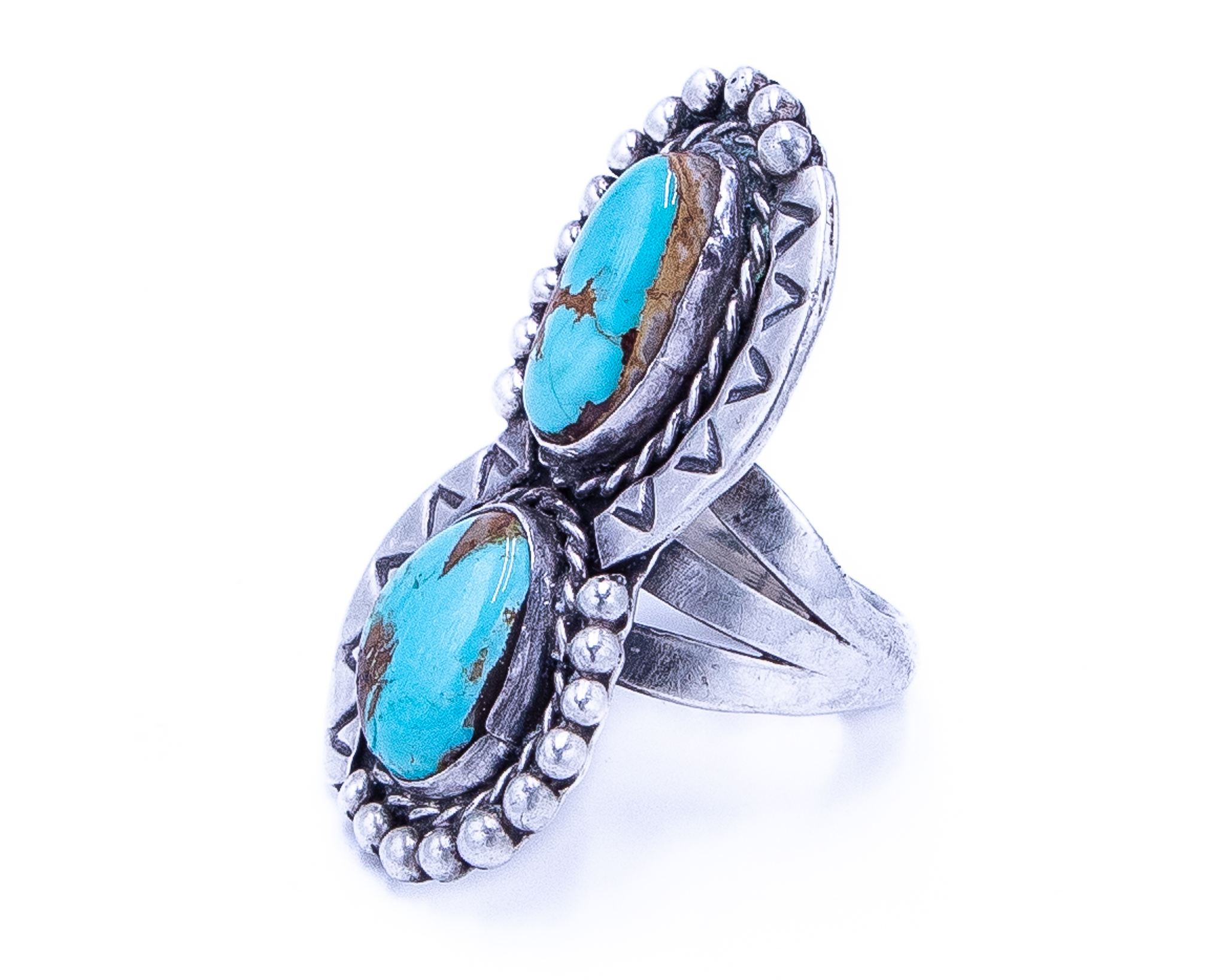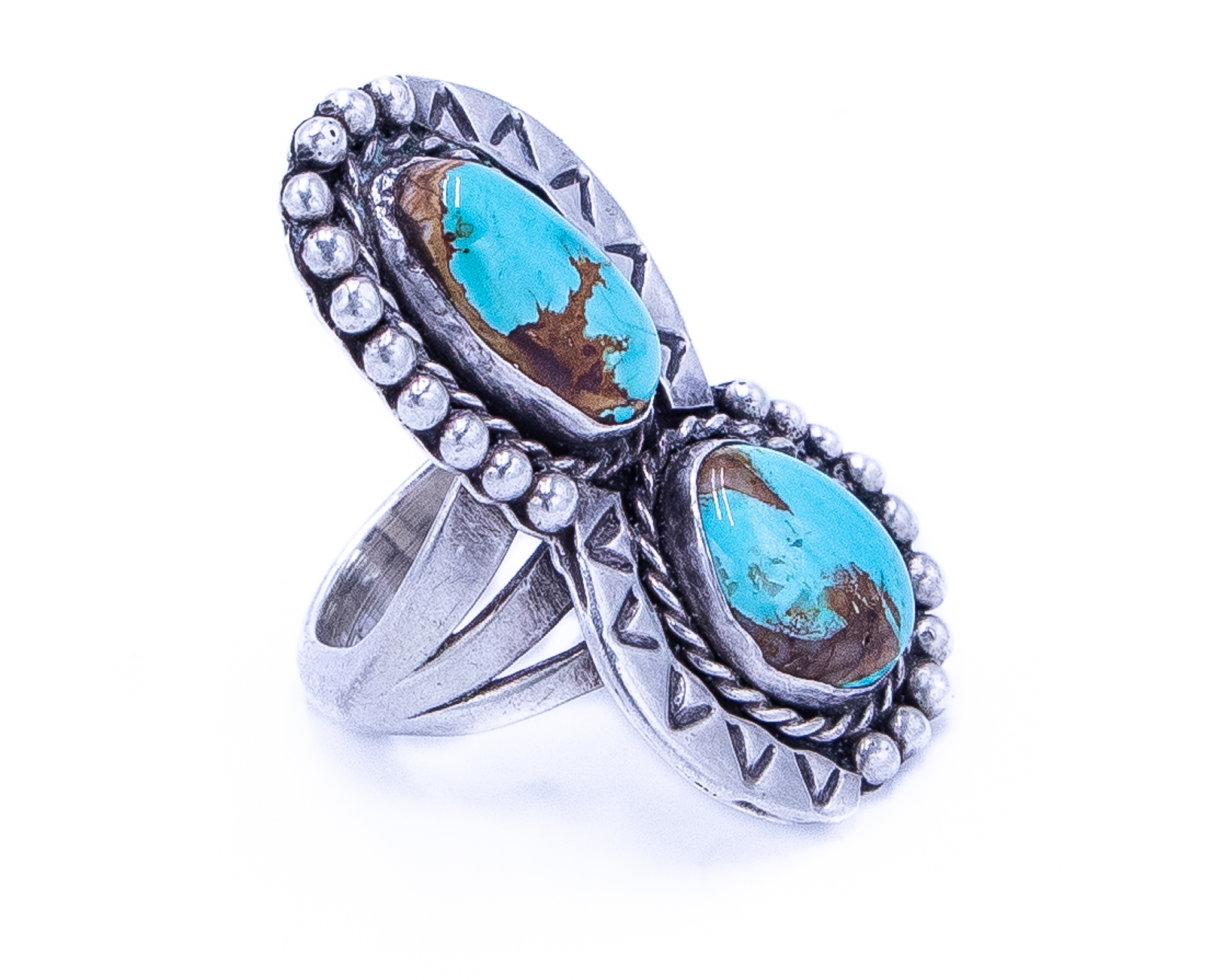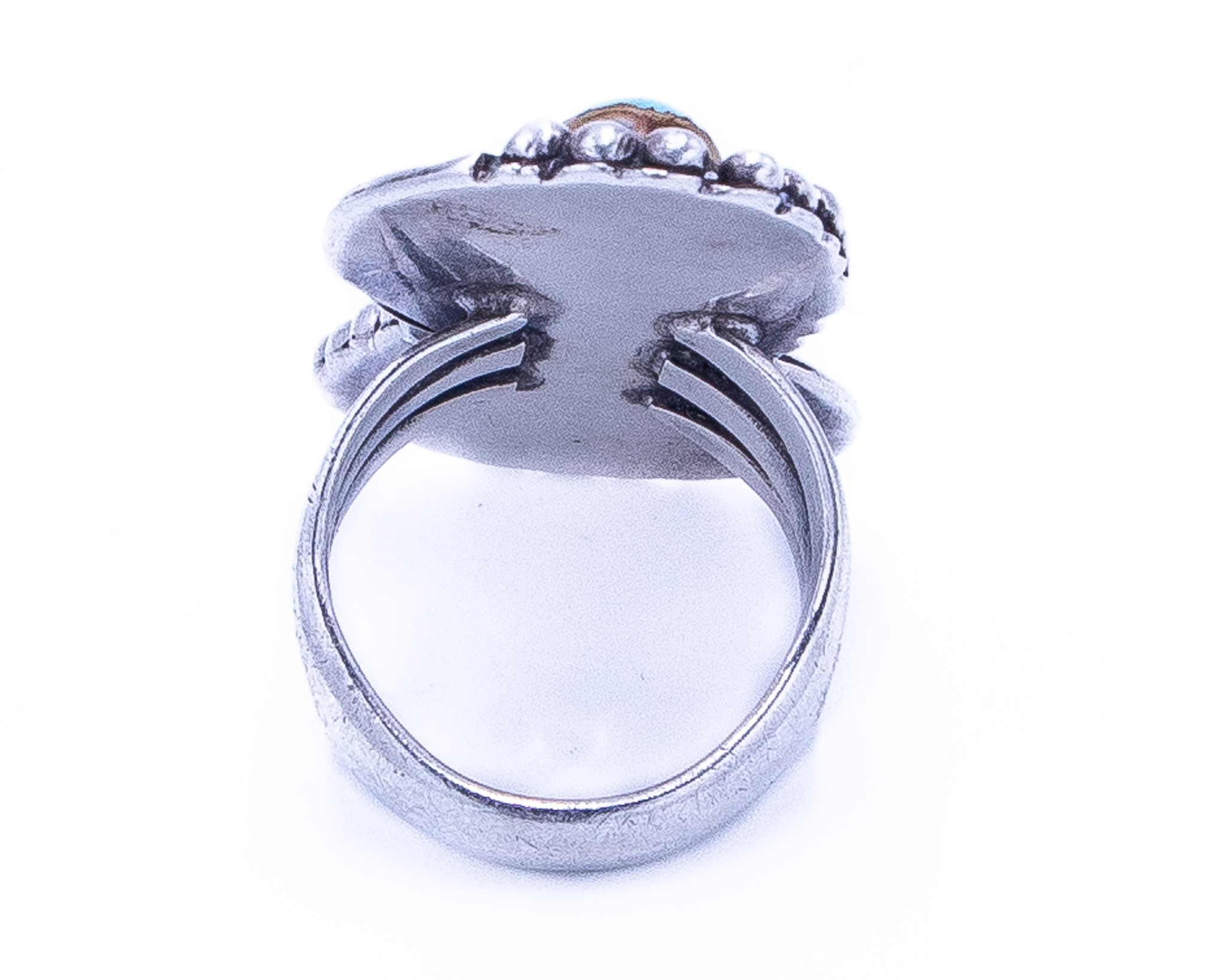 Vintage Navajo Turquoise Sterling Overlay Ring Sz 8, 17g