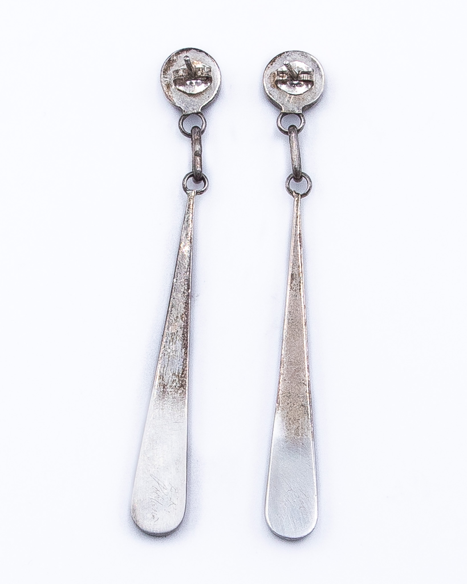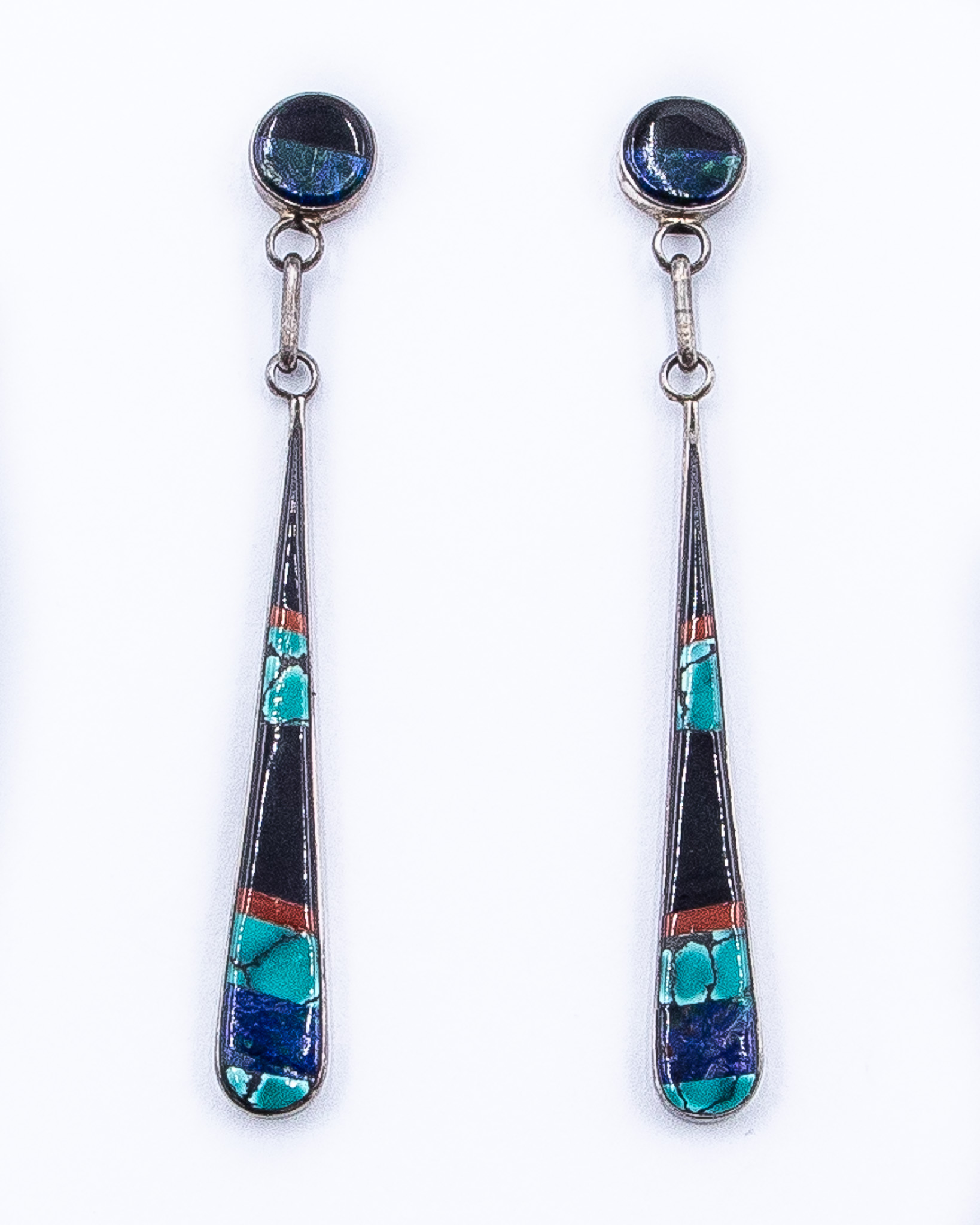 RR Poblano Handsigned Zuni Inlay Teardrop Sterling Earrings 7.2g