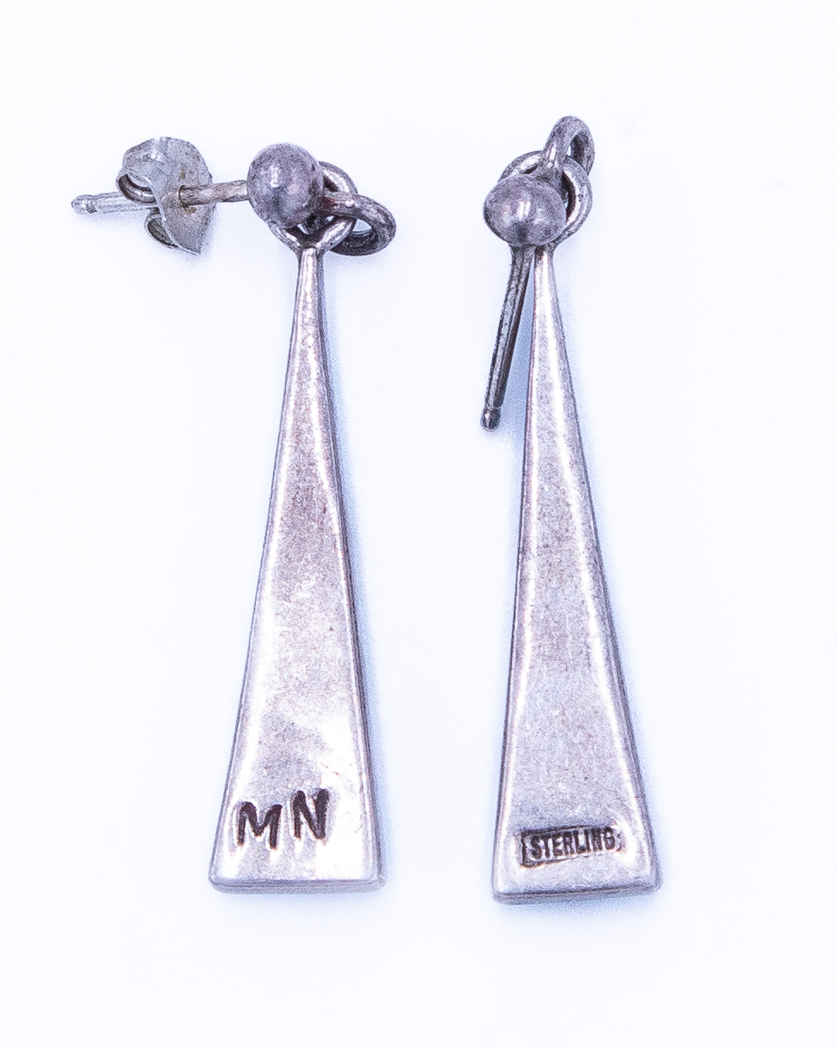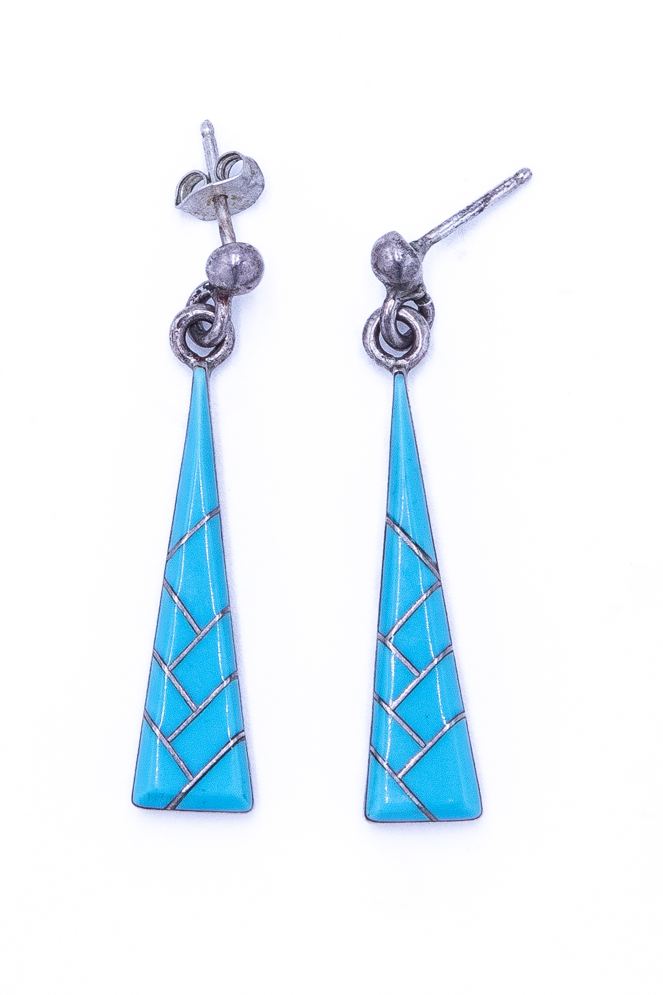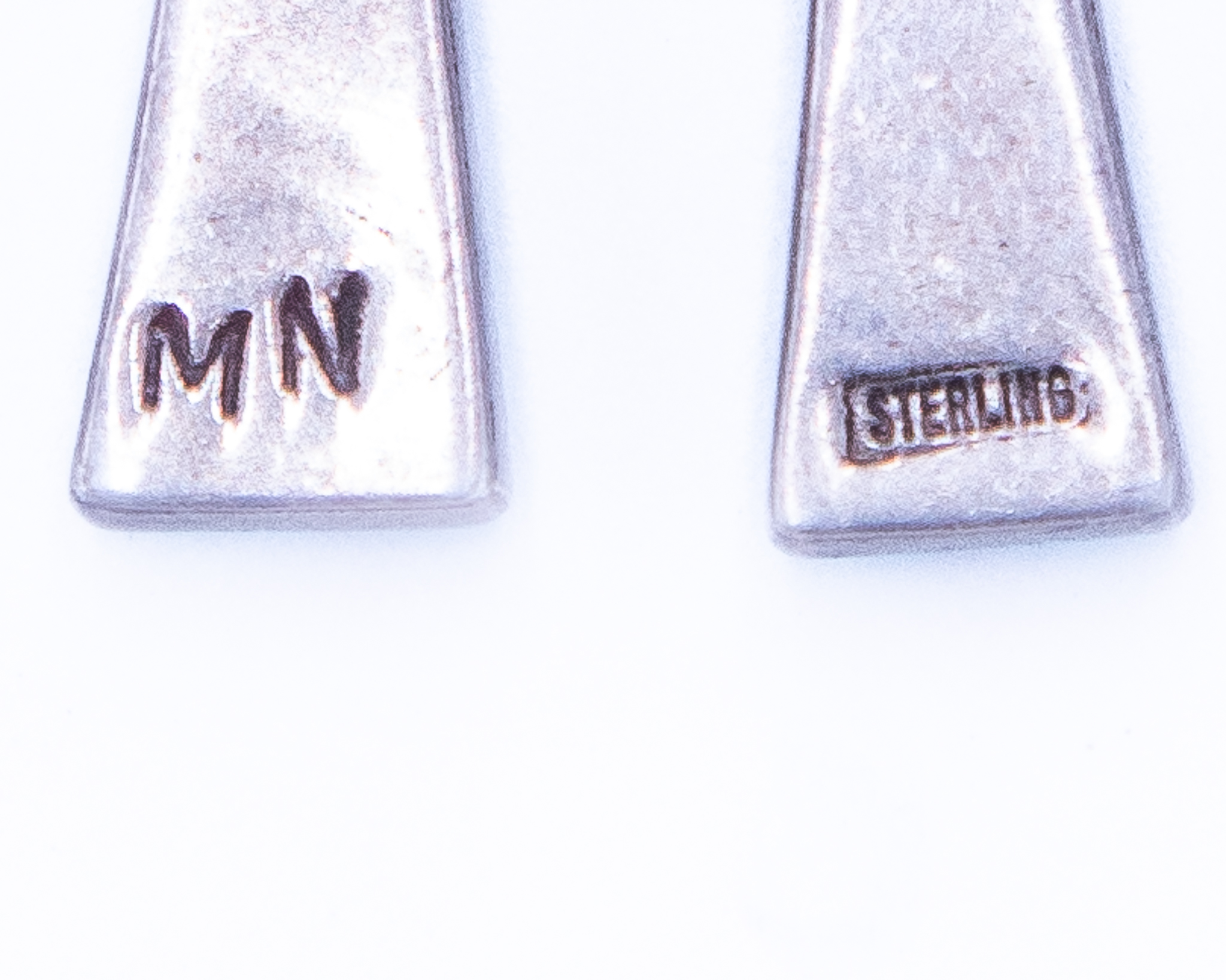 Signed MN Navajo Turquoise Sterling Raised Inlay Earrings 4.5g