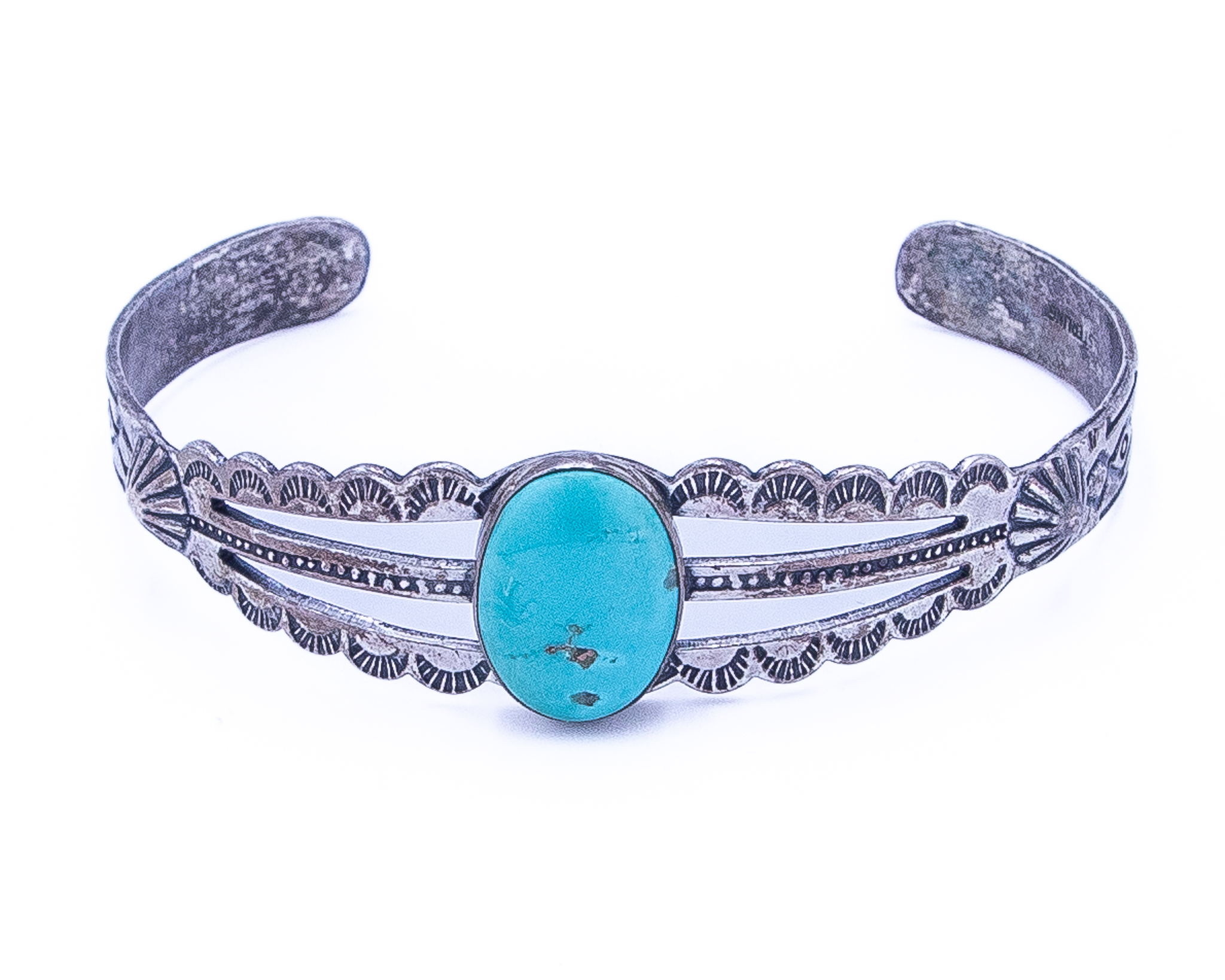Fred Harvey Era Navajo Turquoise Sterling Cuff Bracelet 1gg