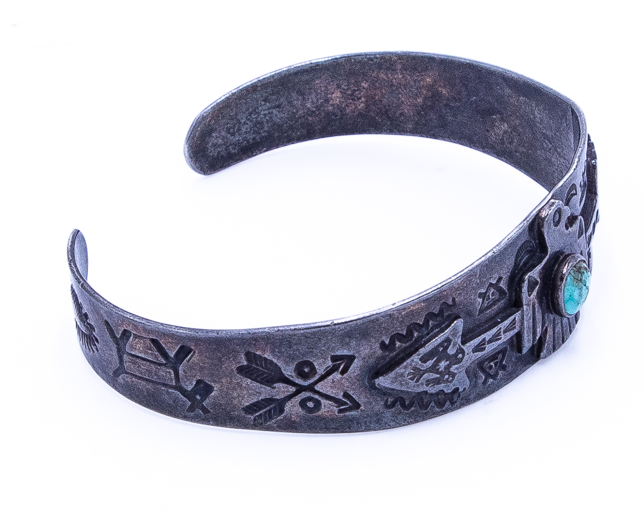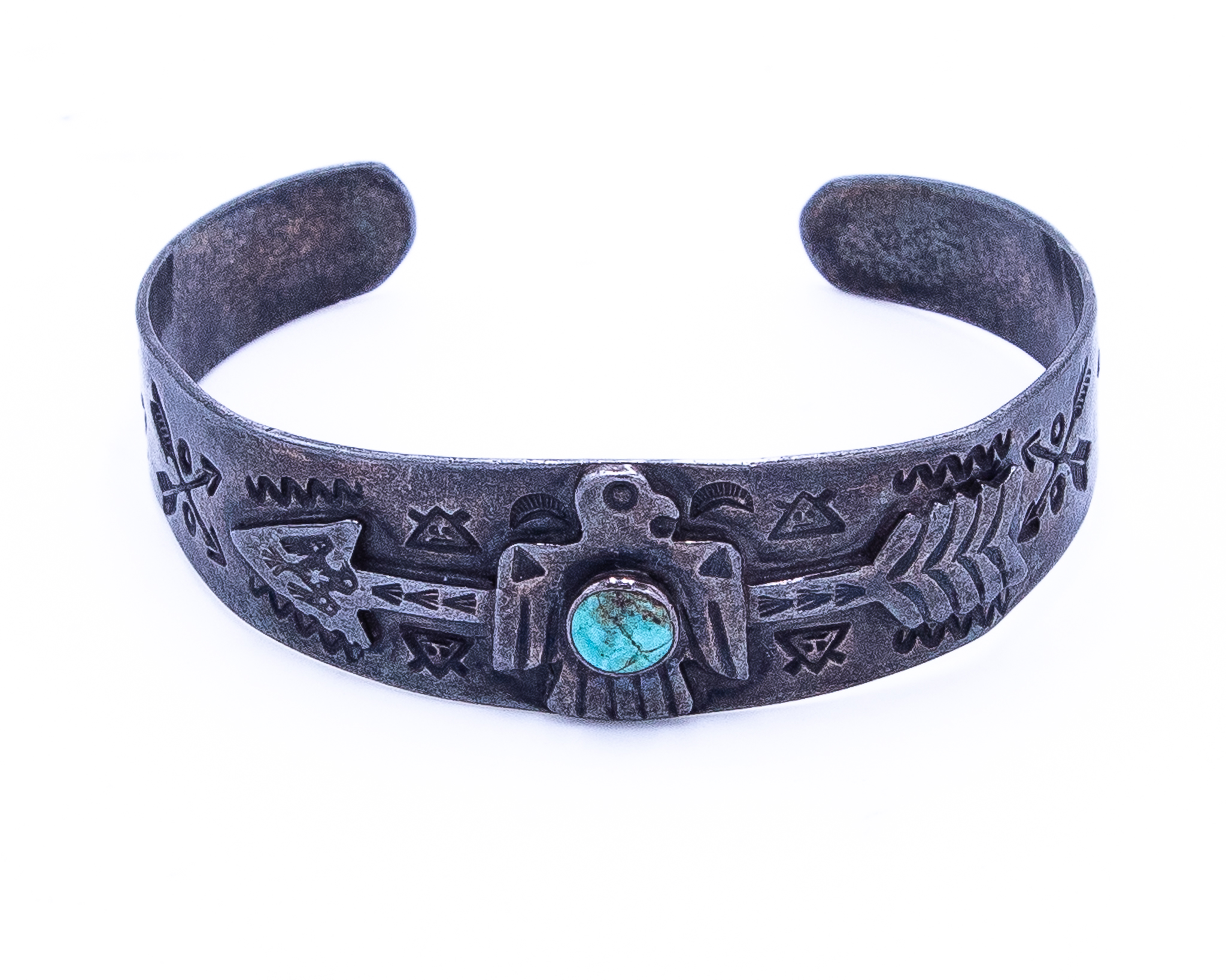 Fred Harvey Era Turquoise Sterling Thunderbird Arrow Cuff Bracelet