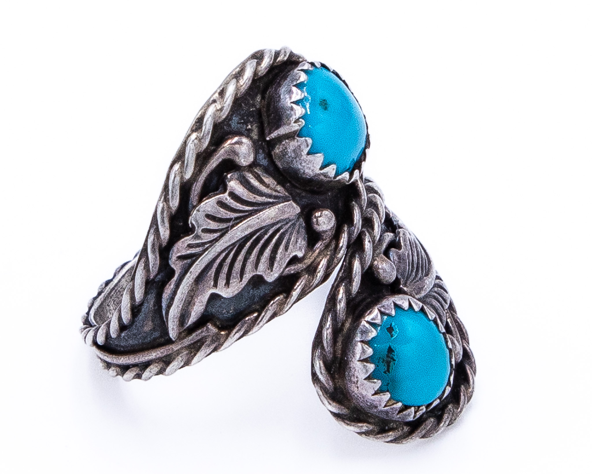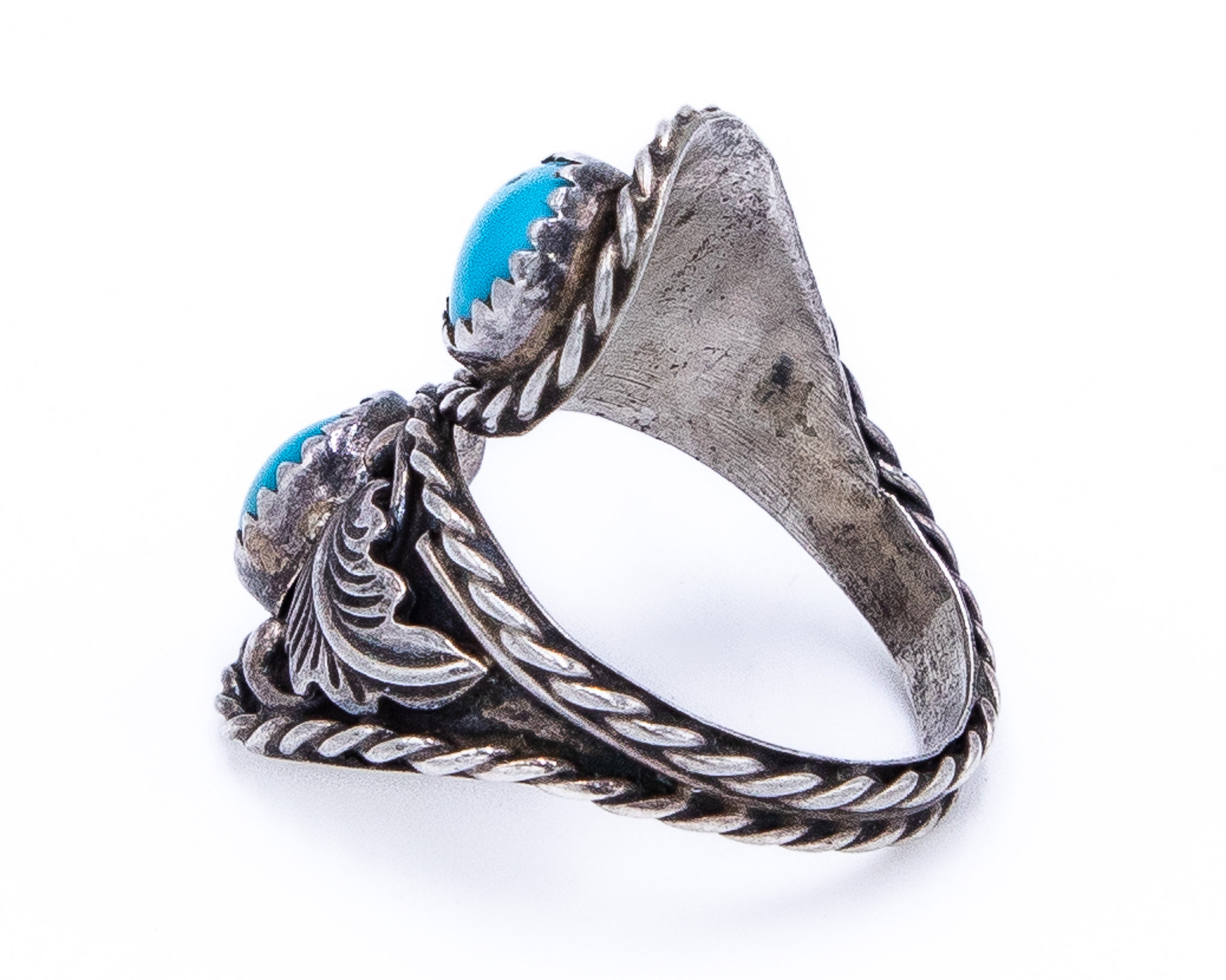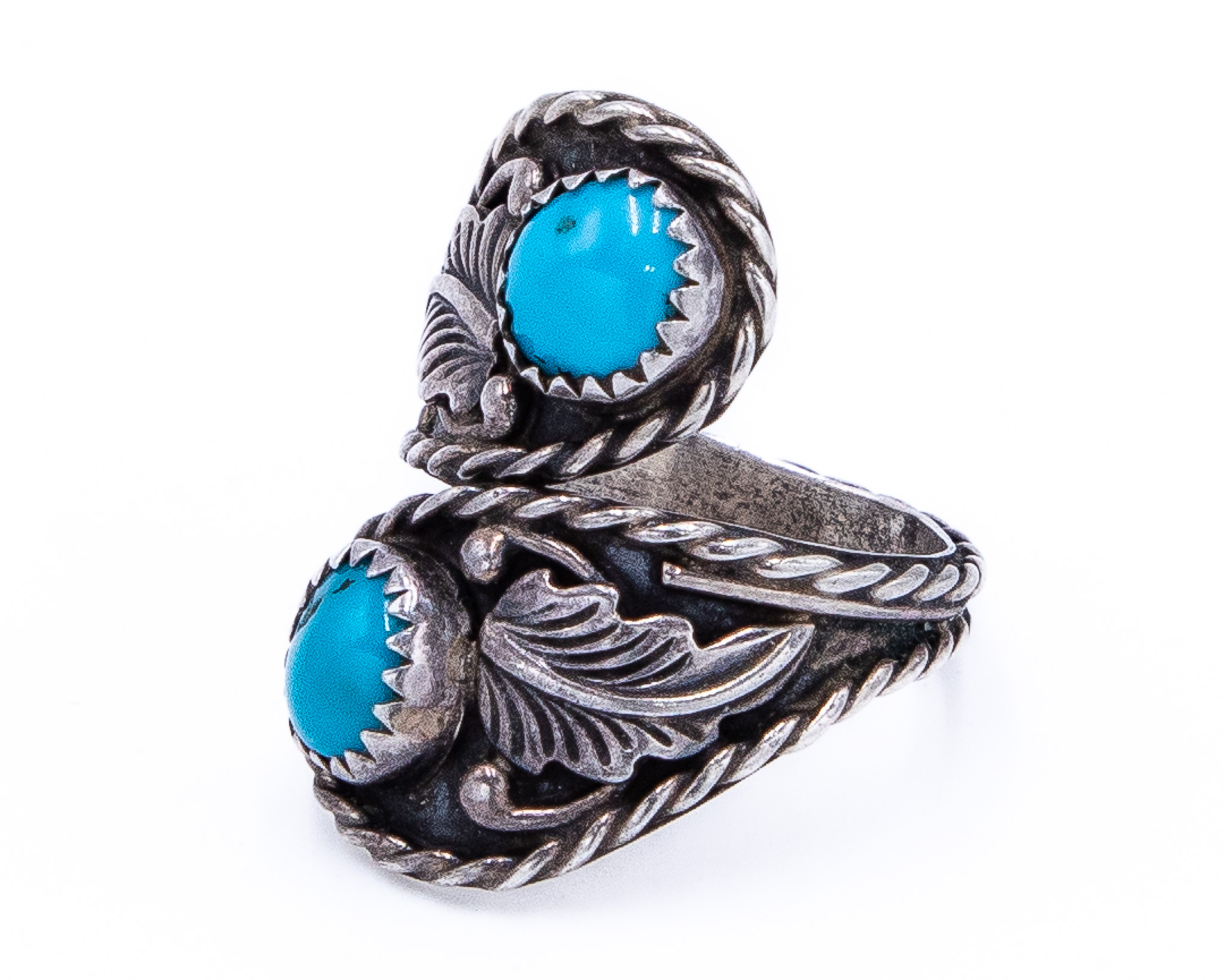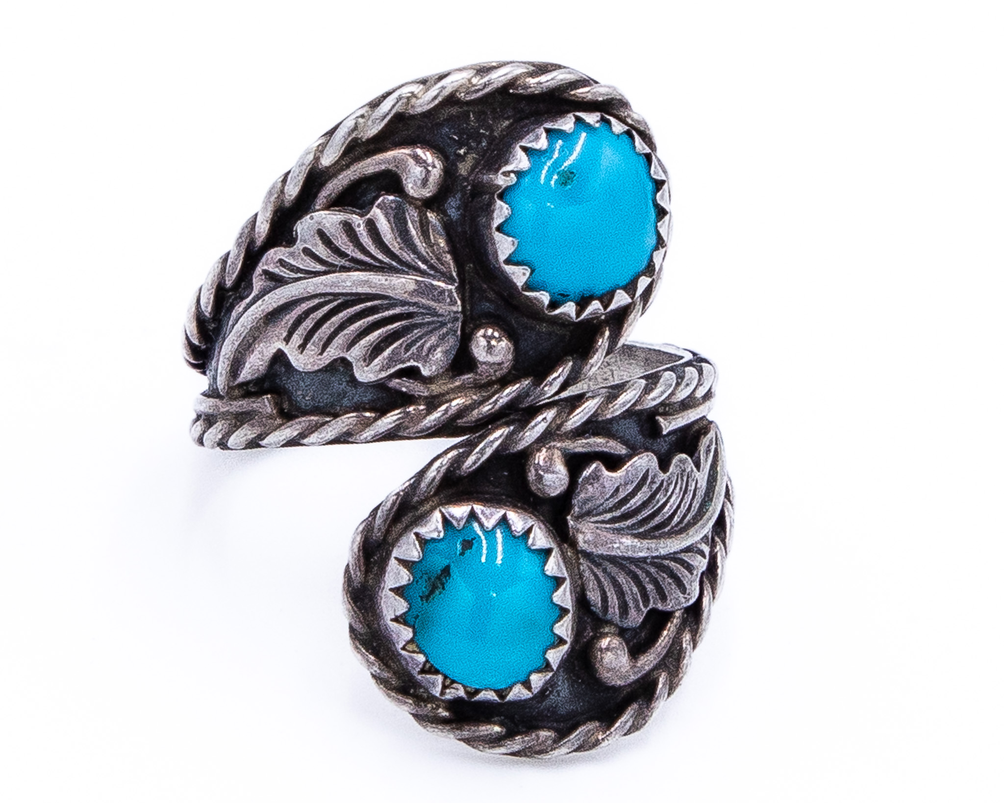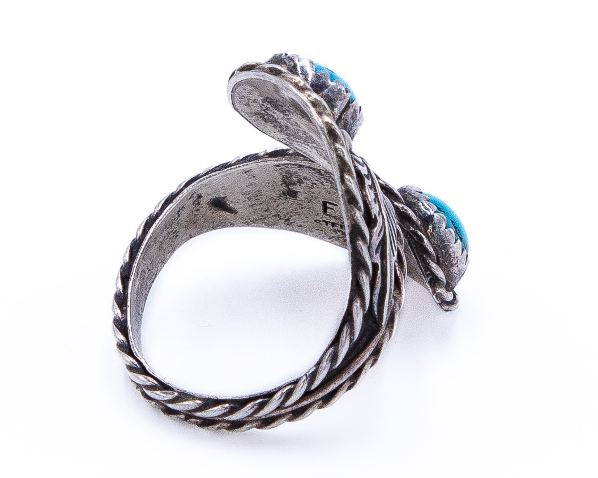 Vintage Navajo Signed ‘FA’ Turquoise Sterling Bypass RIng Sz 7.5 5.2g