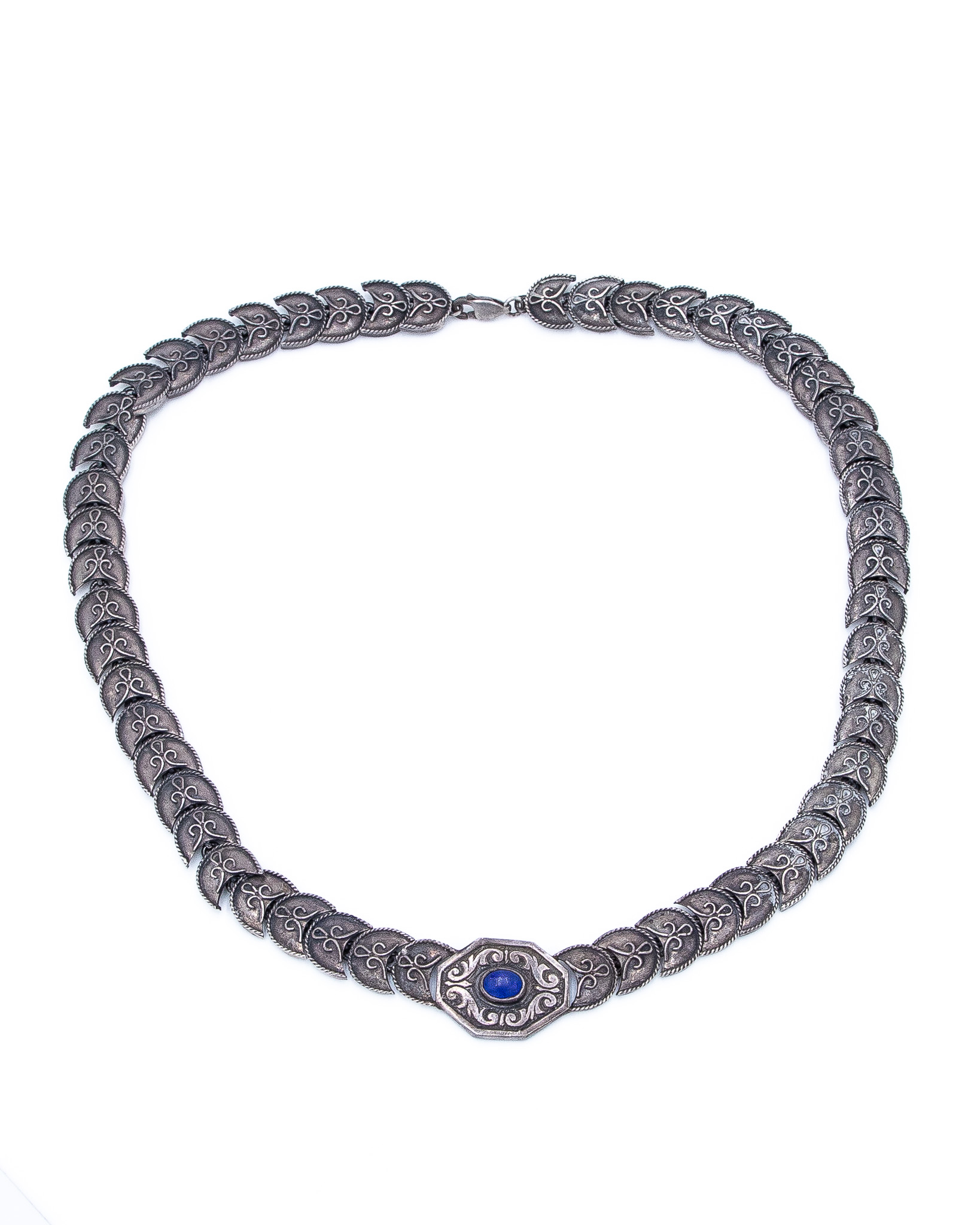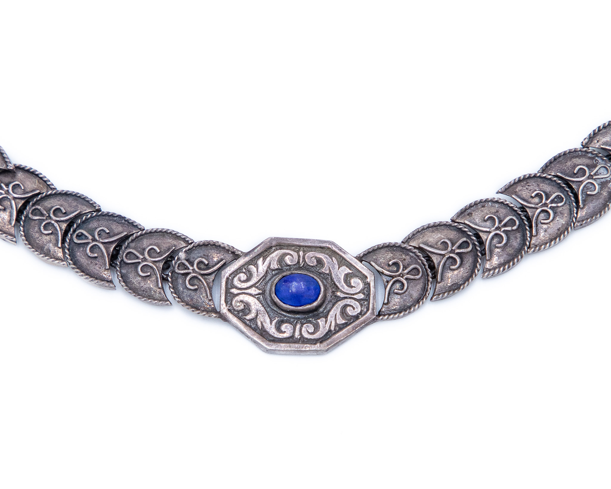 Incredible Vintage Sterling Silver Middle Eastern Lapis Lazuli Necklace 52.4g