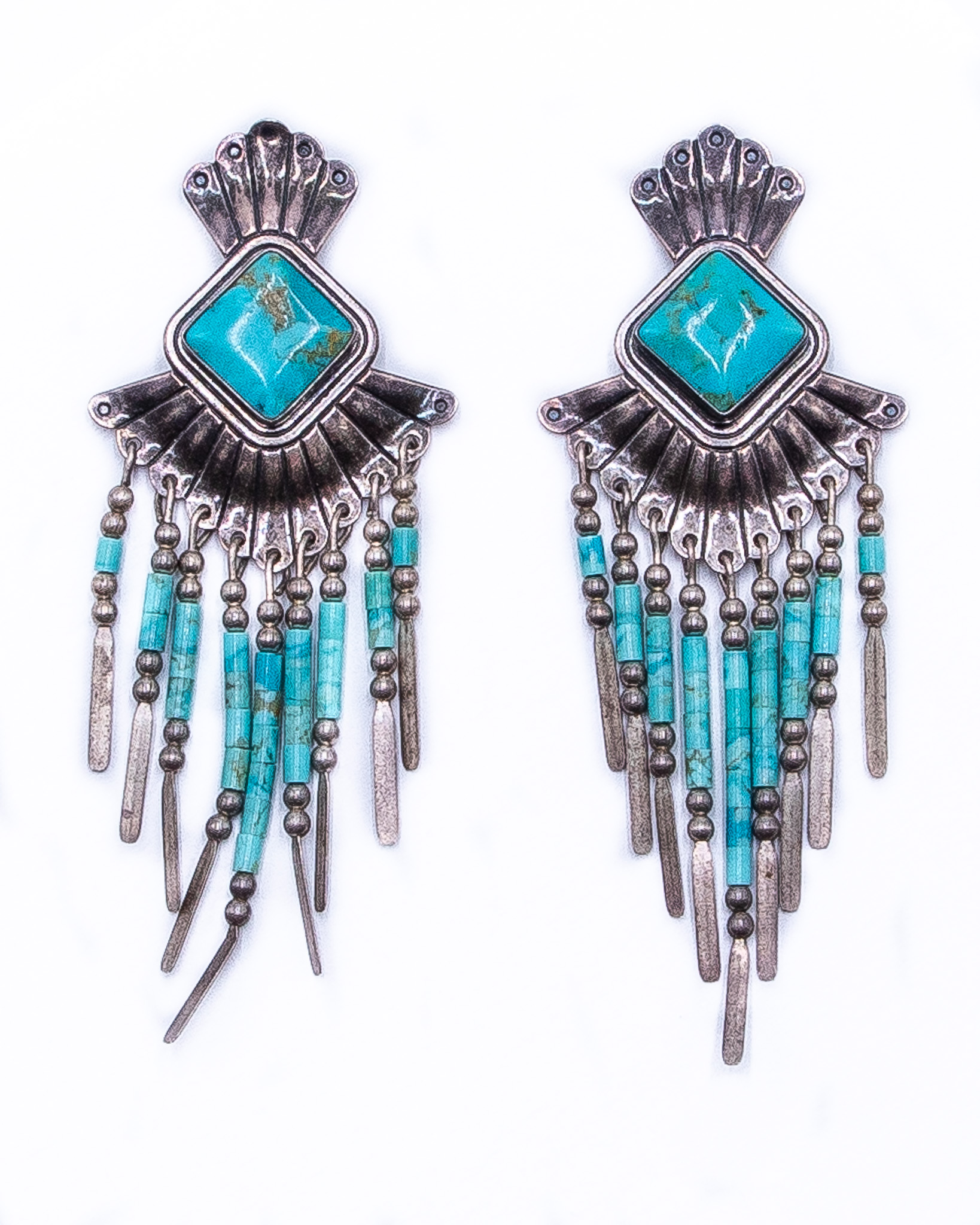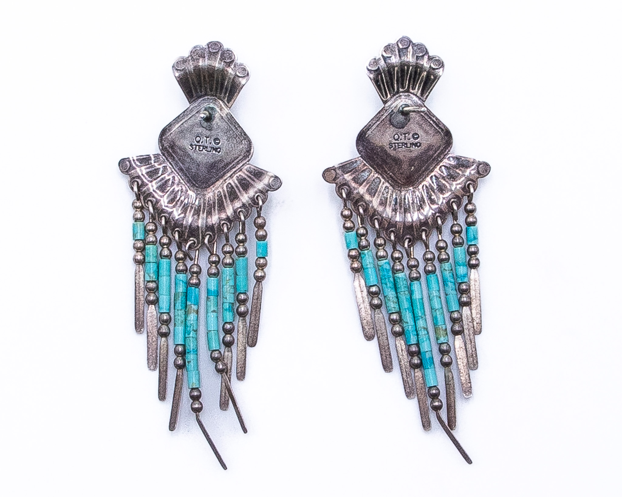 Oversized Quoc Trading Sterling Turquoise Microbead Dangle Earrings 11g