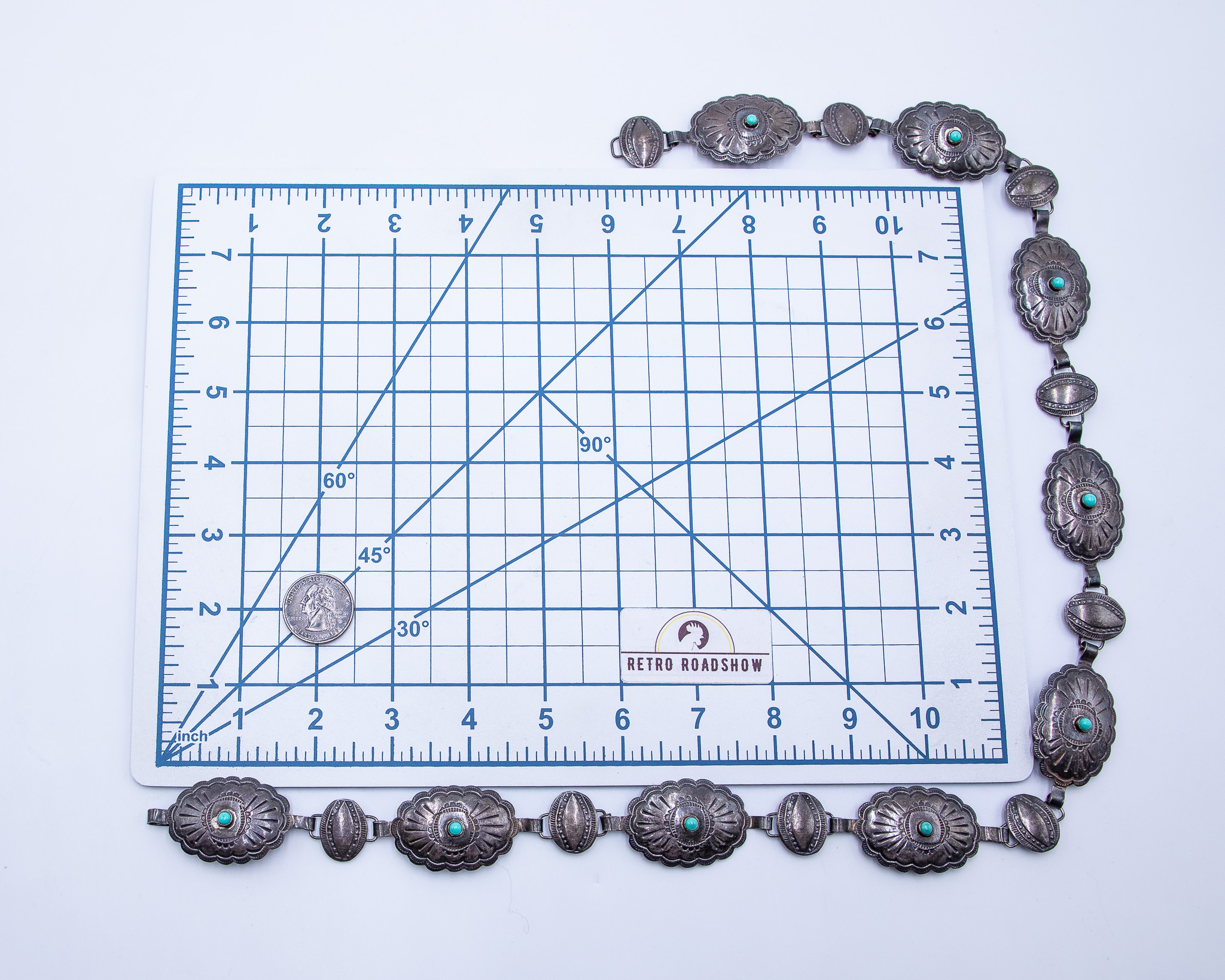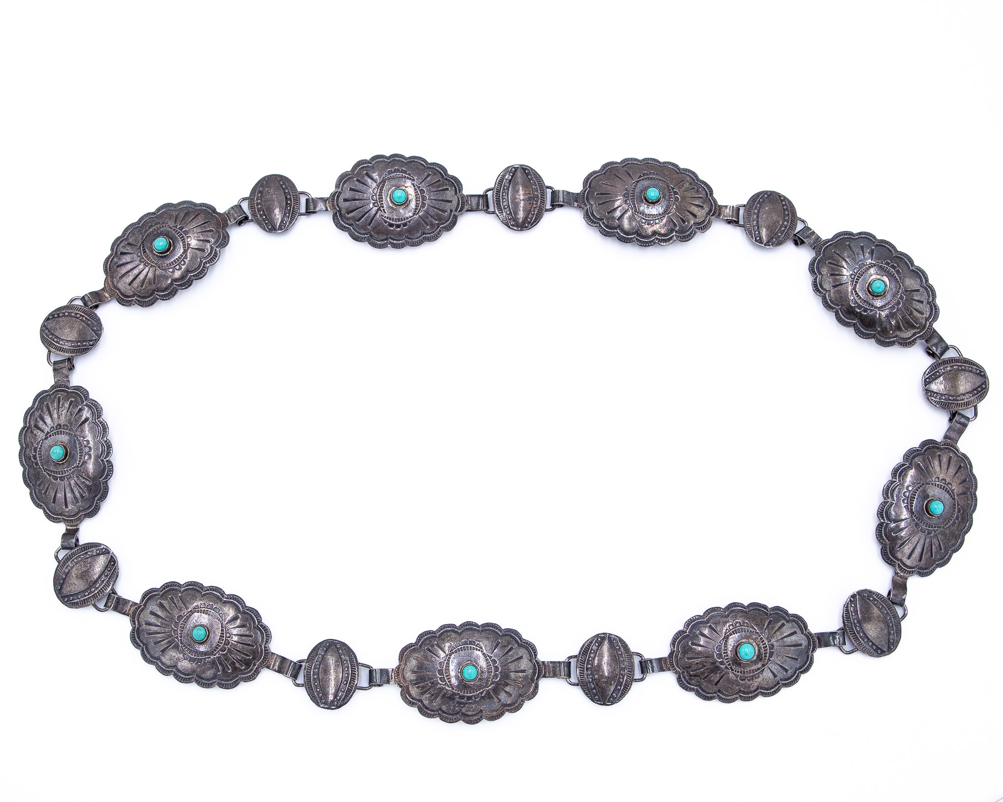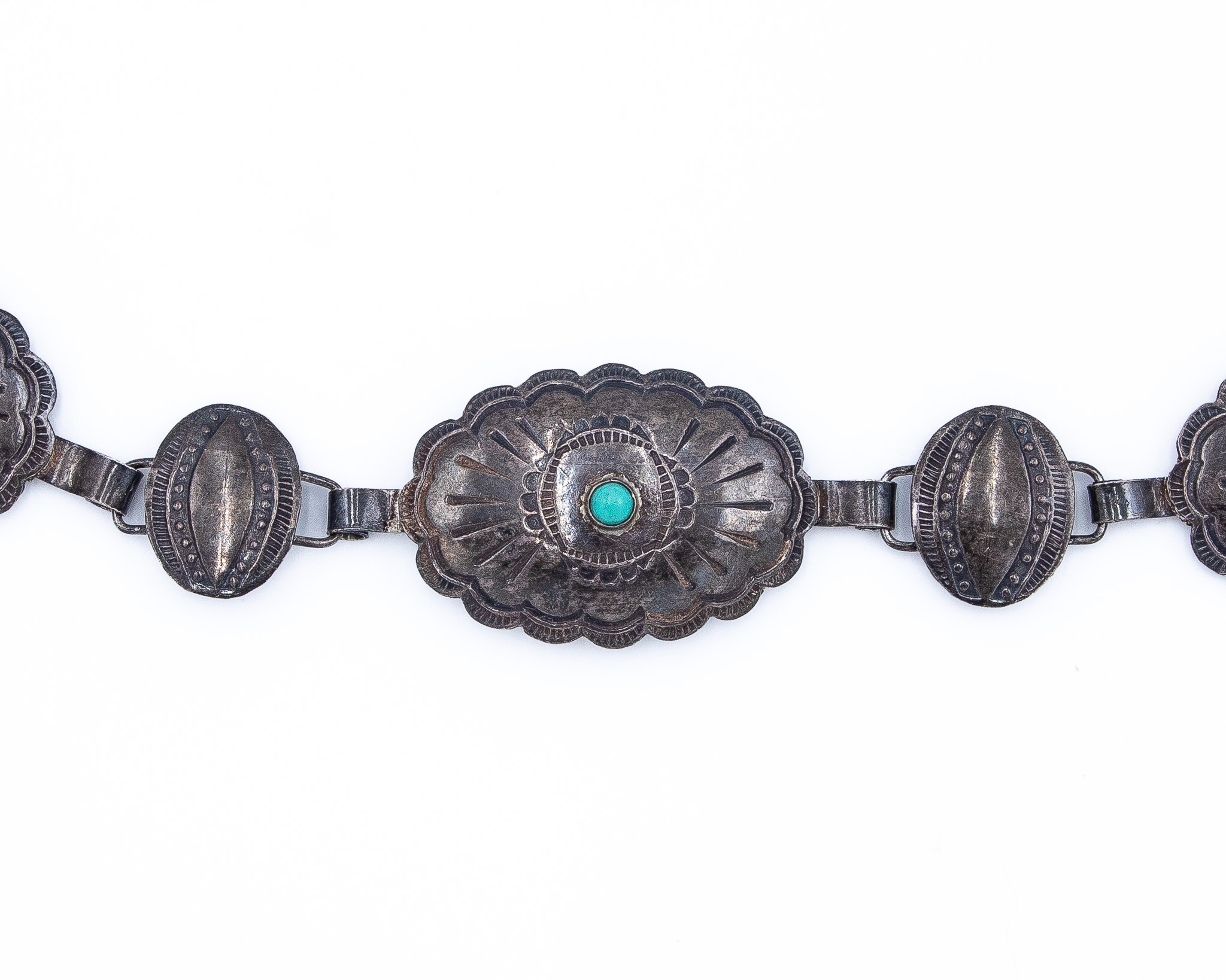 Early Navajo Vintage Handstamped Turquoise Sterling Concho Belt 74g