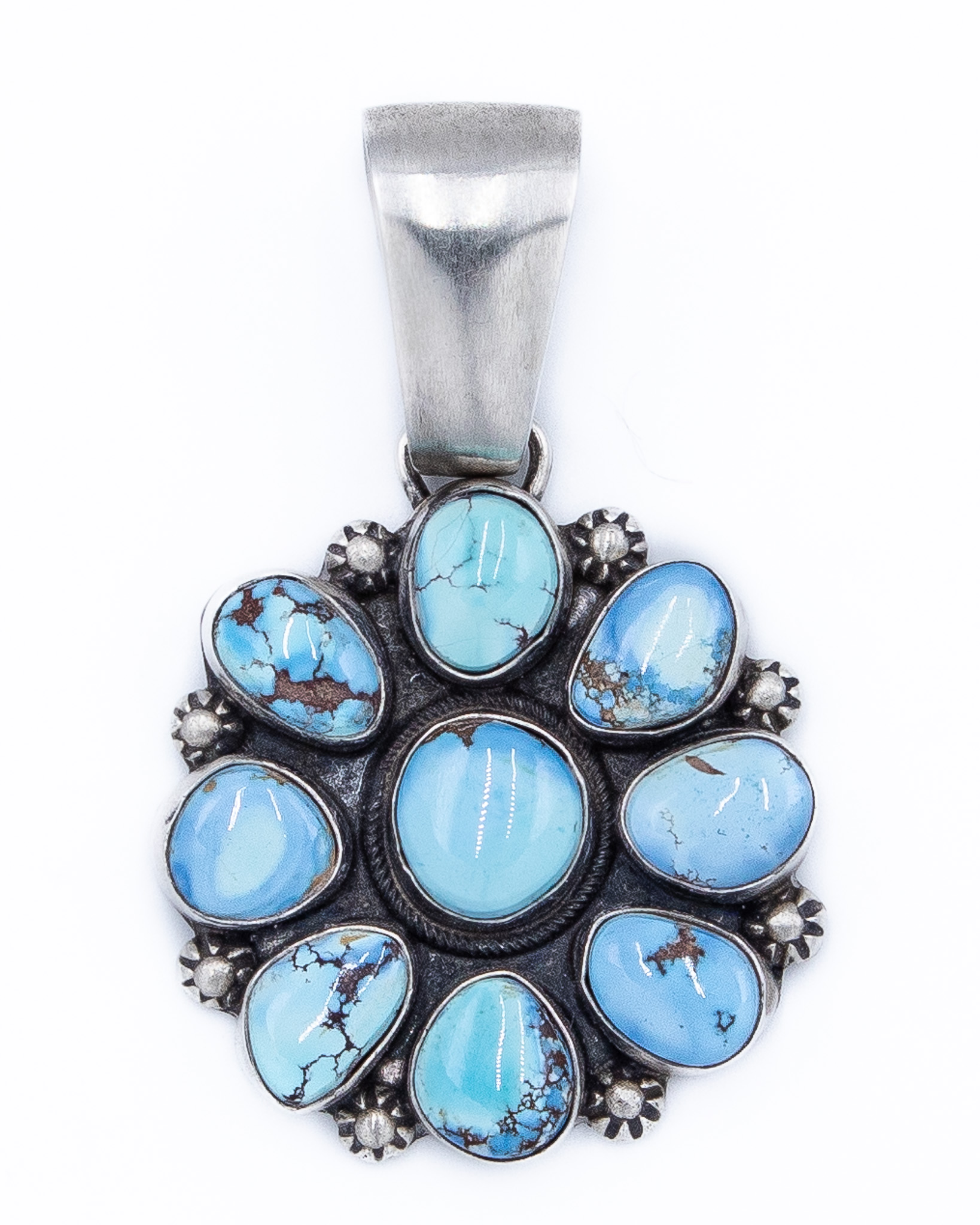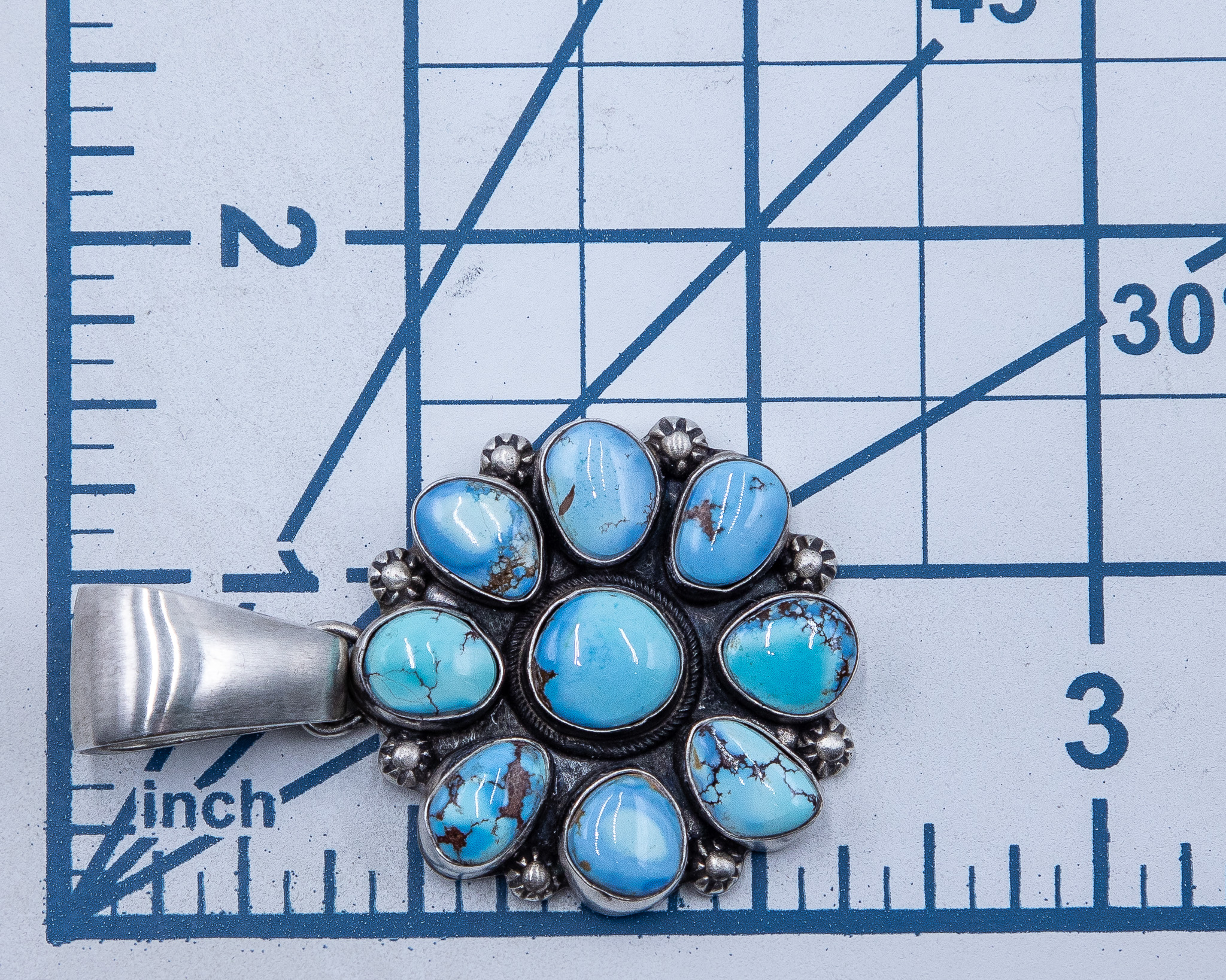 Kathleen Chavez Navajo Golden Hills Turquoise Cluster Sterling Pendant 21.4g
