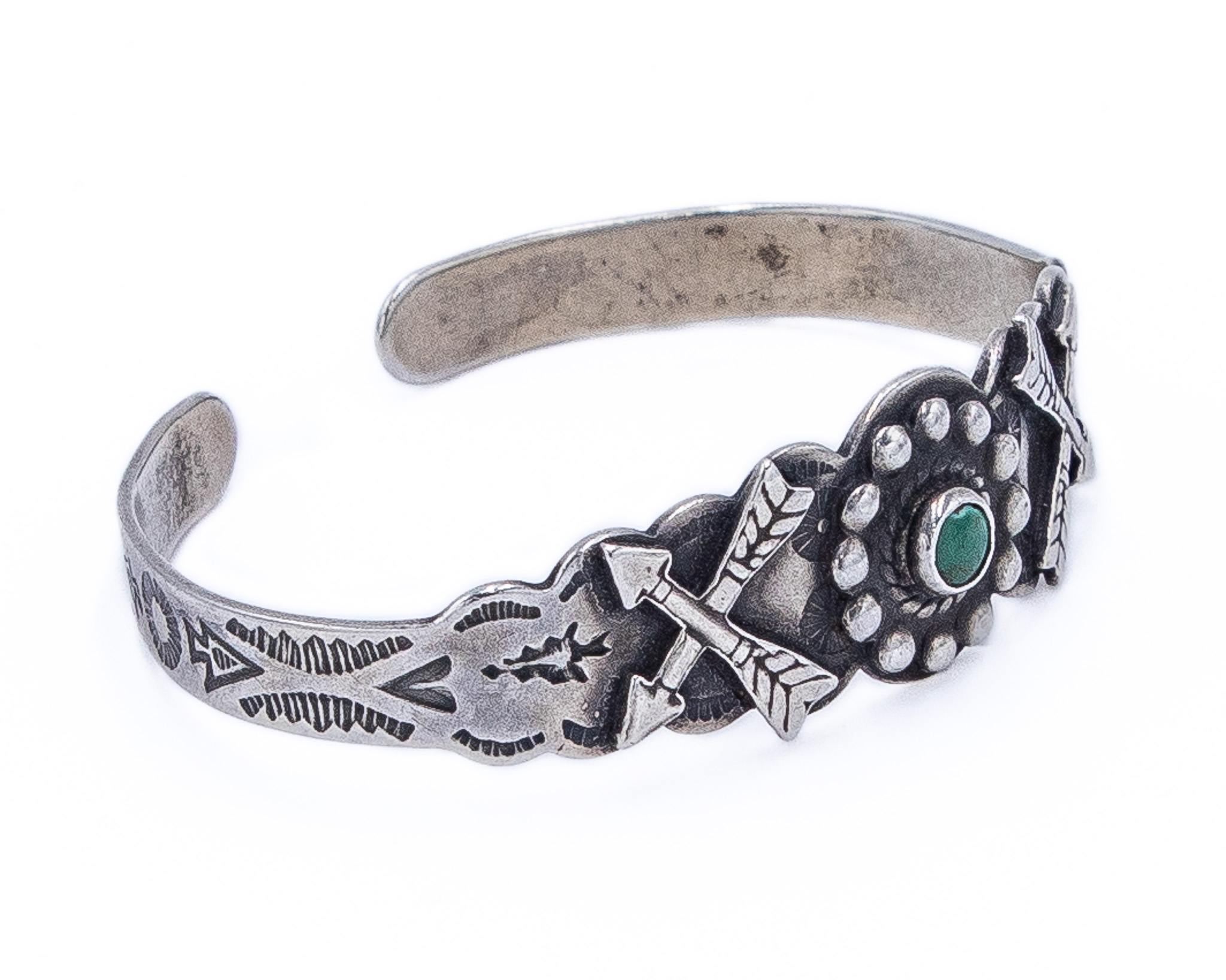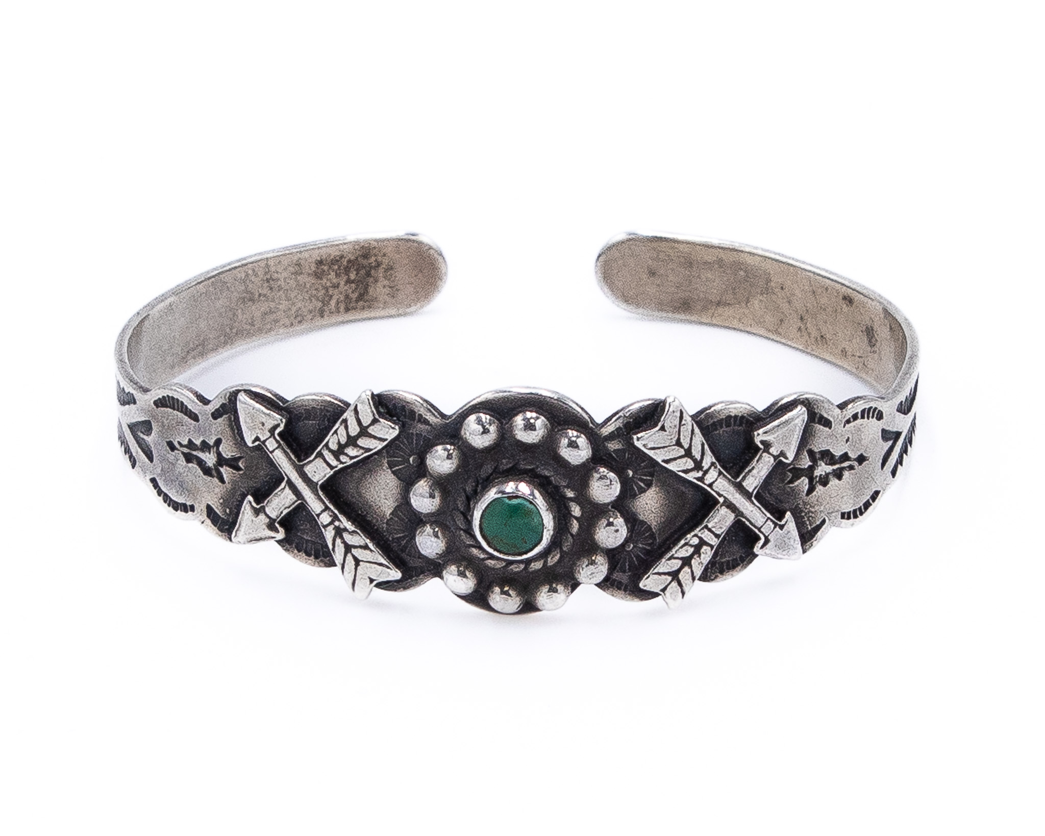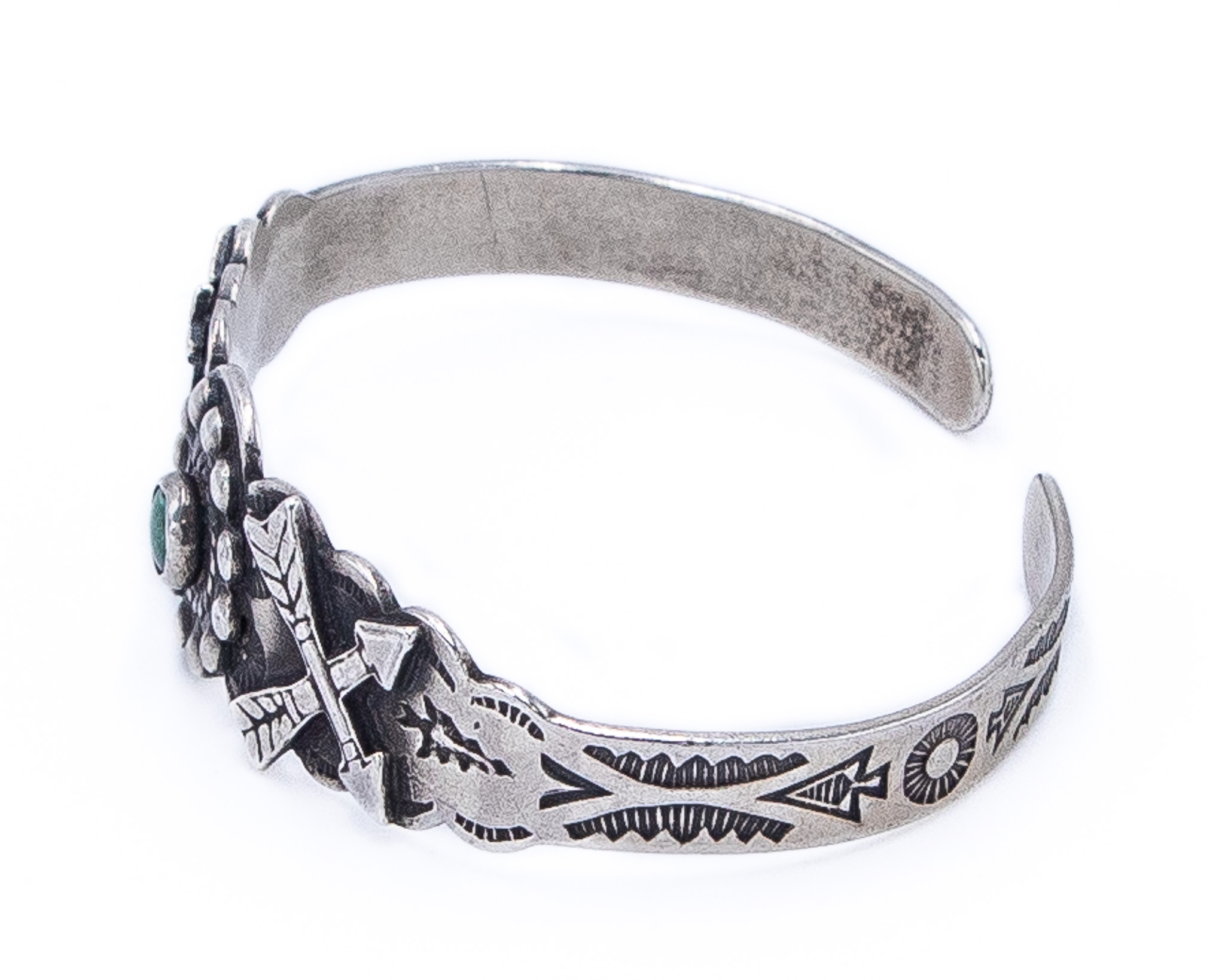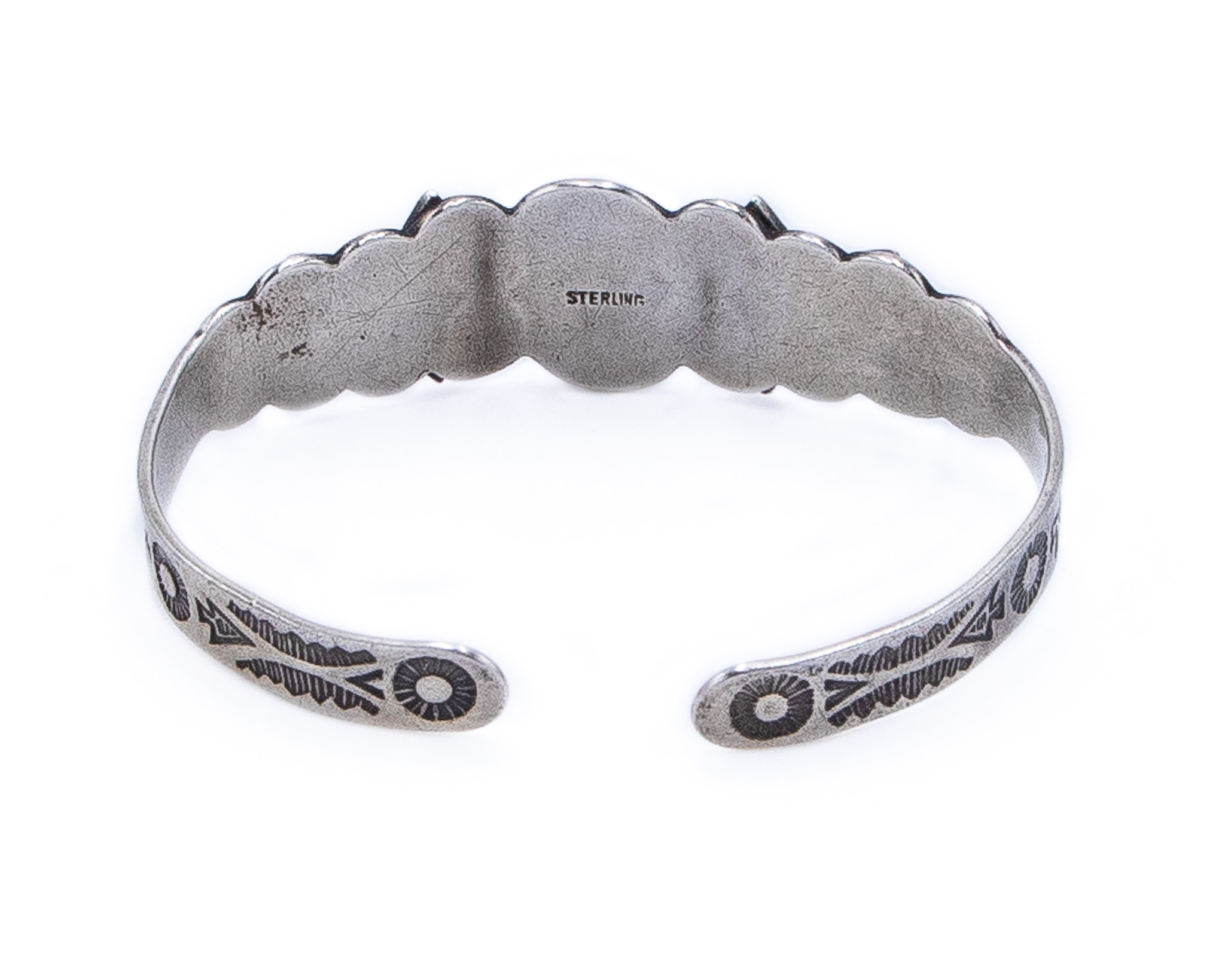 Vintage Fred Harvey Era Sterling Turquoise Handstamped Cuff Bracelet 15g
