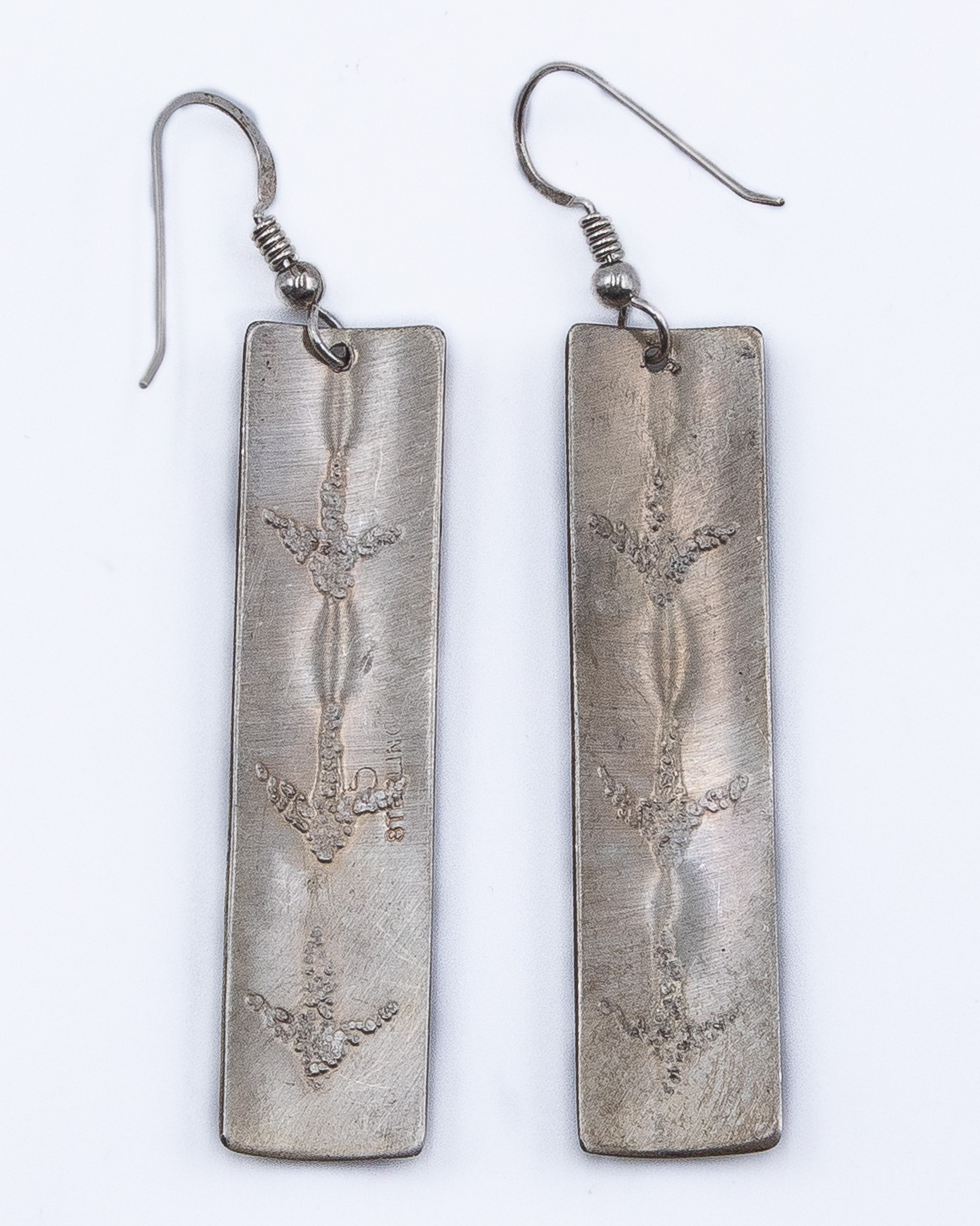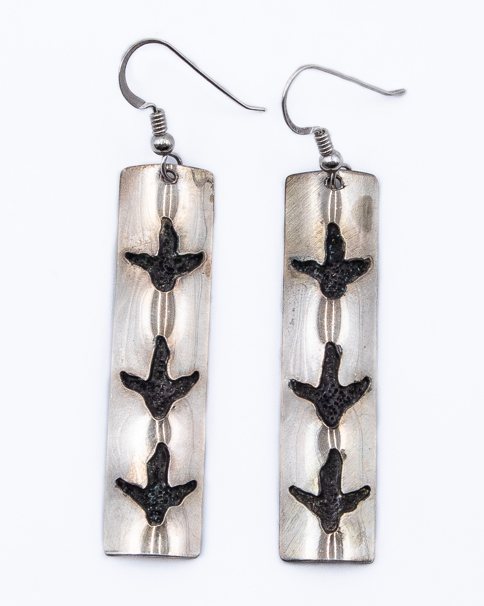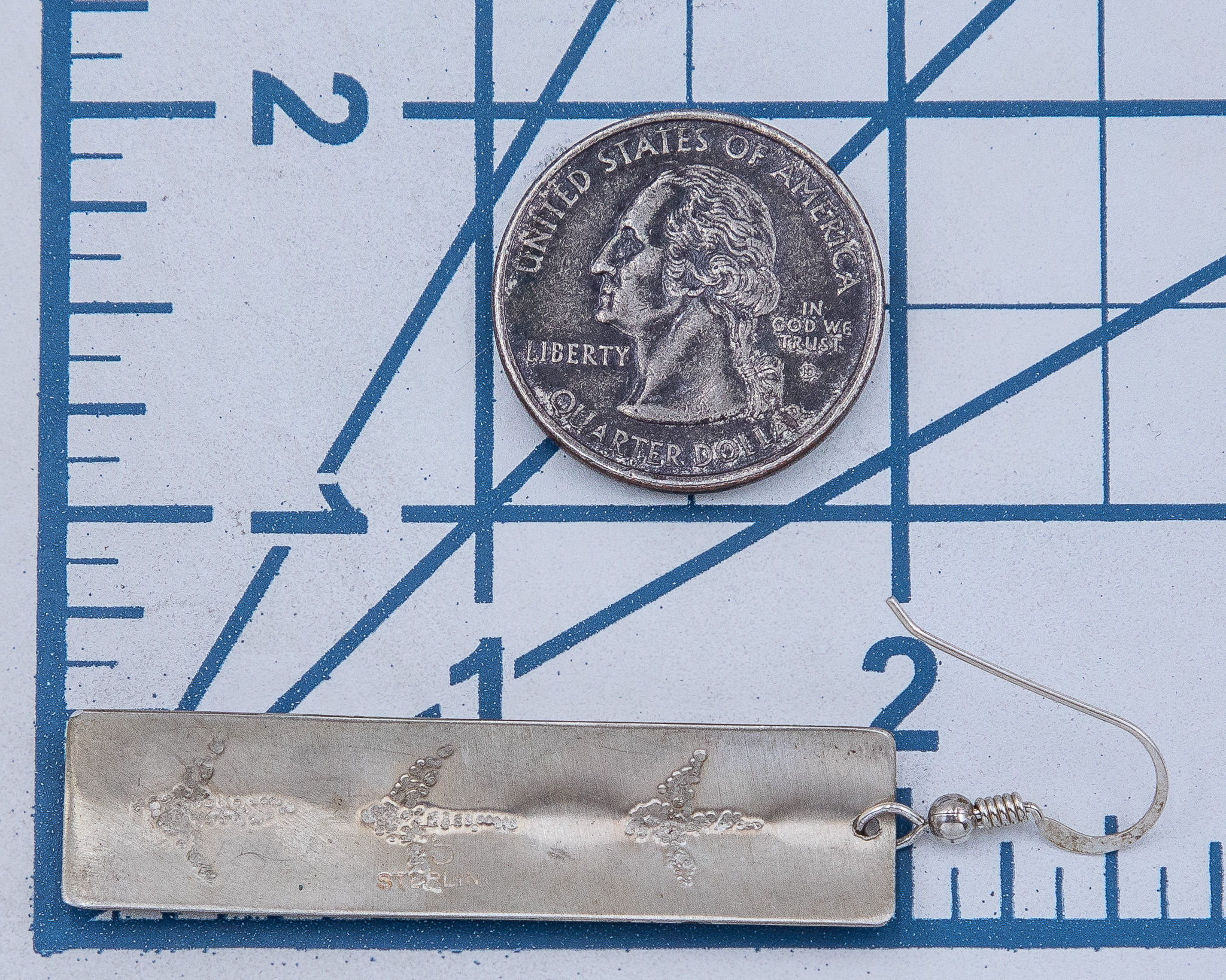 Vintage Signed ‘S’ Native American Overlay Bar Dangle Sterling Earrings 8.6g