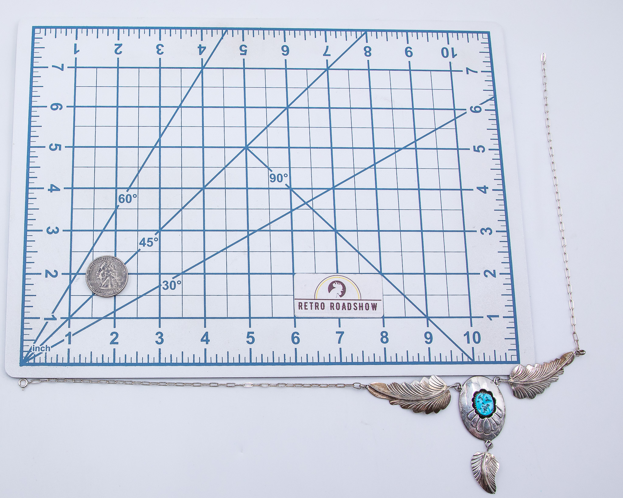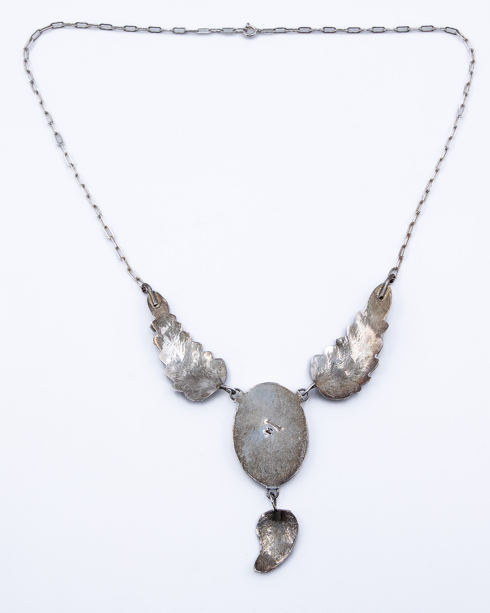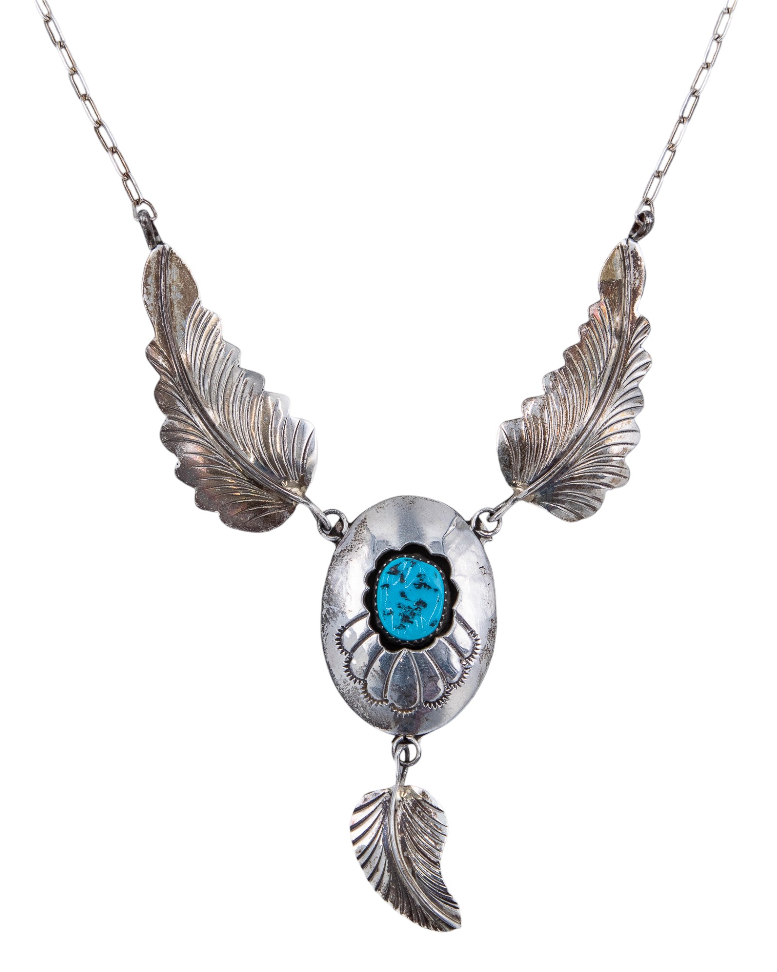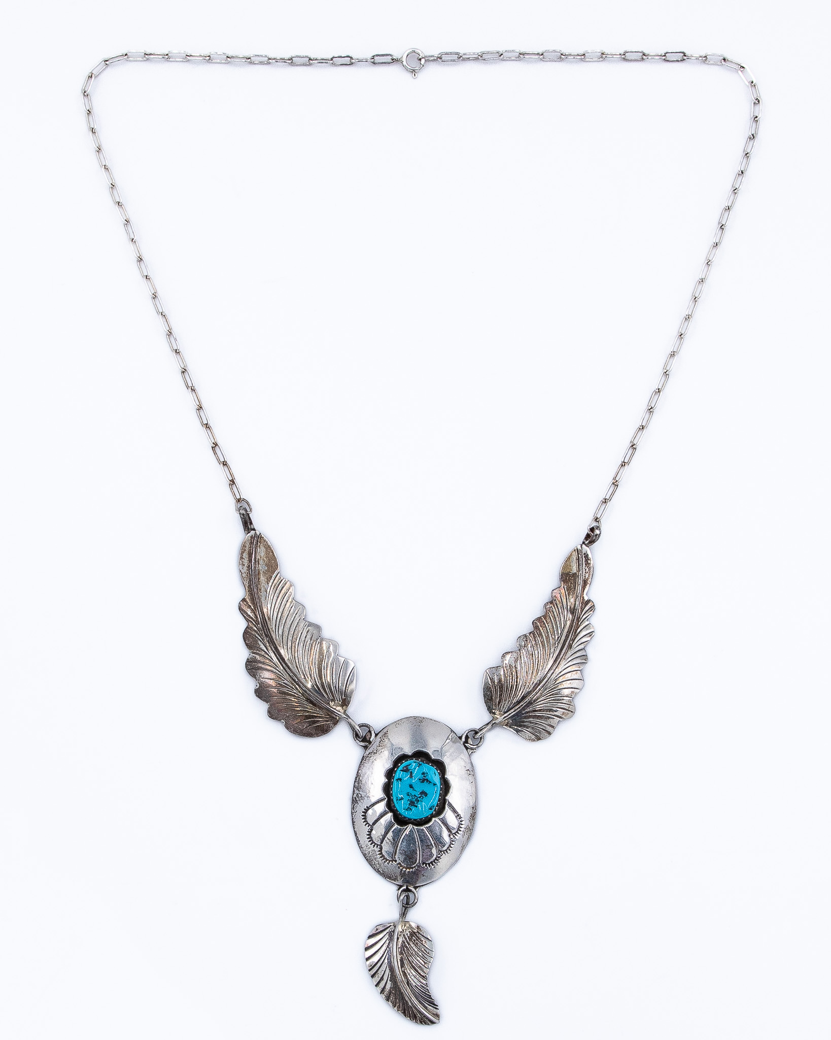 Arnold Maloney Navajo Vintage Sterling Turquoise Shadowbox Feather Necklace 19.3g