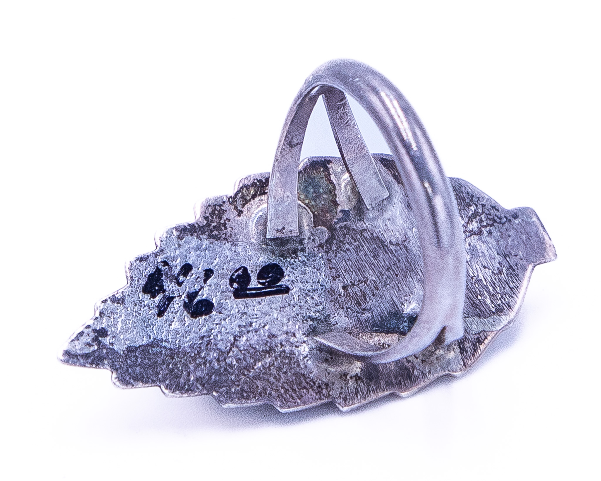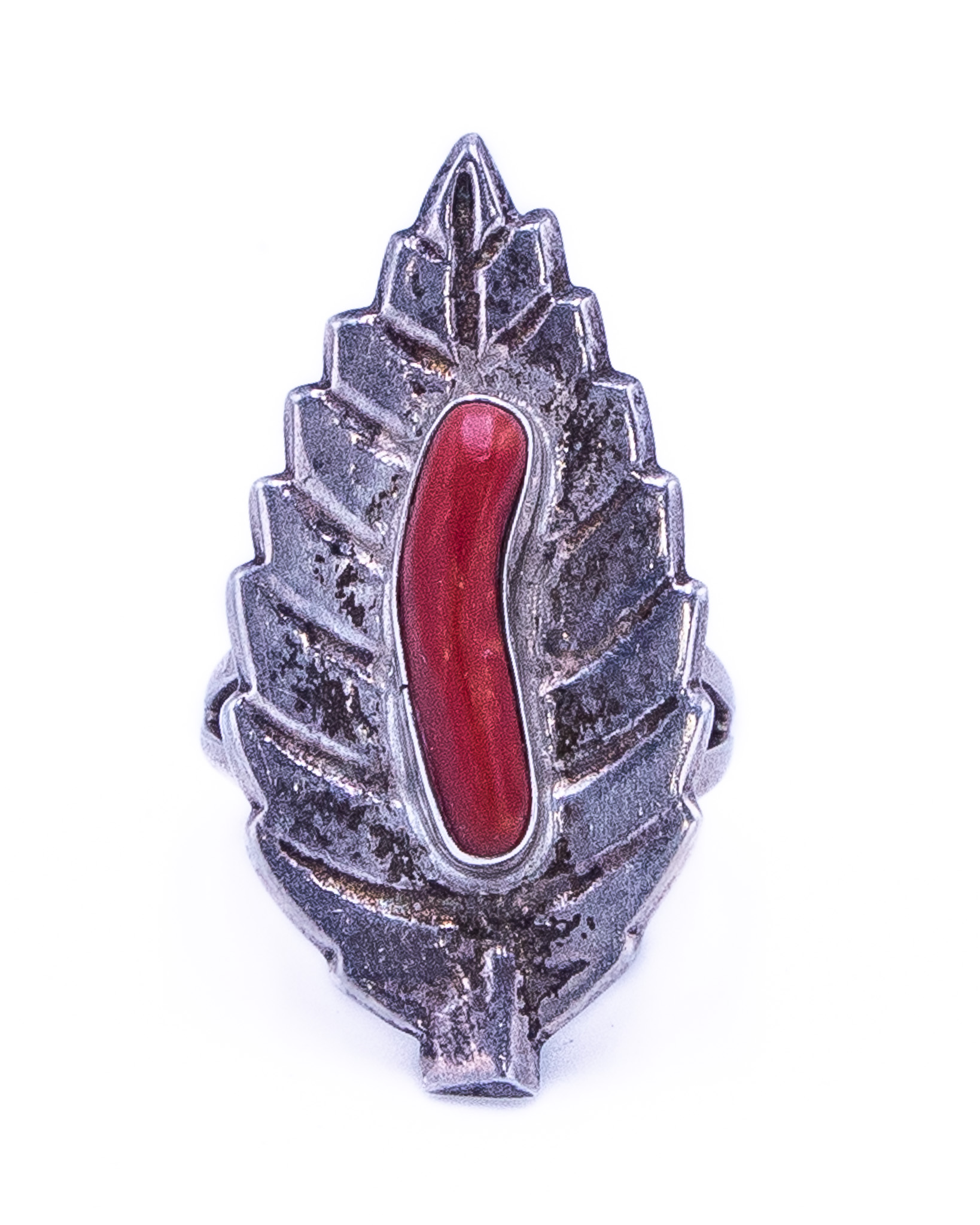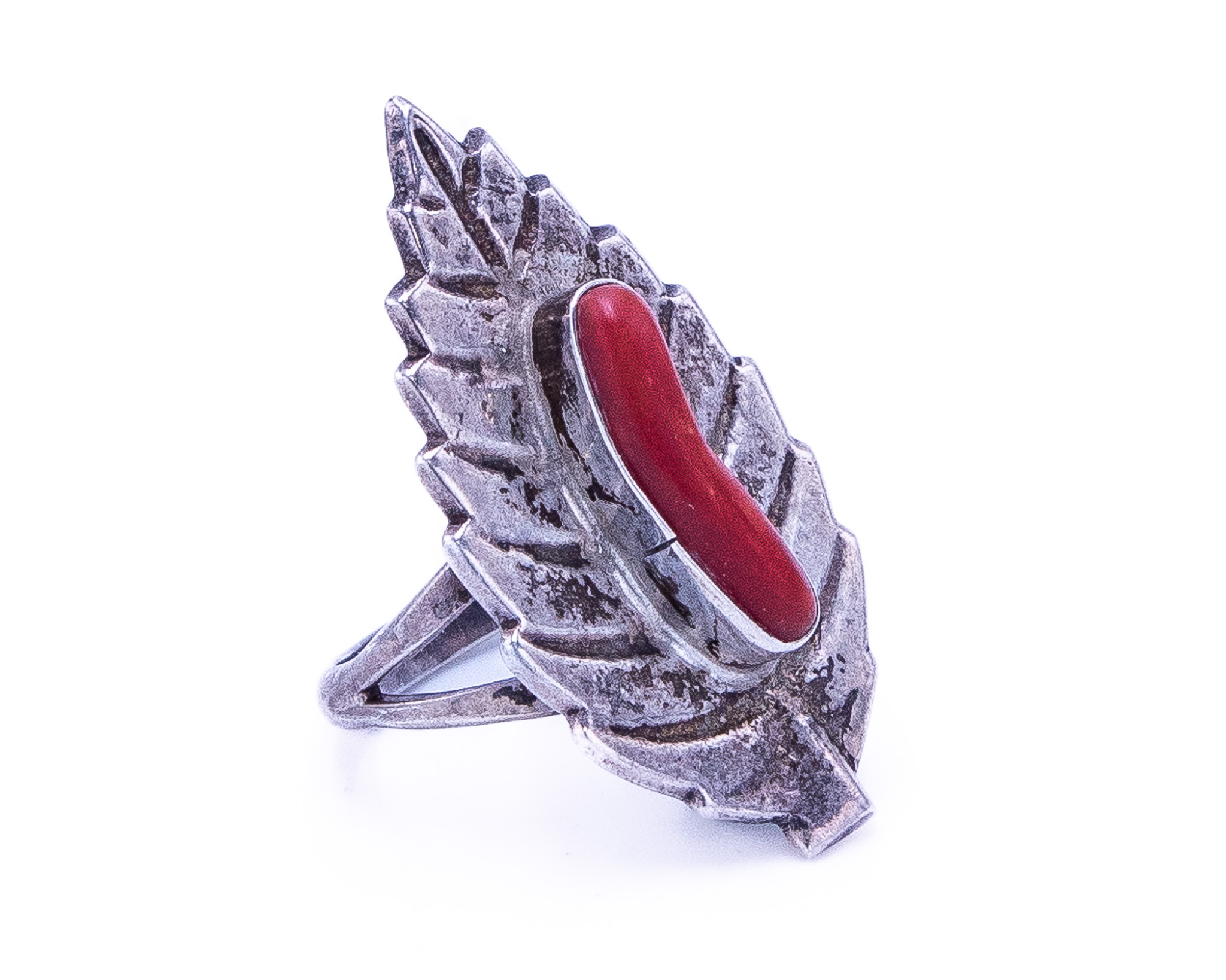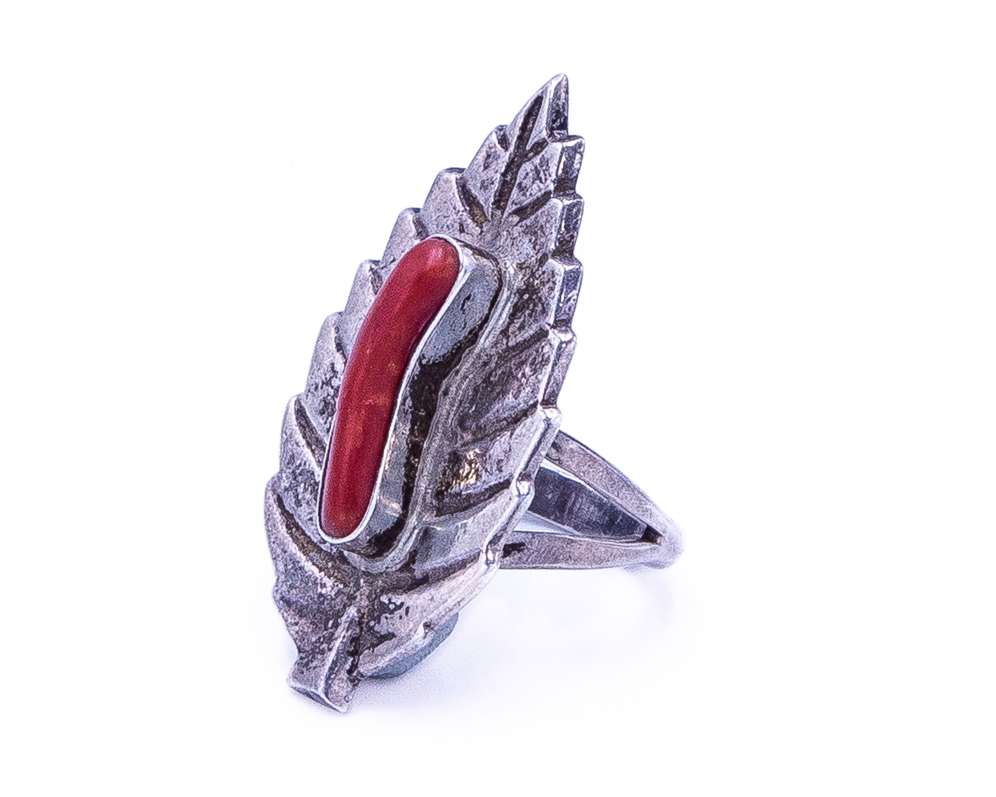Vintage Zuni Coral Sterling Leaf Ring Sz 9, 9g