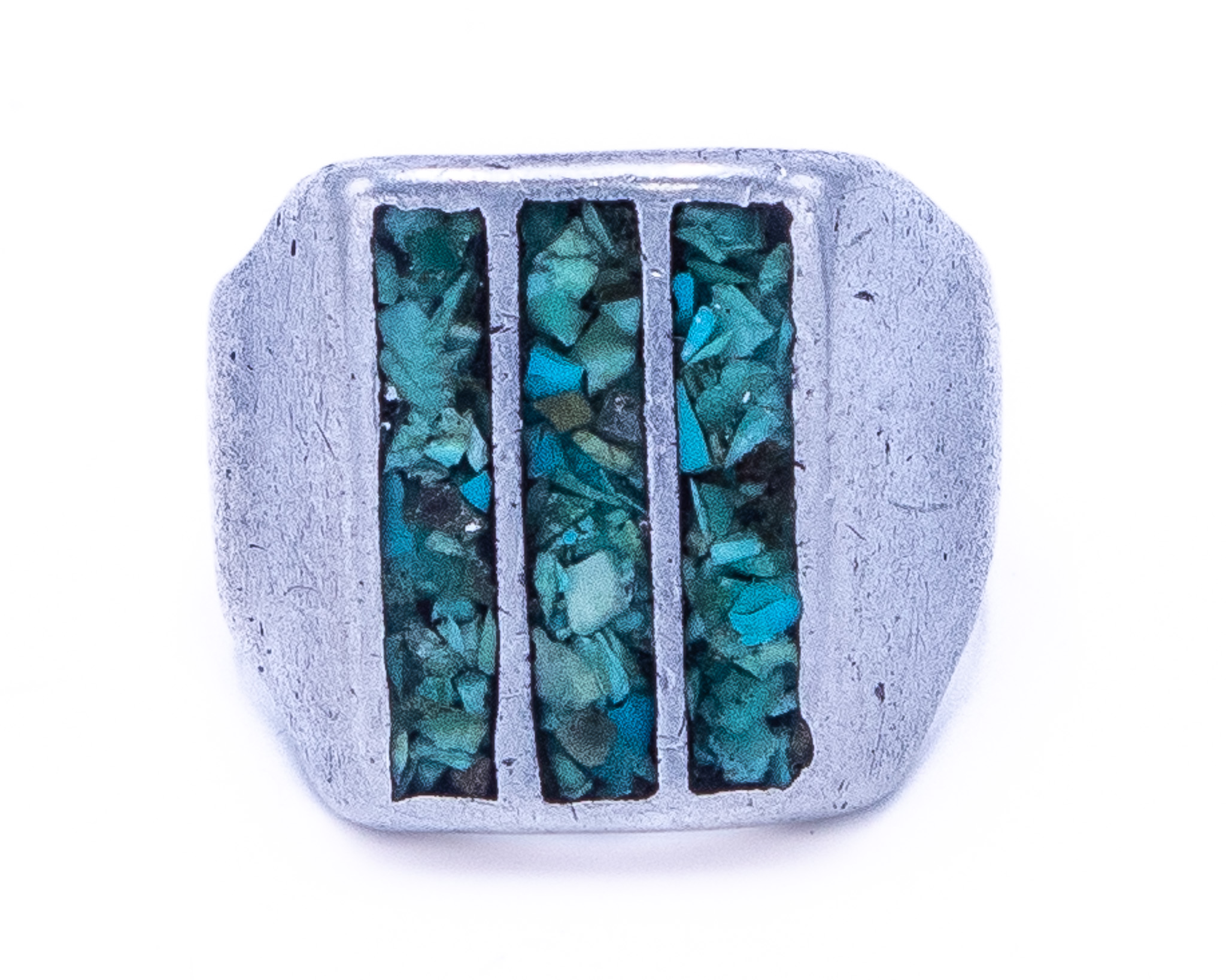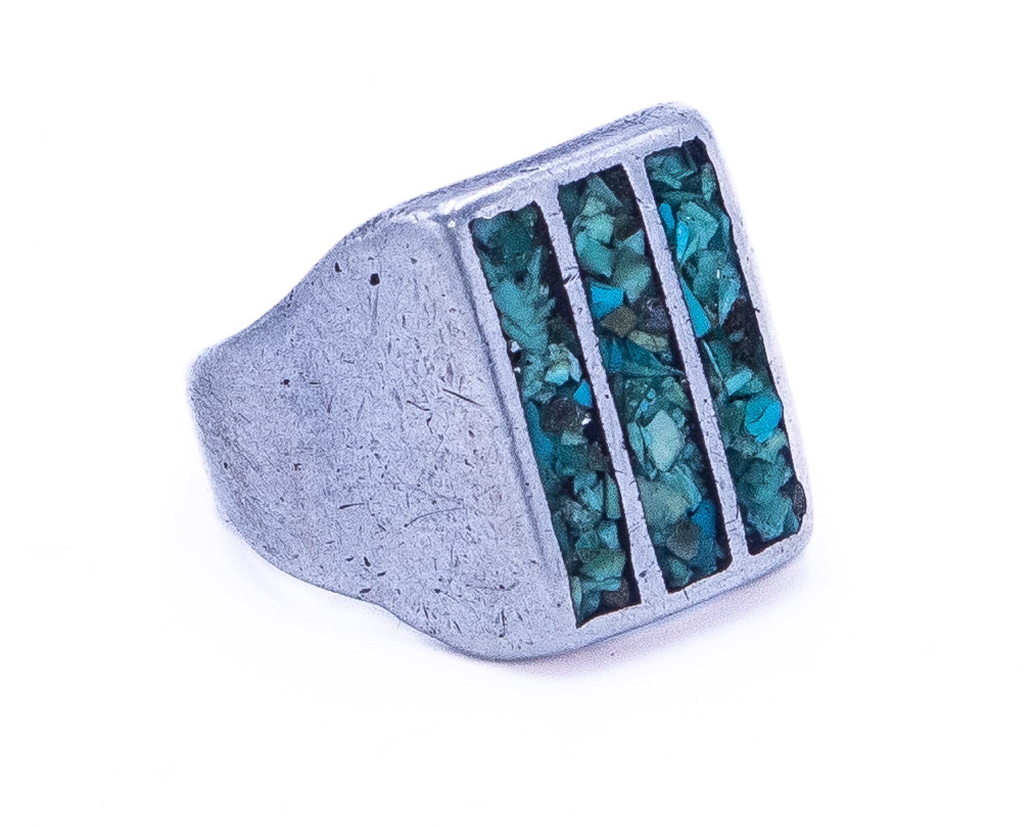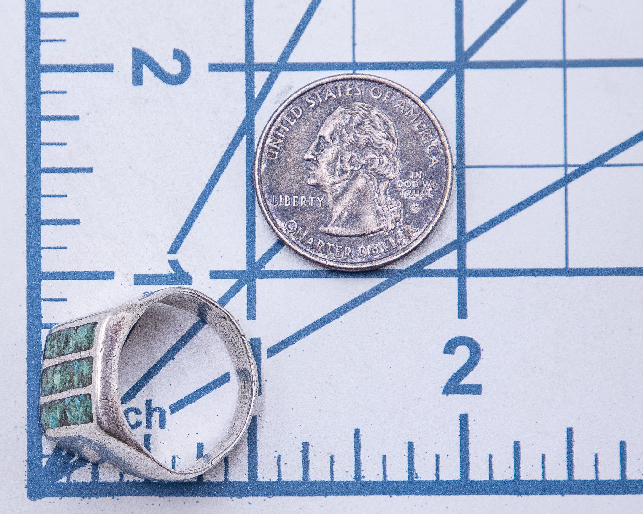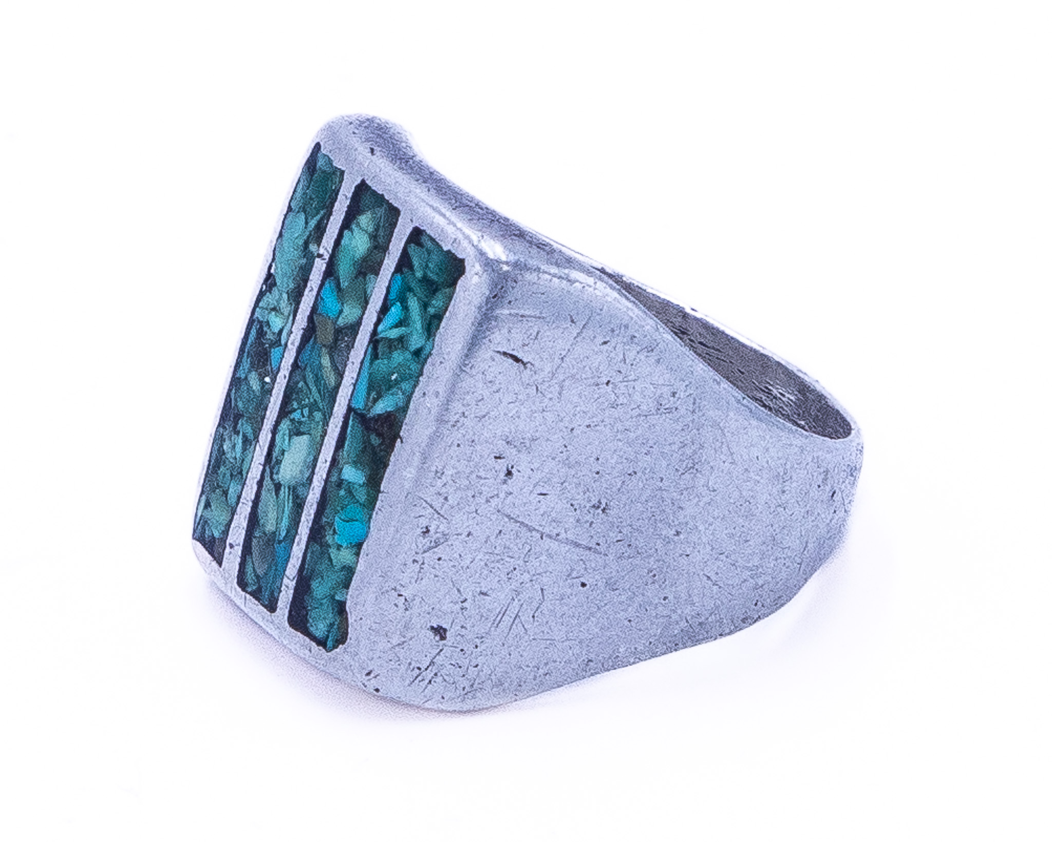 Vintage Navajo Crushed Green Turquoise Inlay Ring Sz 10, 13.5g