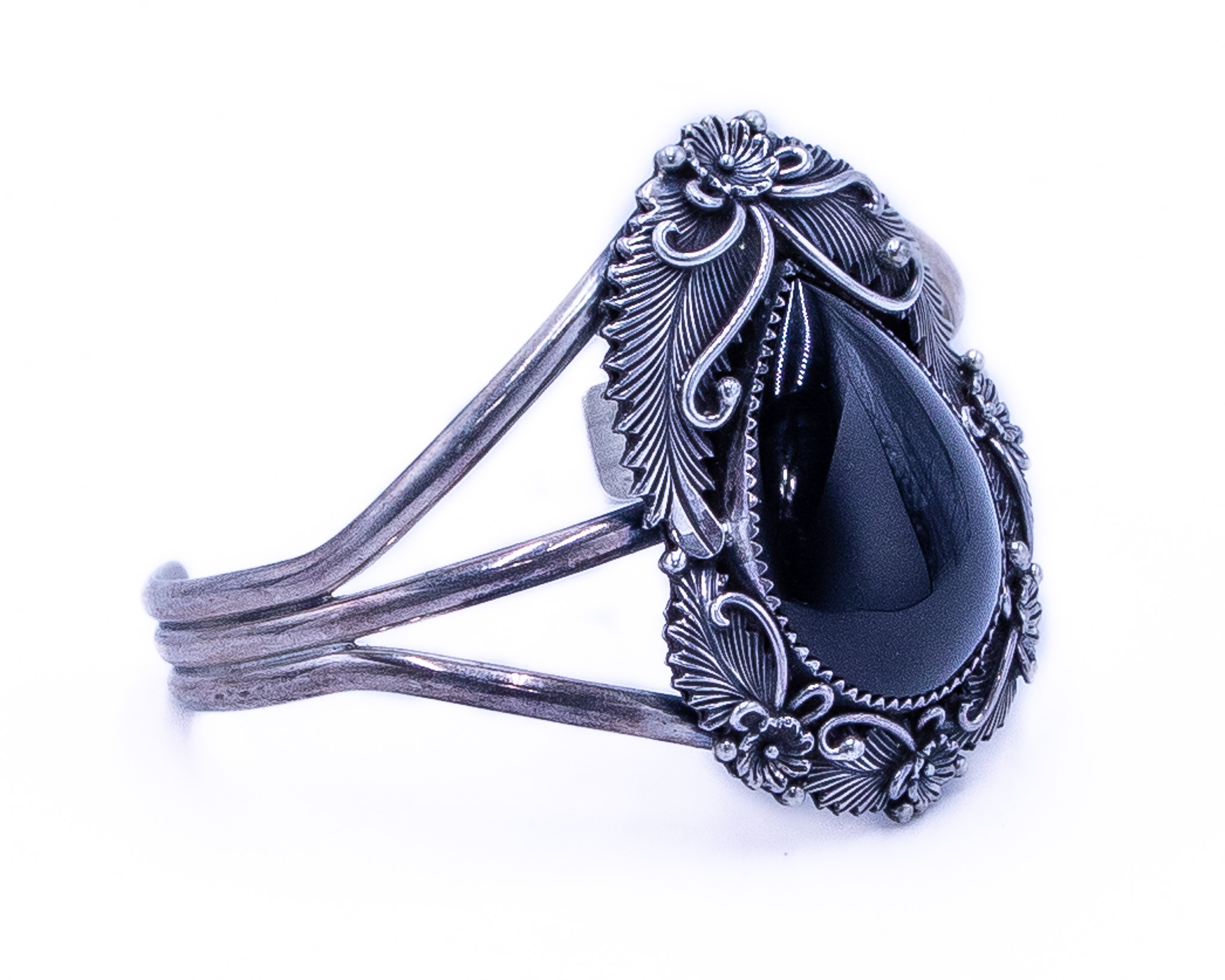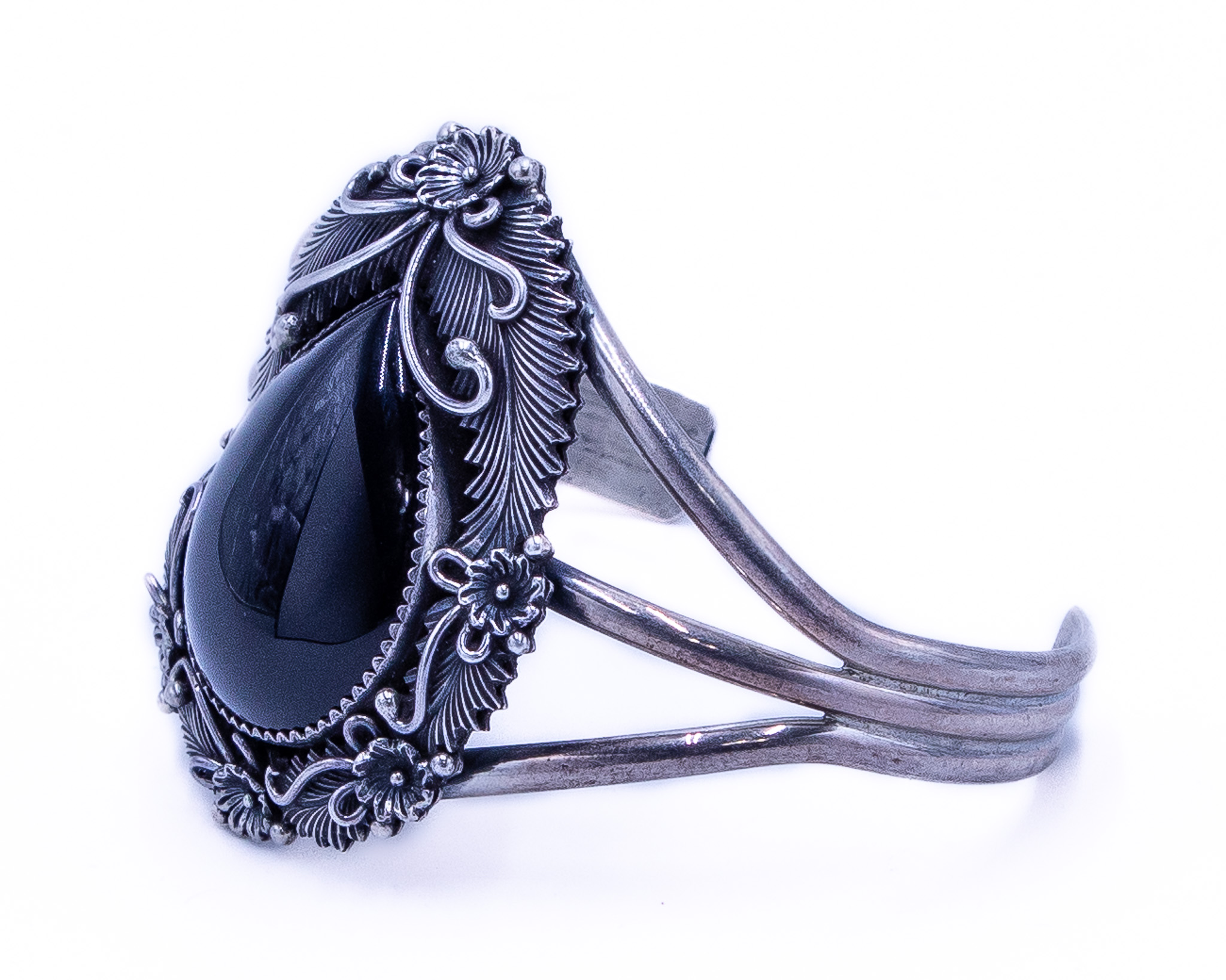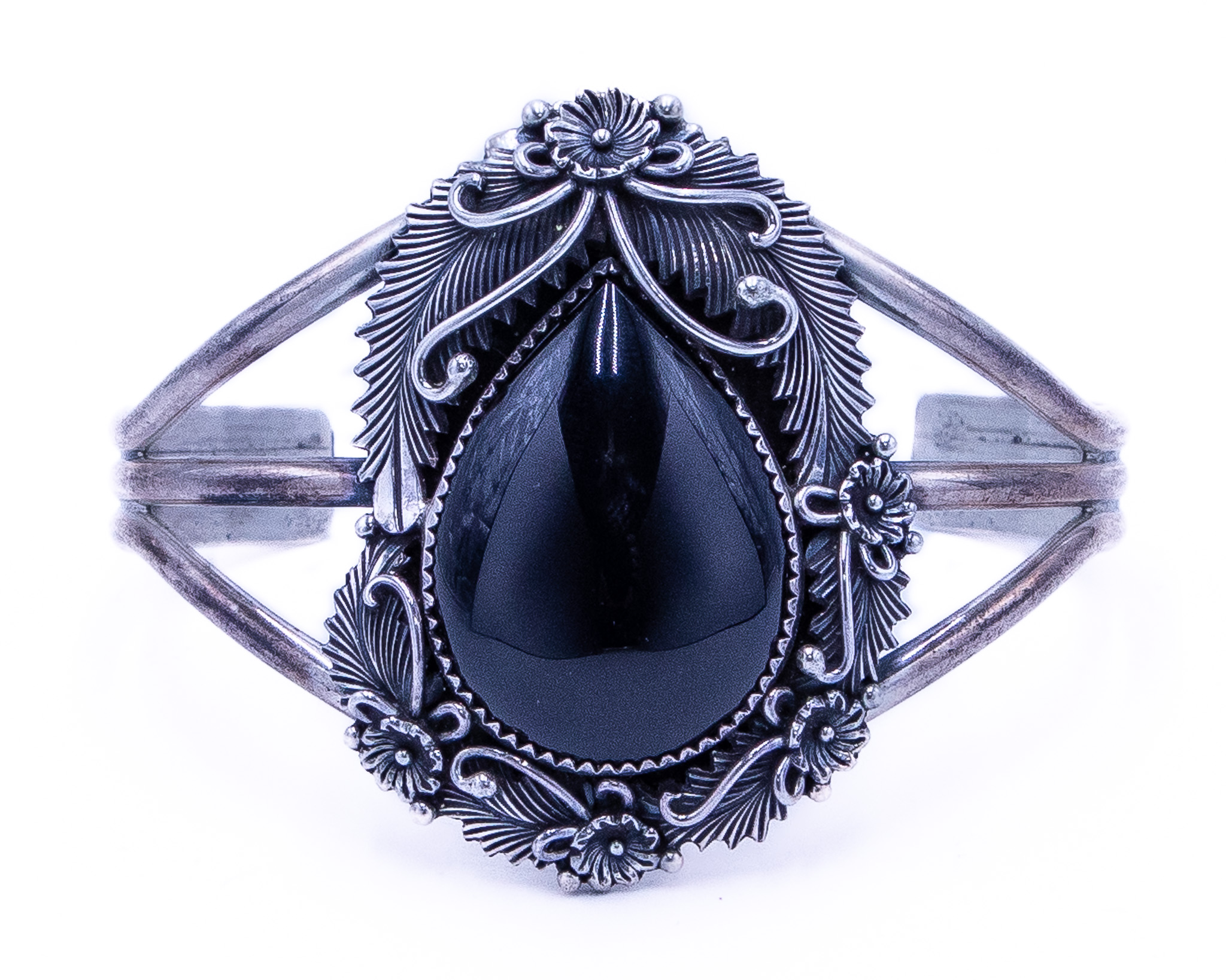Peterson Johnson Navajo Onyx Sterling Cuff Bracelet