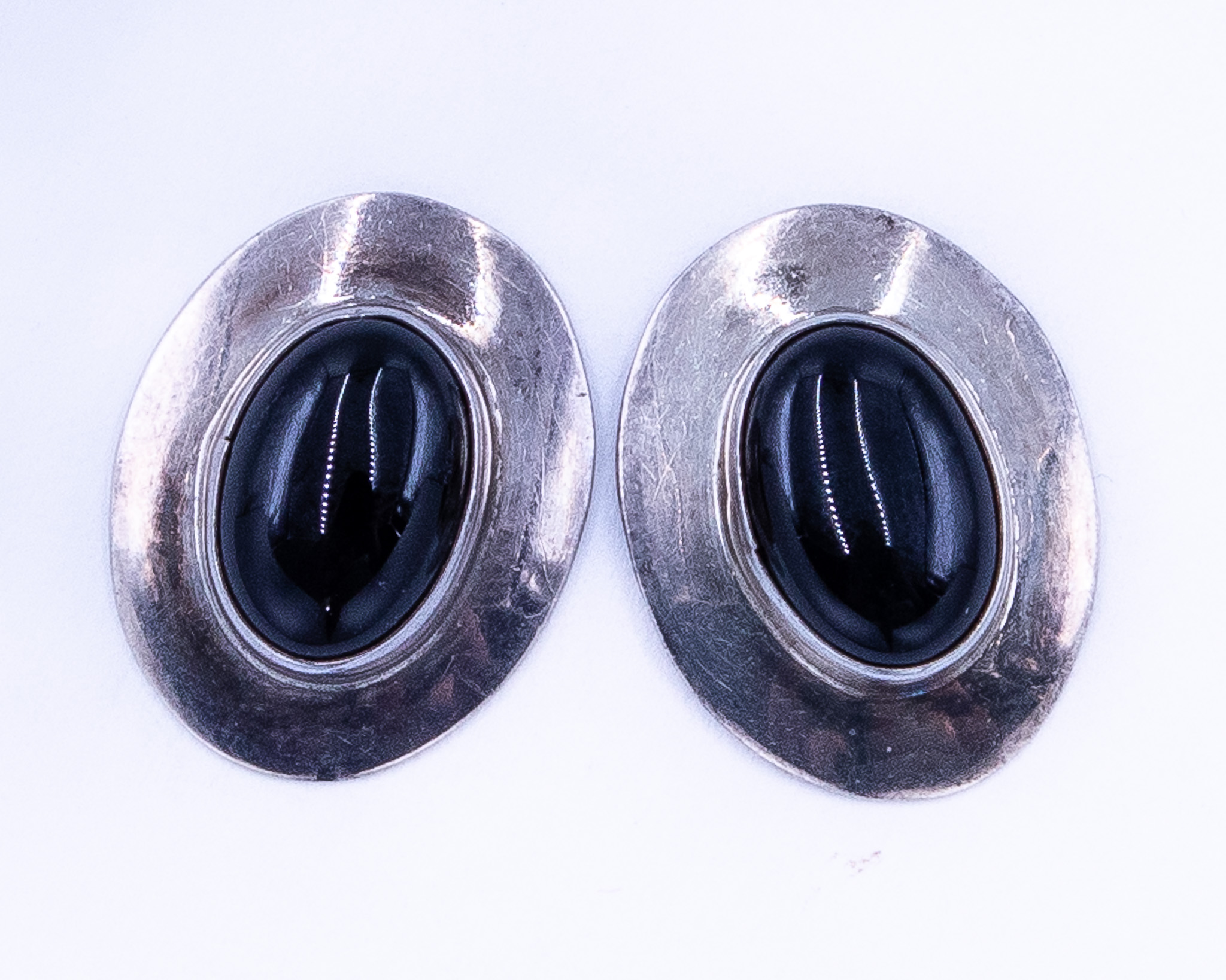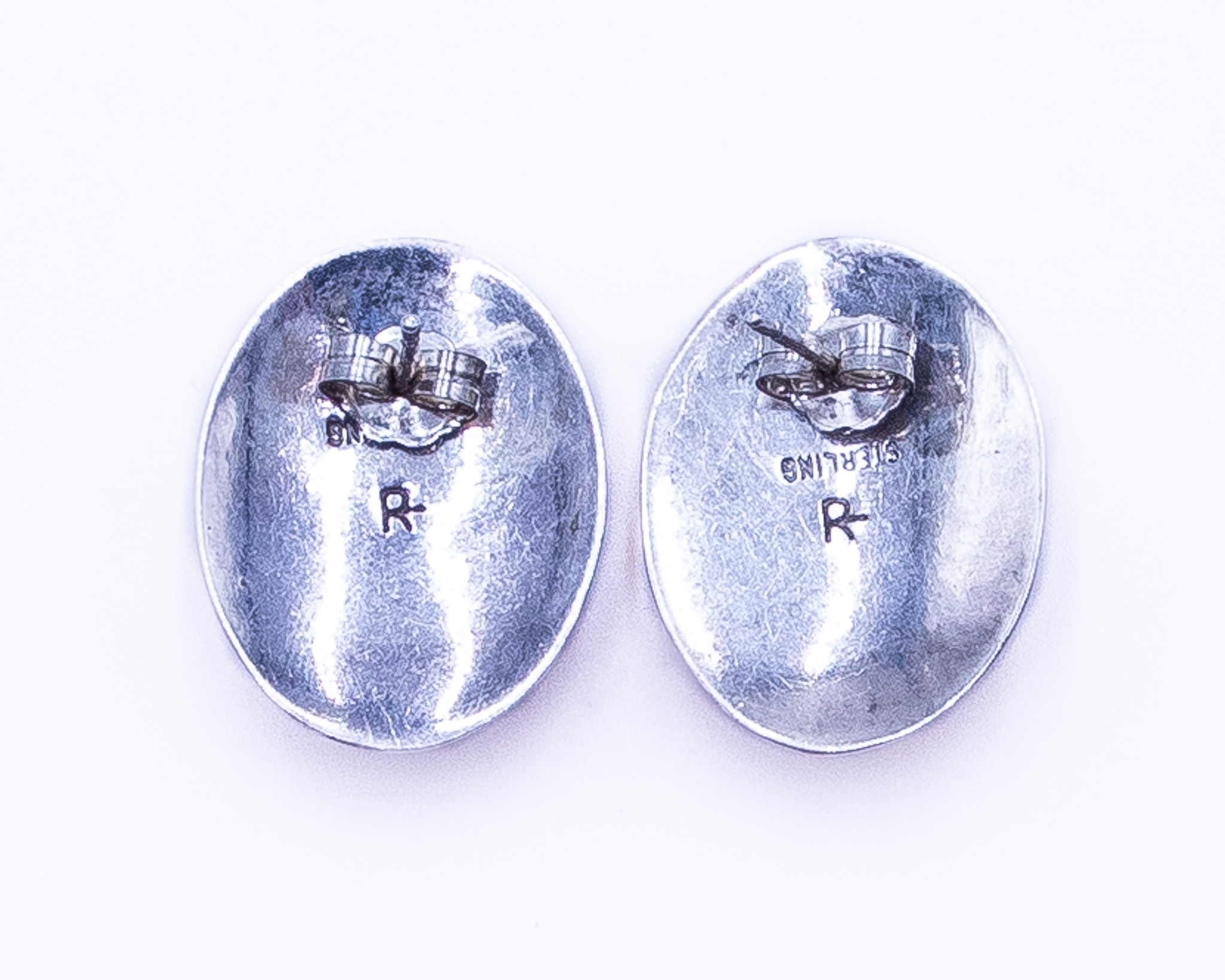 Signed R Navajo Onyx Sterling Earrings 6.5g