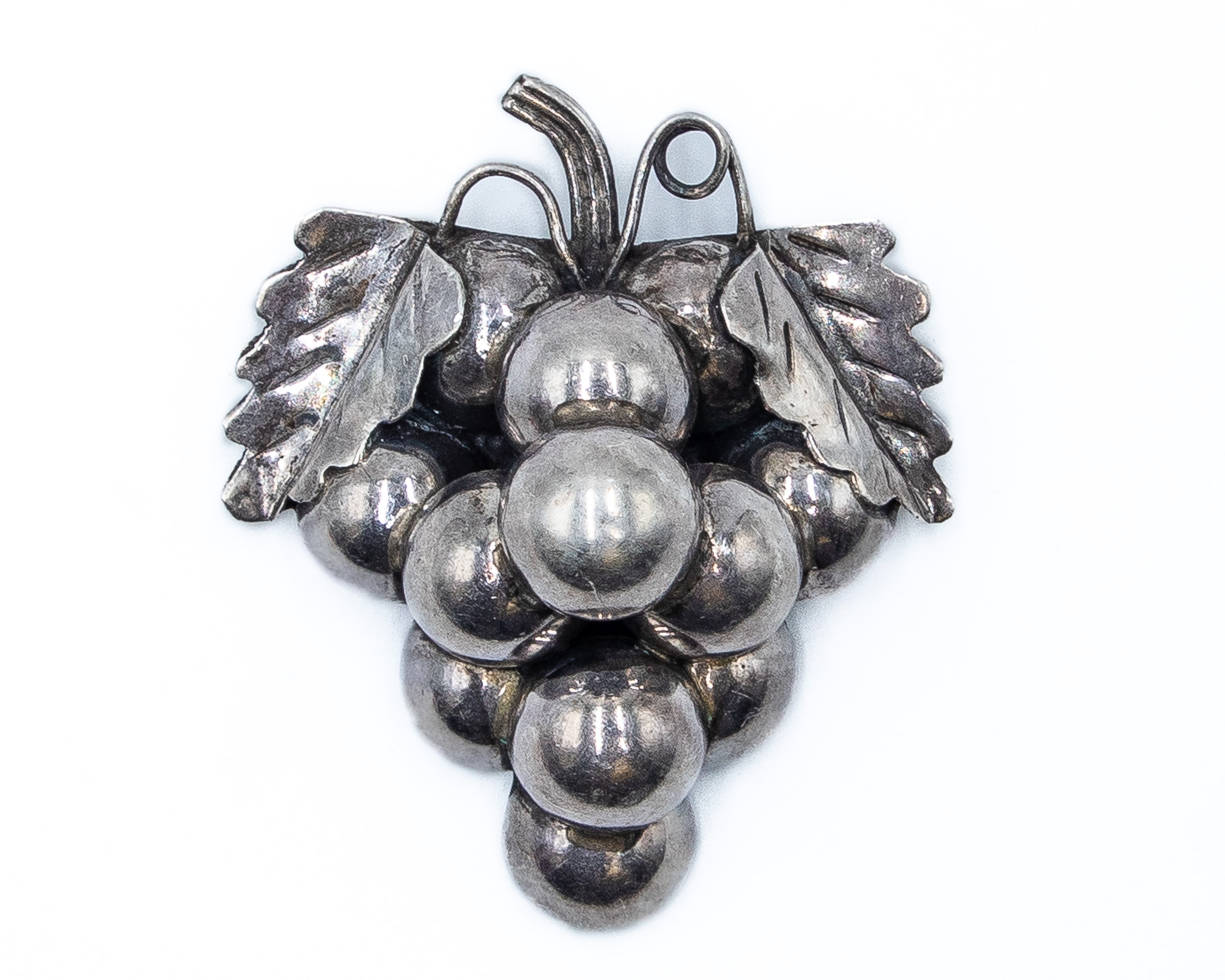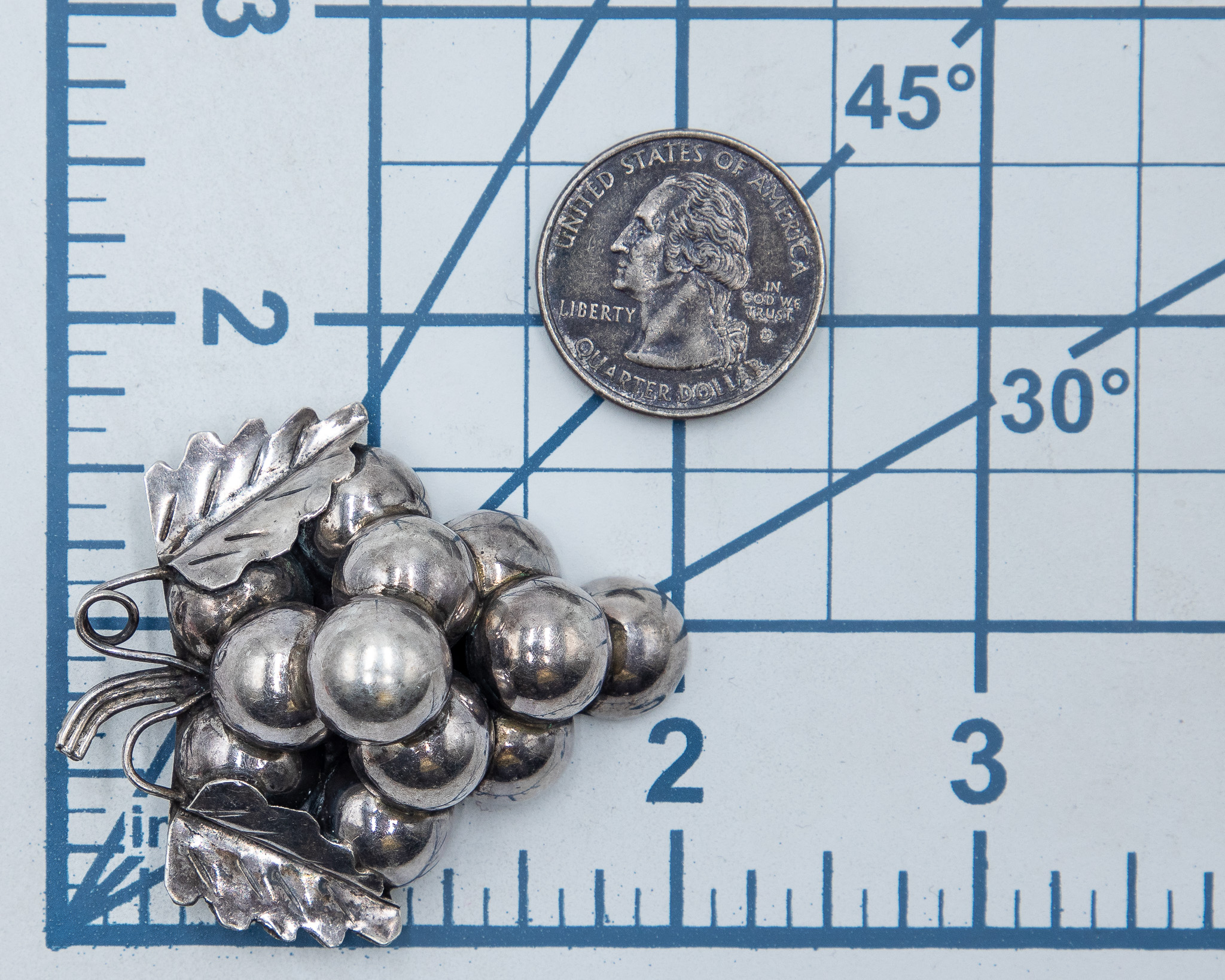 Vintage Mexico Taxco Sterling Hollow Form Grapes Brooch