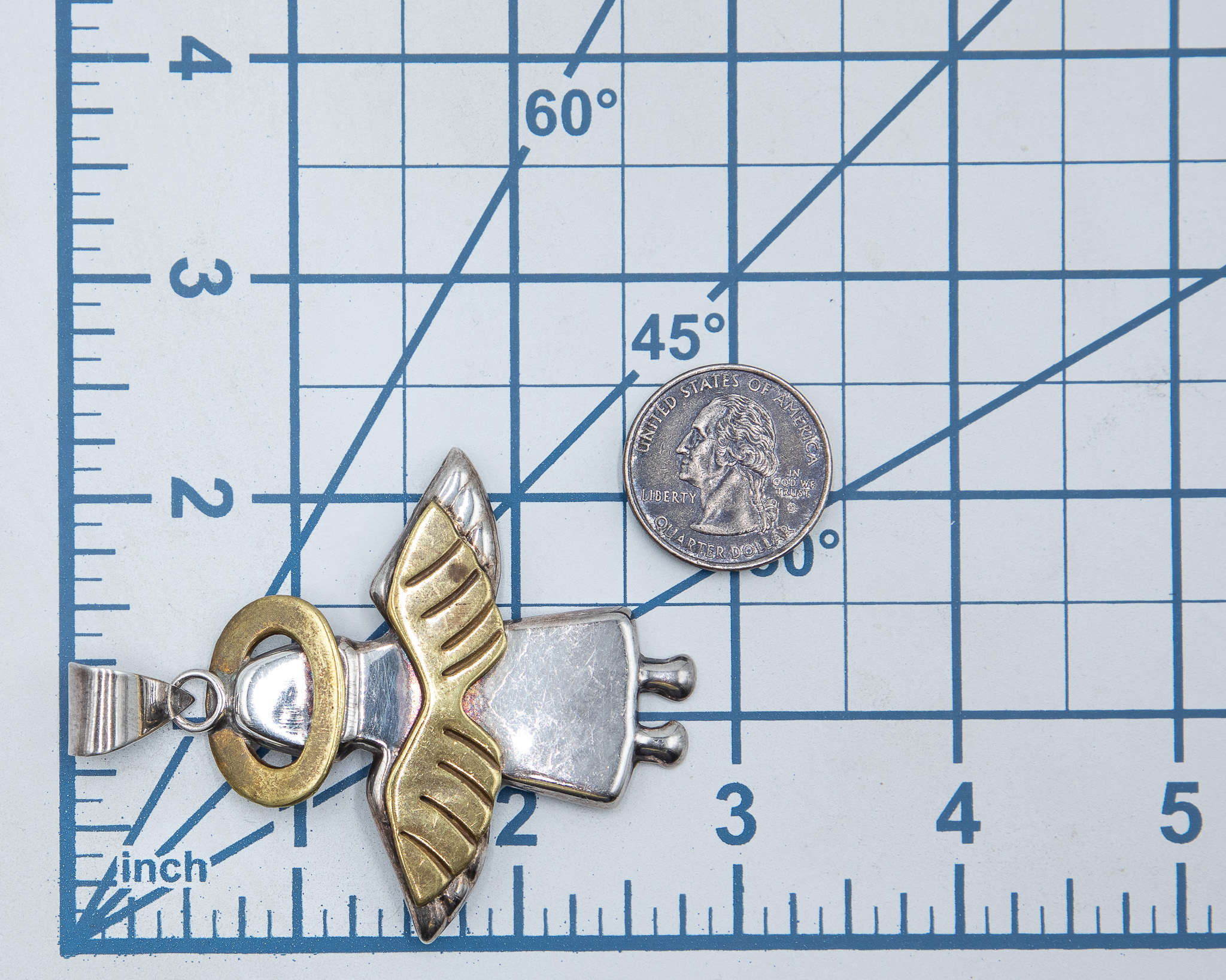 Vintage Mexico Sterling Two-Tone Angel Pendant 13g