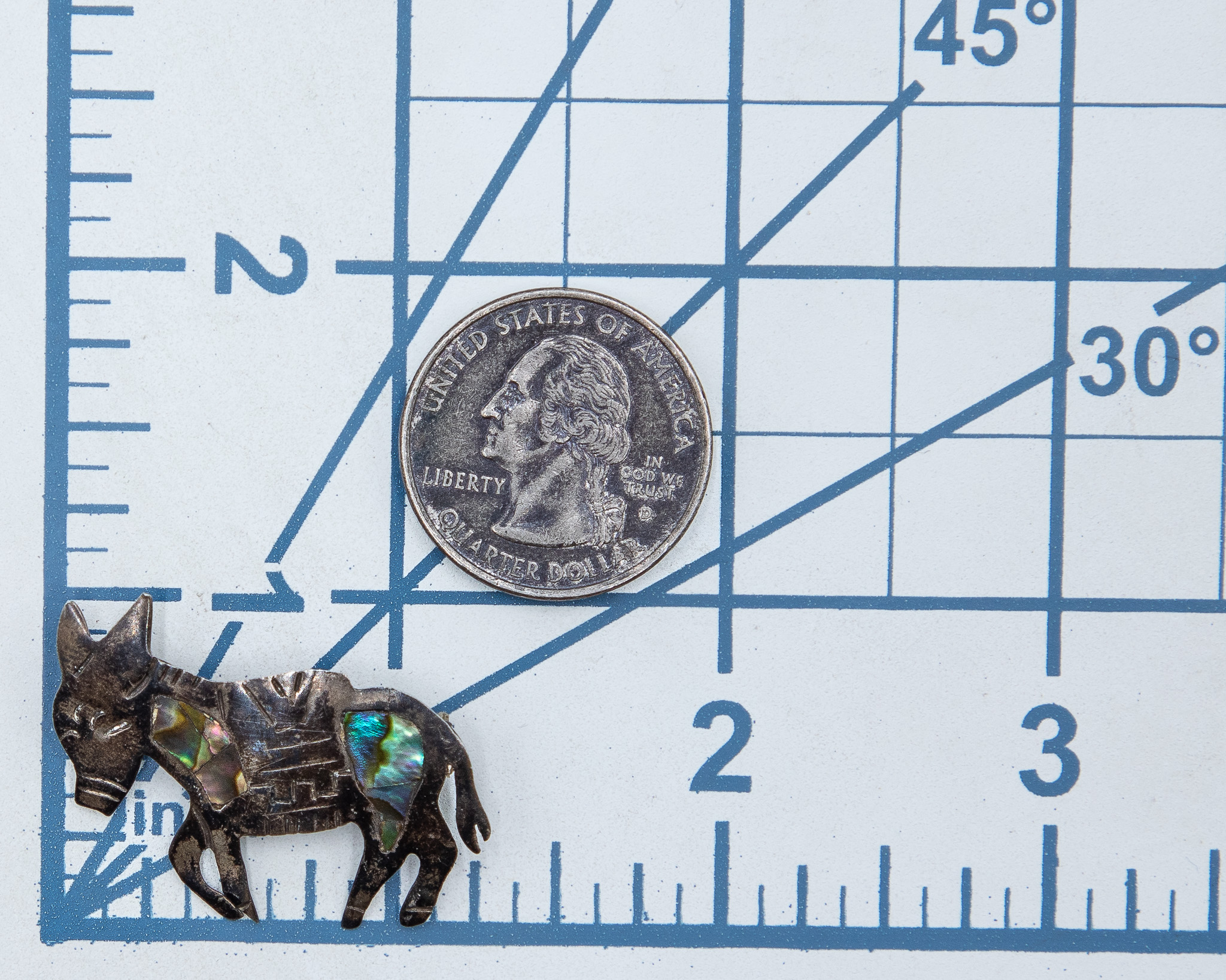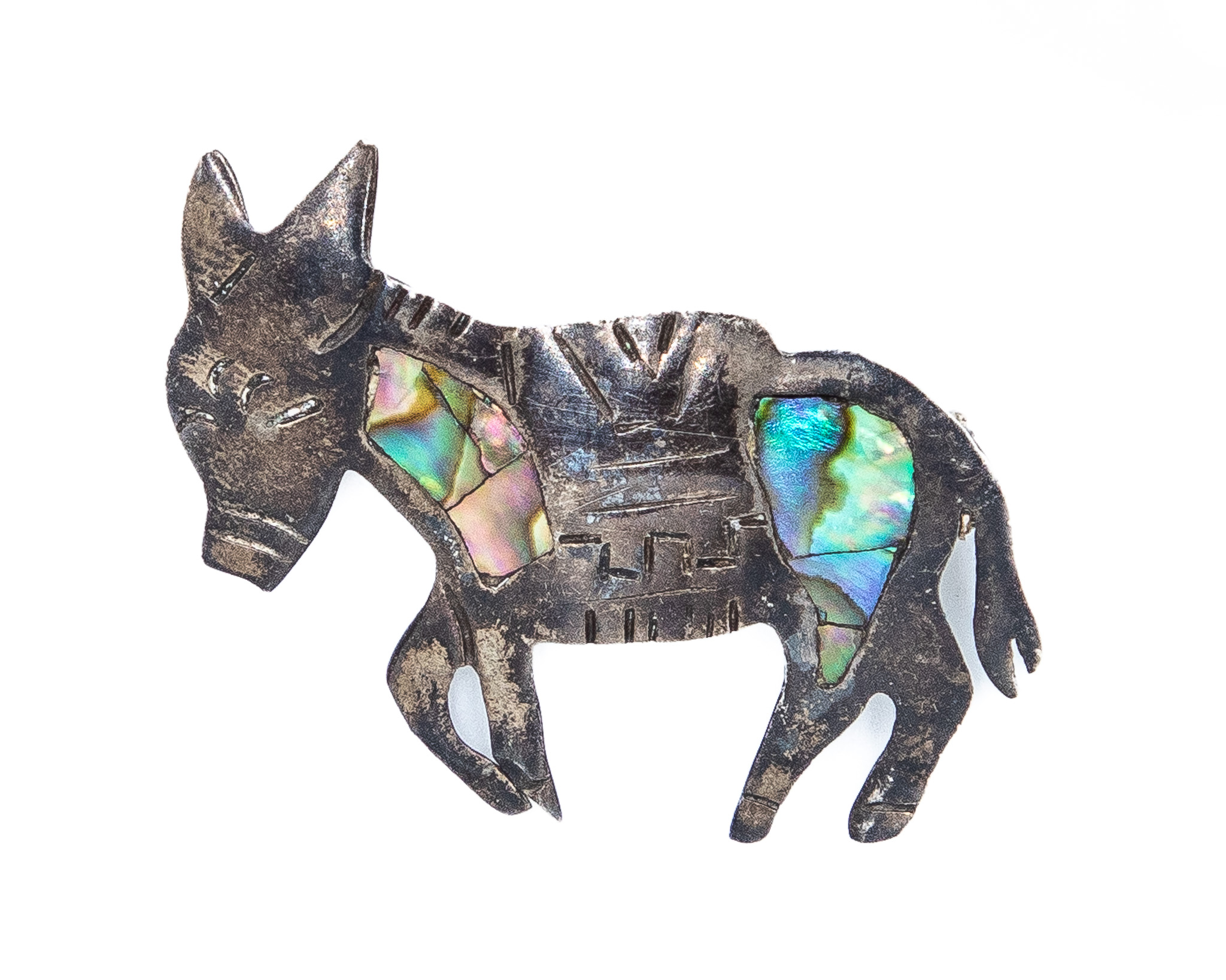 Vintage Mexico Abalone Sterling Burro Donkey Brooch 3g