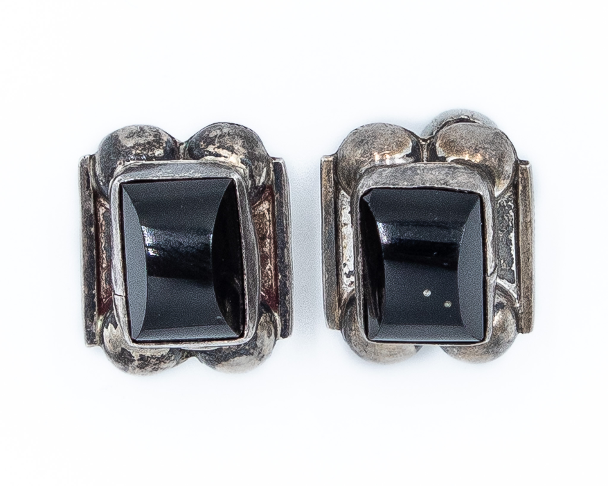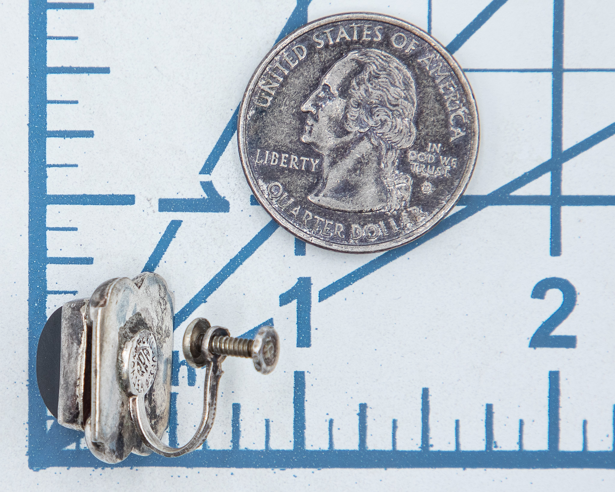Signed ARA? Onyx Sterling Screw Back Earrings 9g