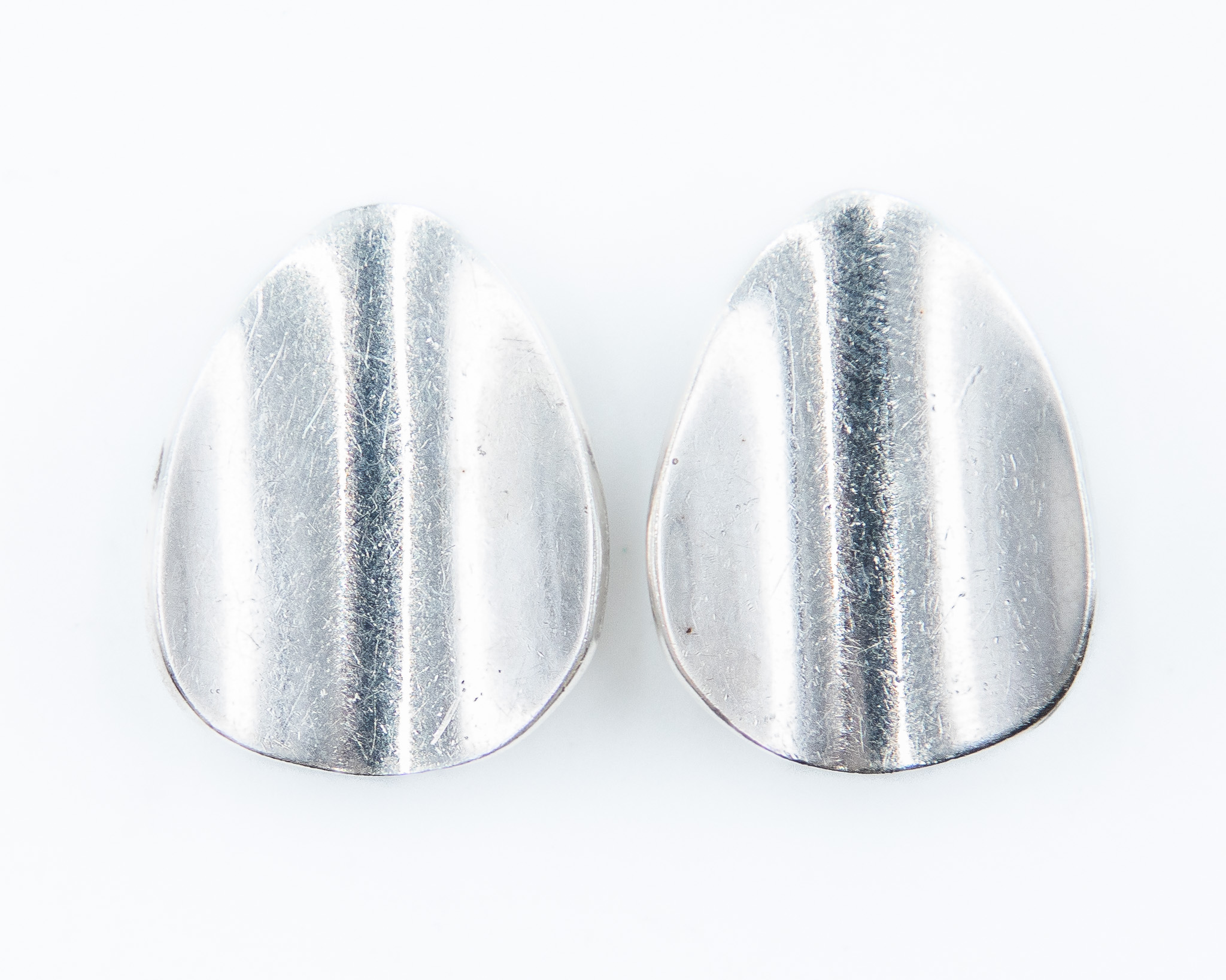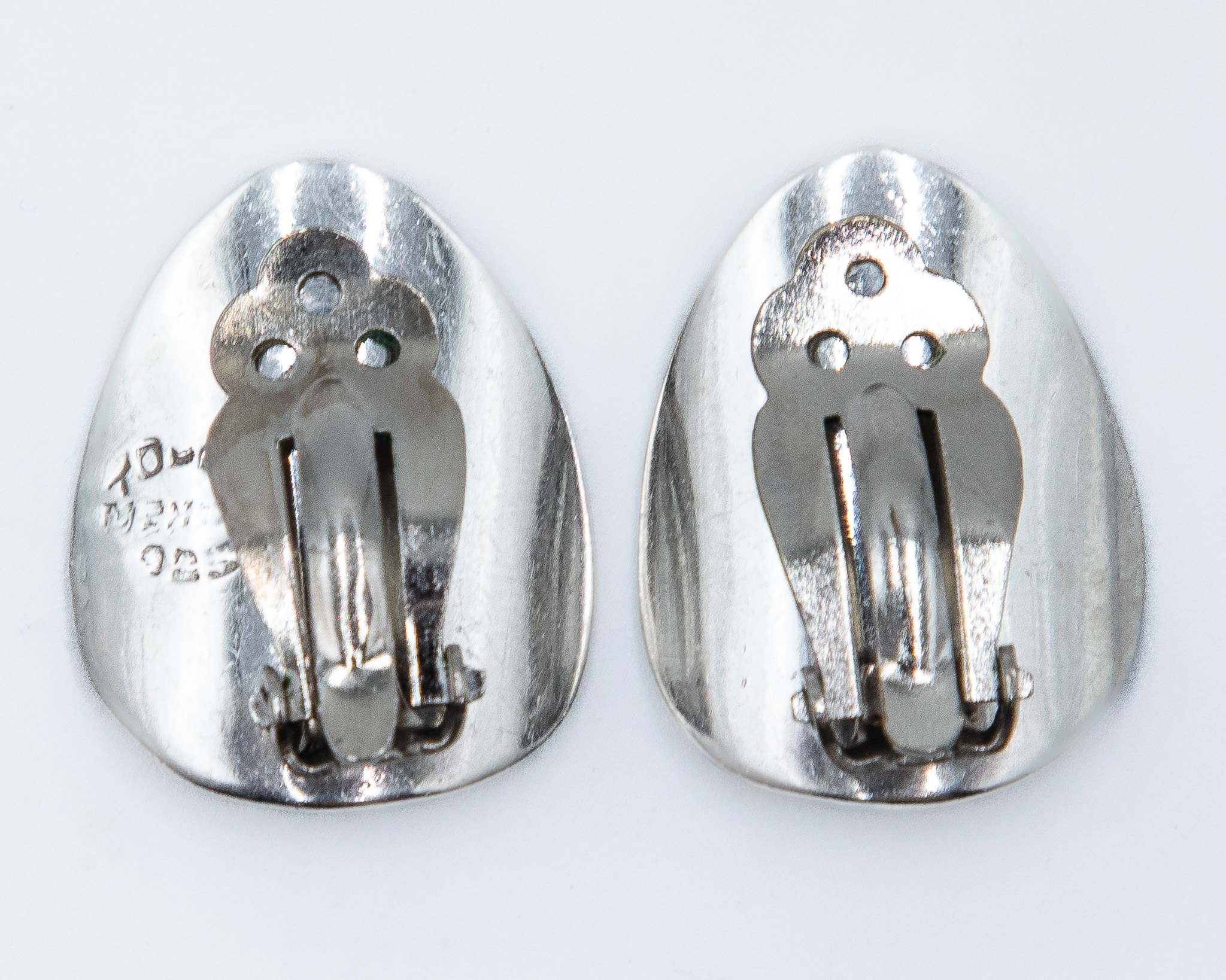 Mexico Sterling Wave Disk Clip Earrings 13g