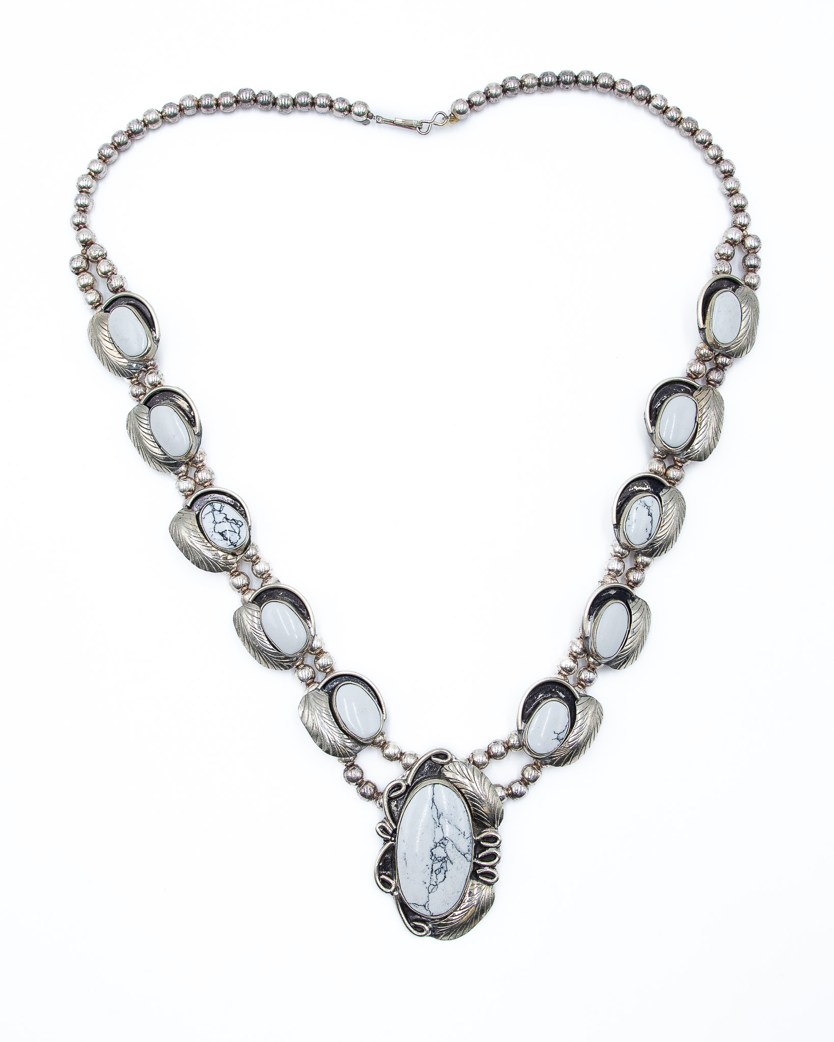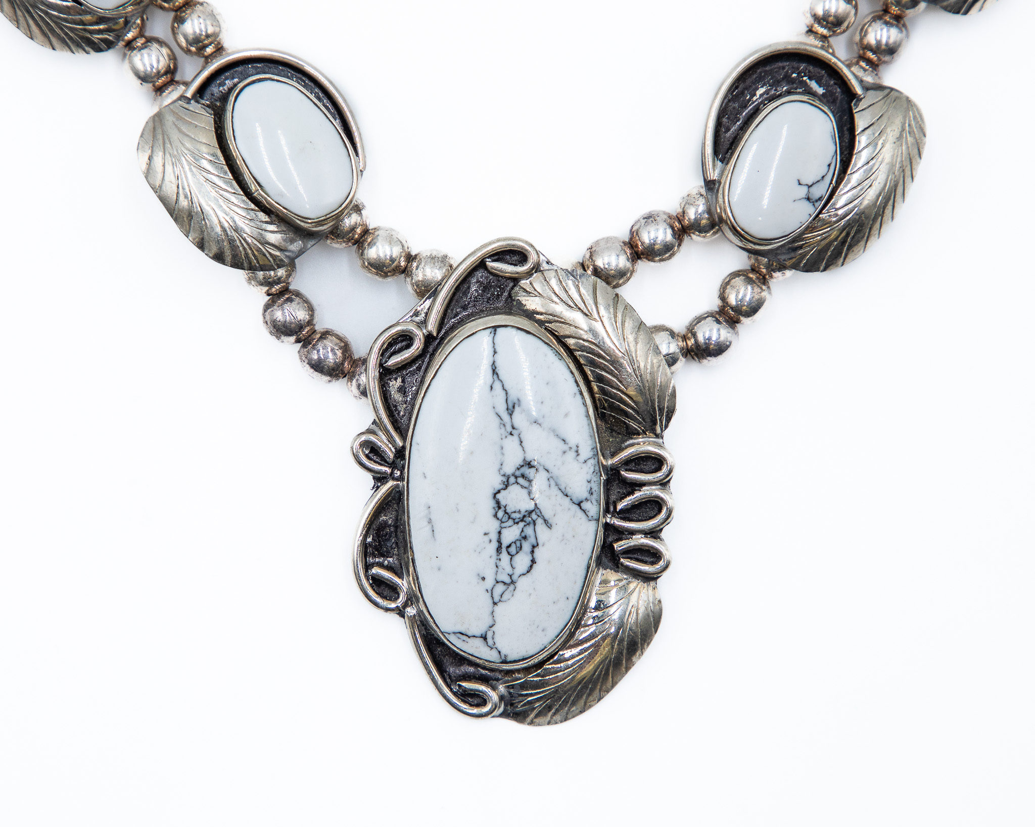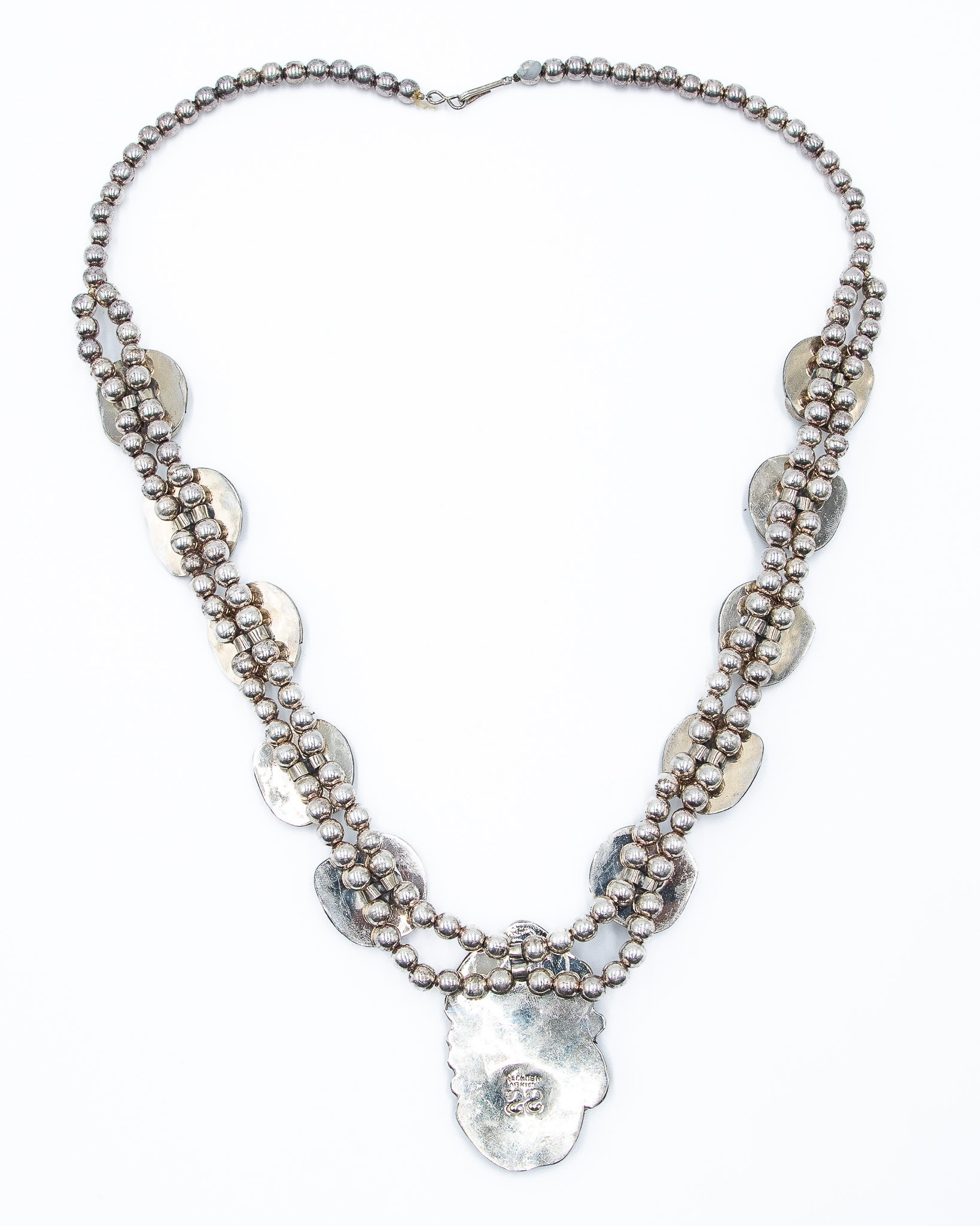 Mexico White Buffalo Sterling Squash Blossom Necklace 124g