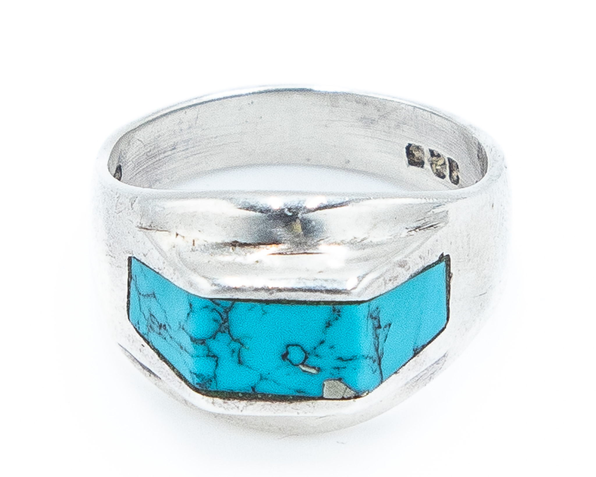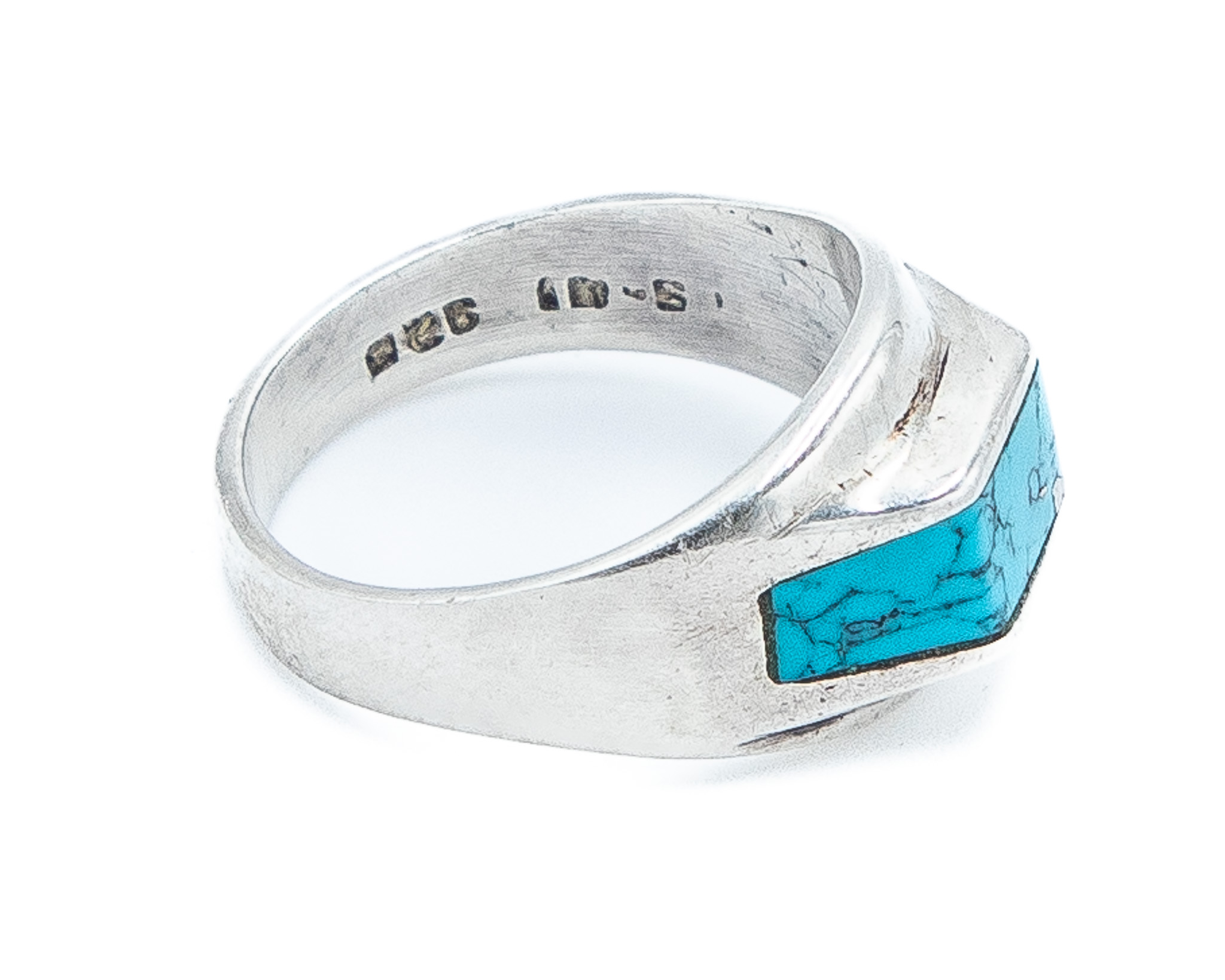 Signed TS-41 Taxco Mexico Turquoise Sterling Ring Sz 7.5, 6.5g
