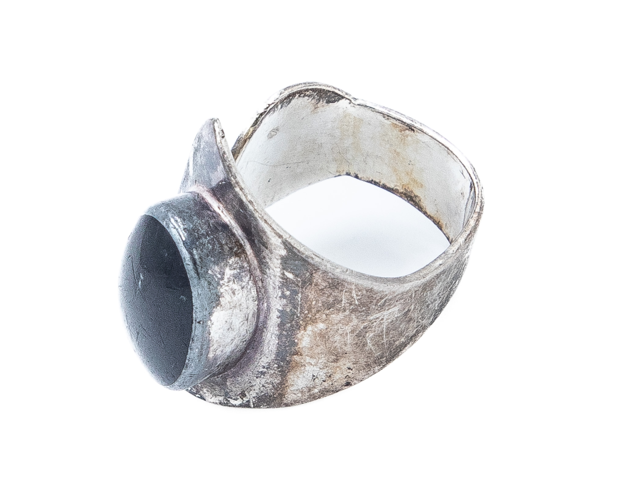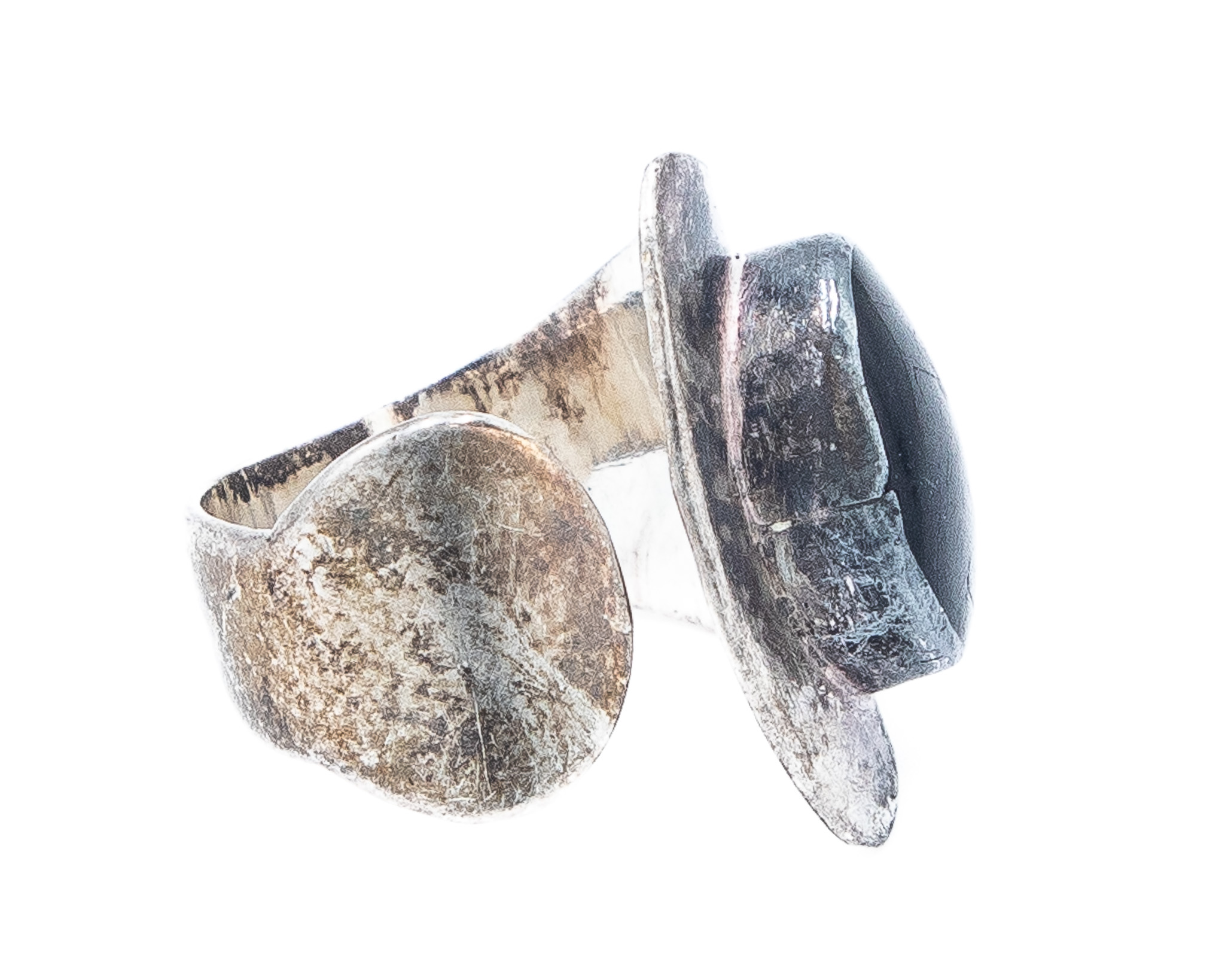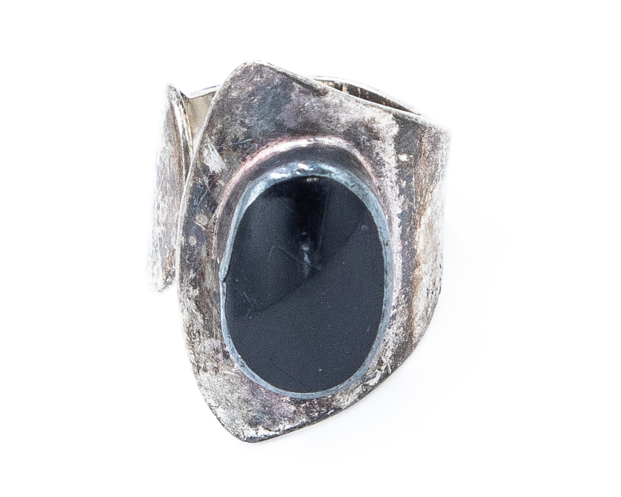 Vintage Mexico Onyx Sterling Open Ring 9g