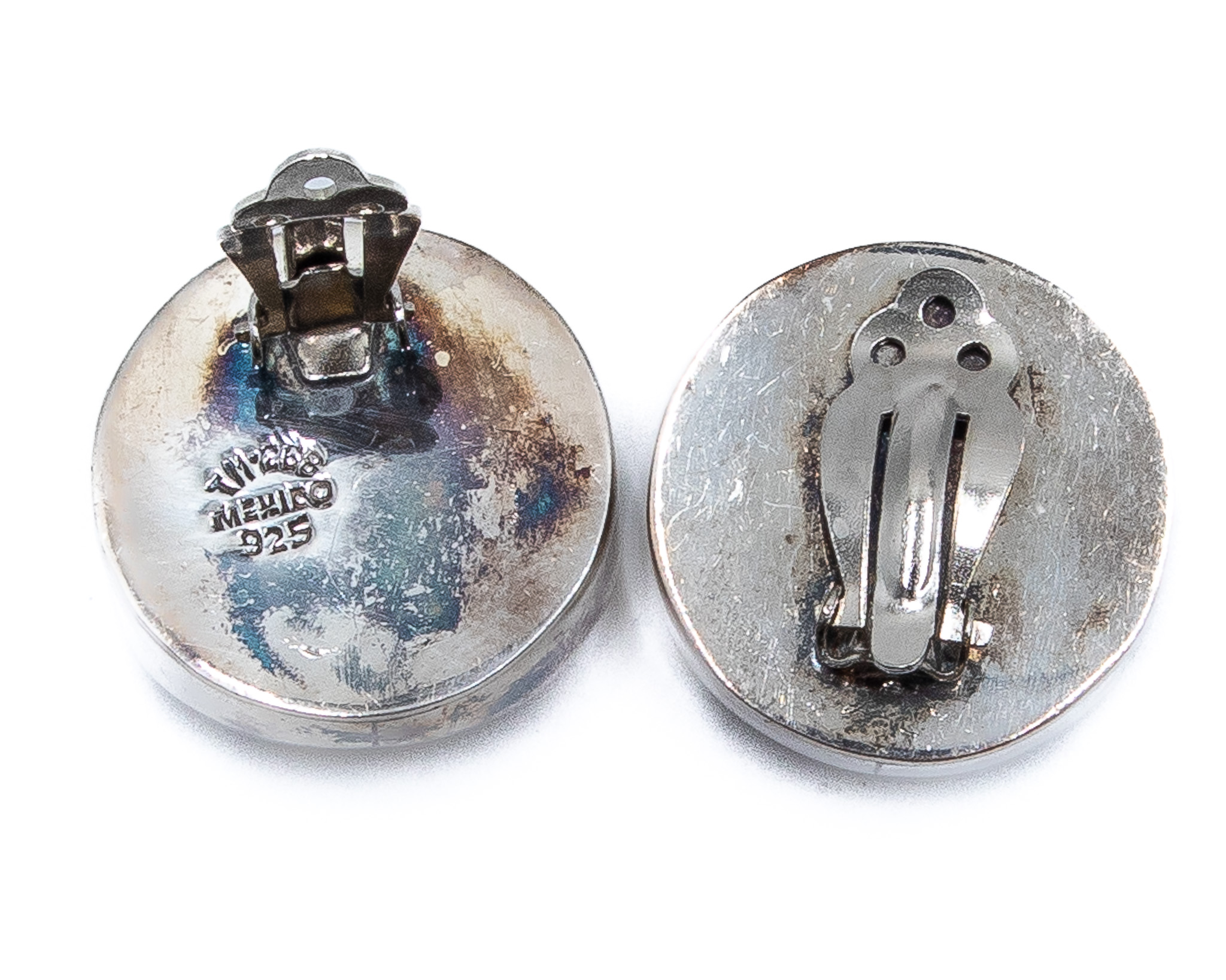 Signed TM-268 Taxco Mexico Sterling Hollow Form Disk Clip Earrings 23g