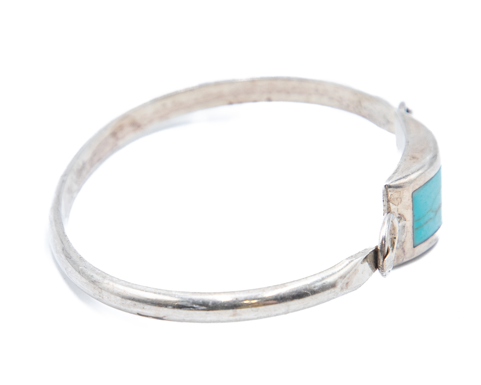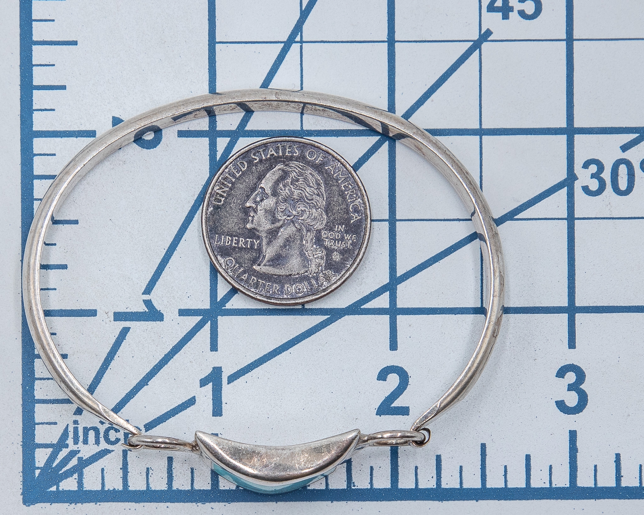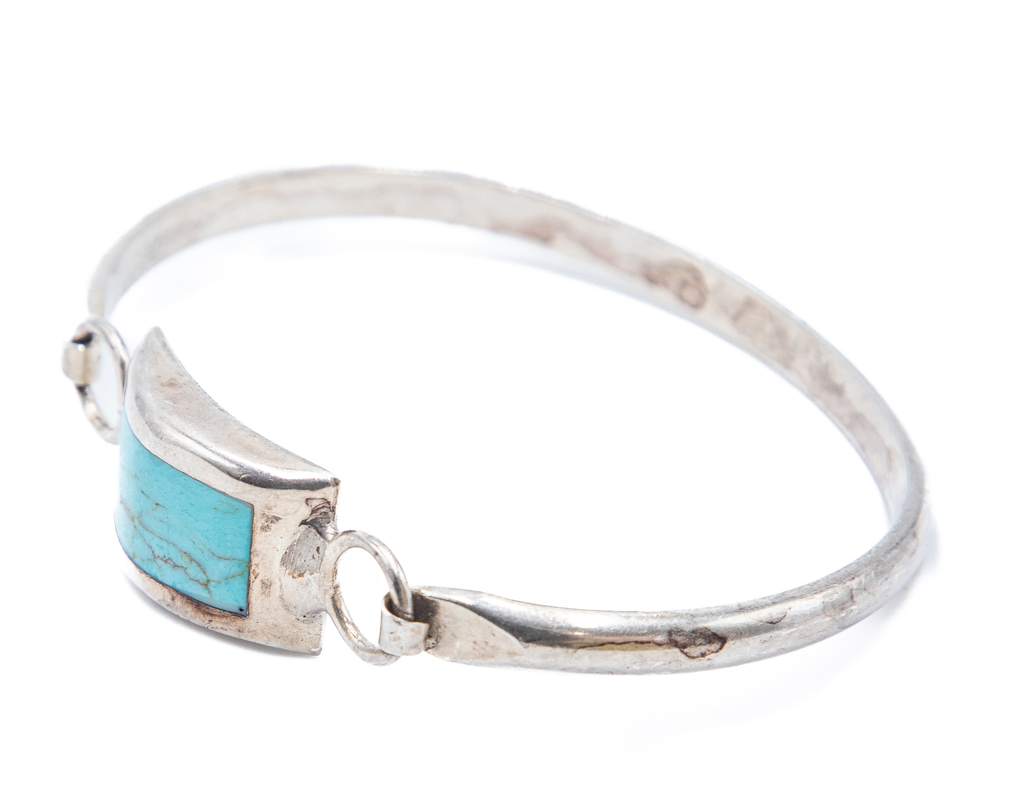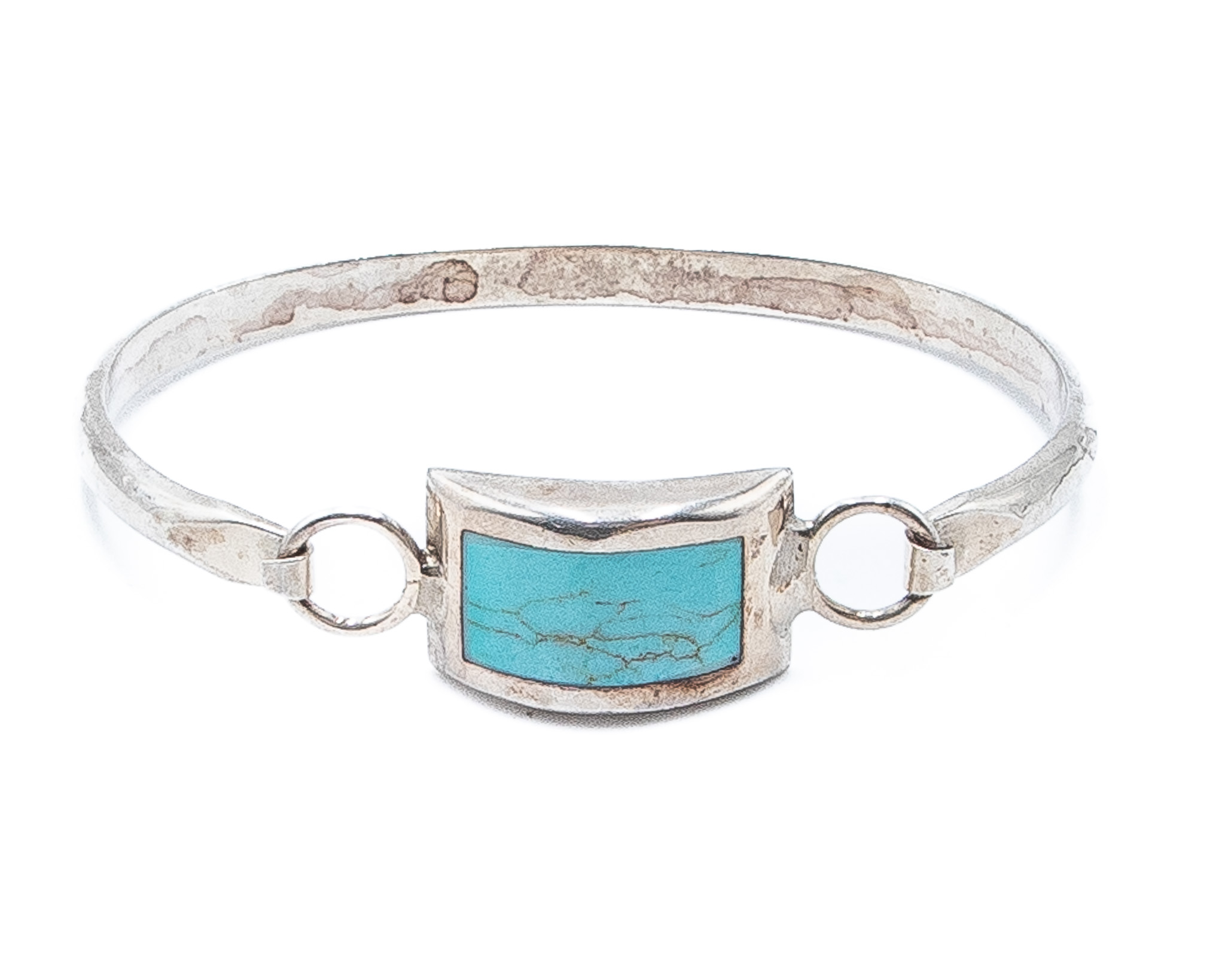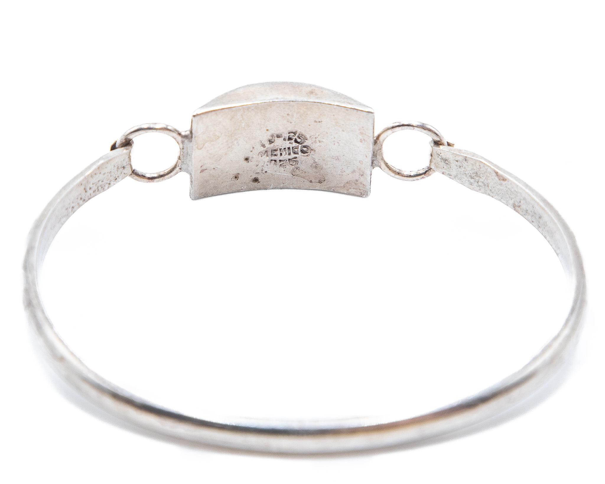 Signed TJ-25 Taxco Mexico Sterling Turquoise Eye Hook Bangle Bracelet 20g