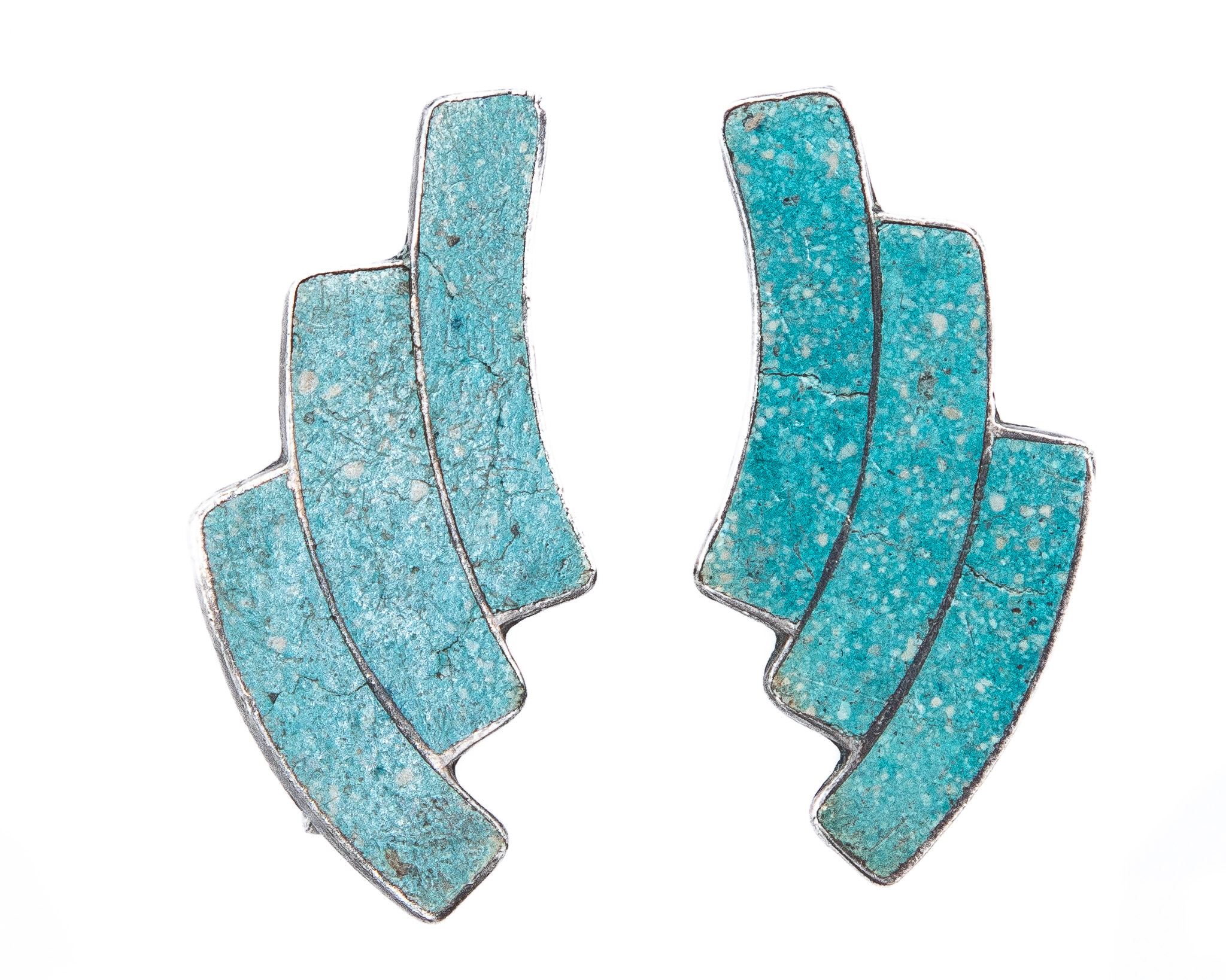 Vintage Mexico Crushed Turquoise Sterling Earrings 6g