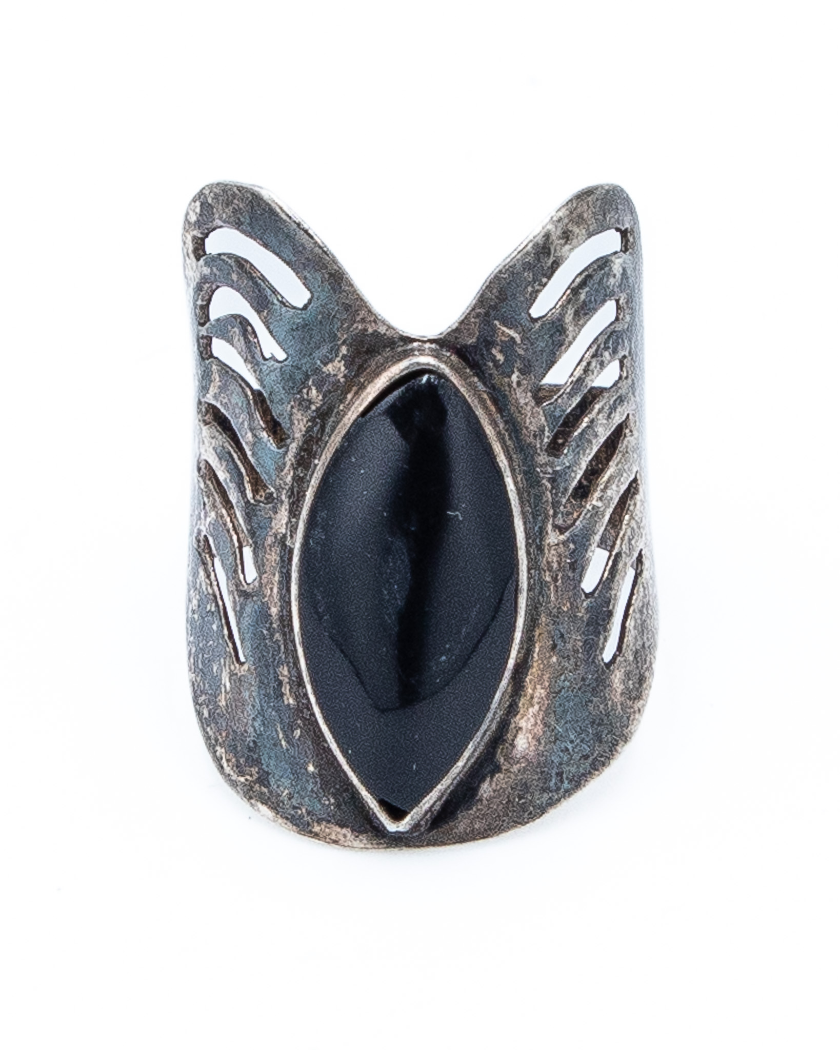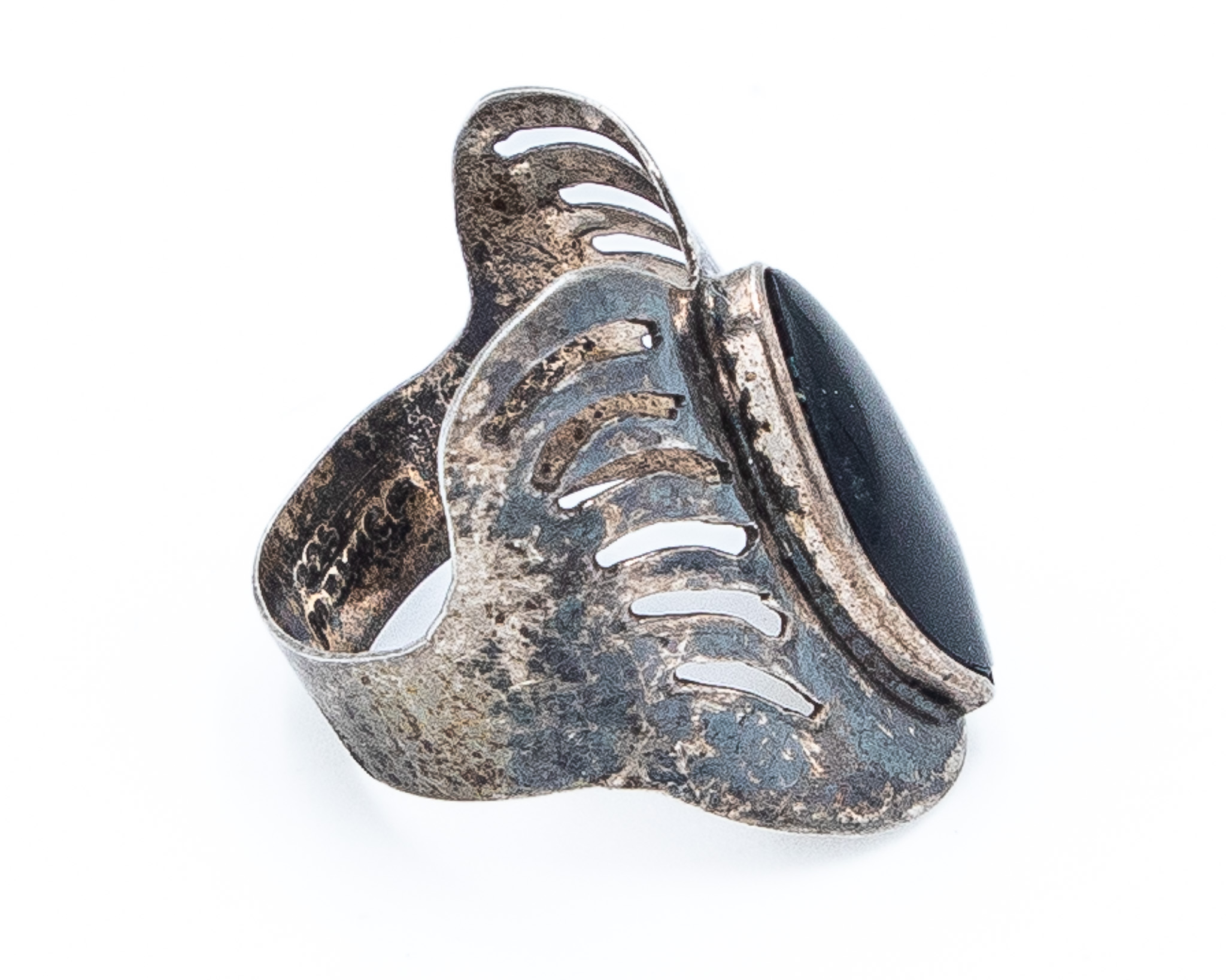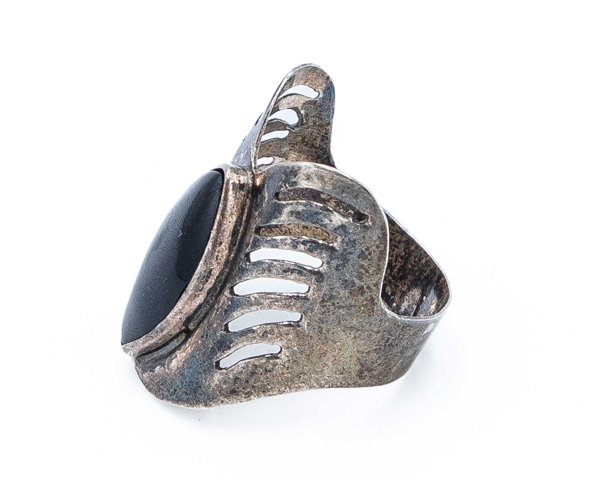 Vintage Mexico Onyx Sterling Ring Sz 6, 3.5g