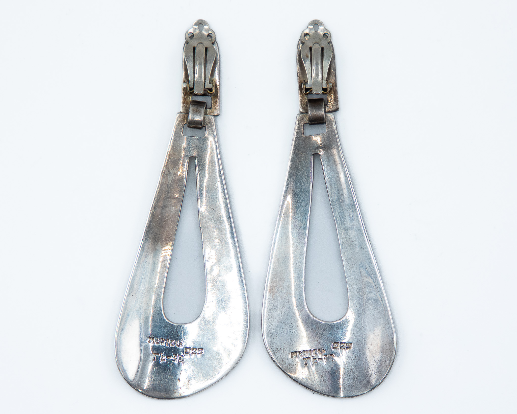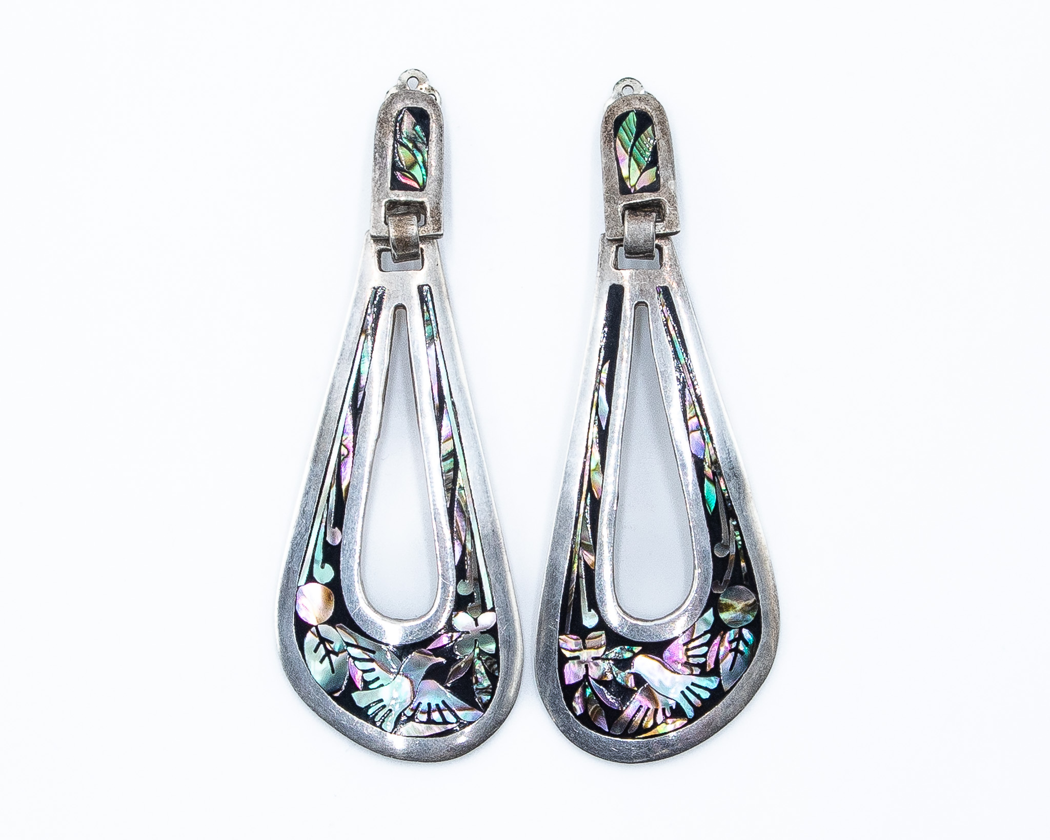 Signed TC-32 Onyx Abalone Sterling Dangle Earrings 23g
