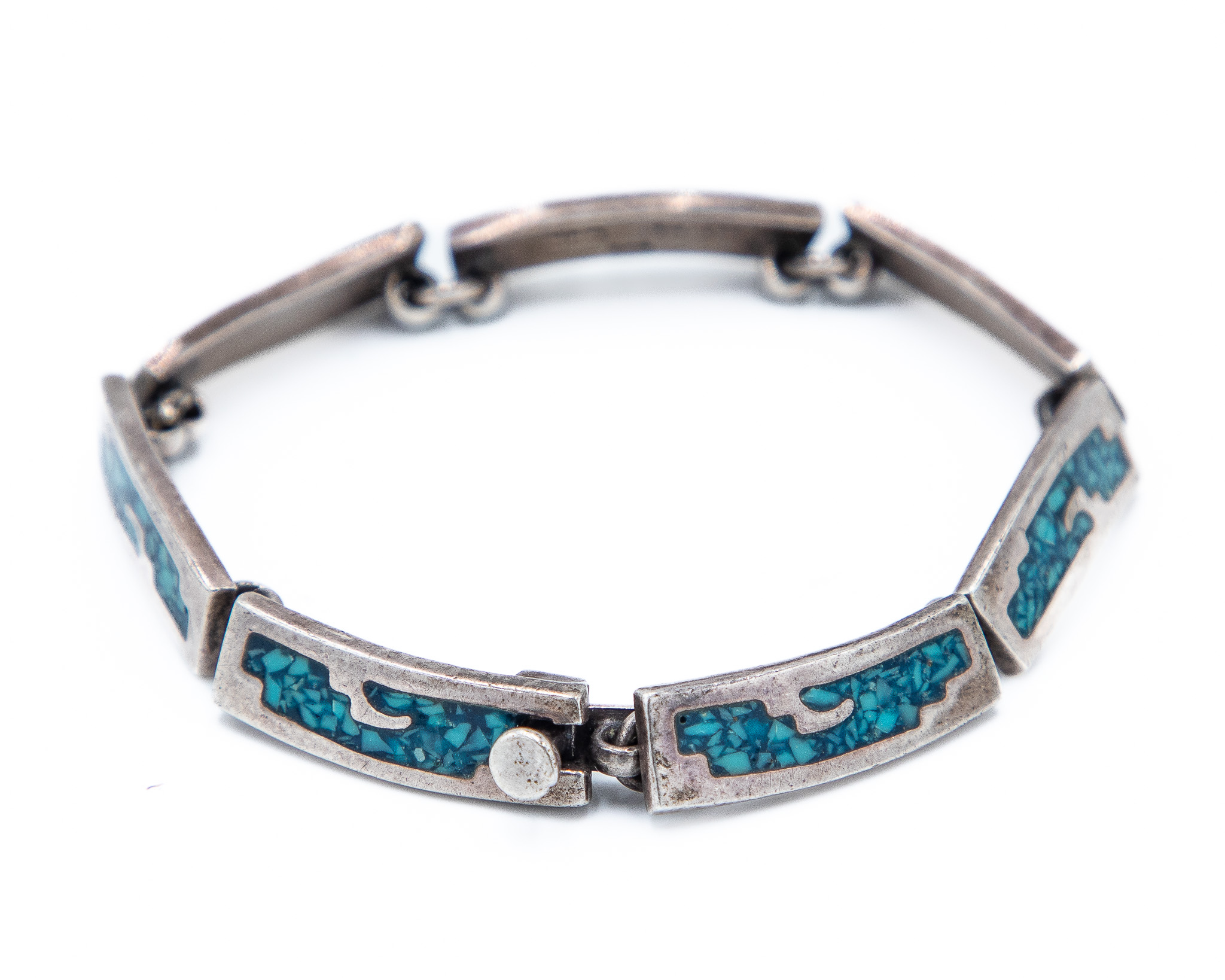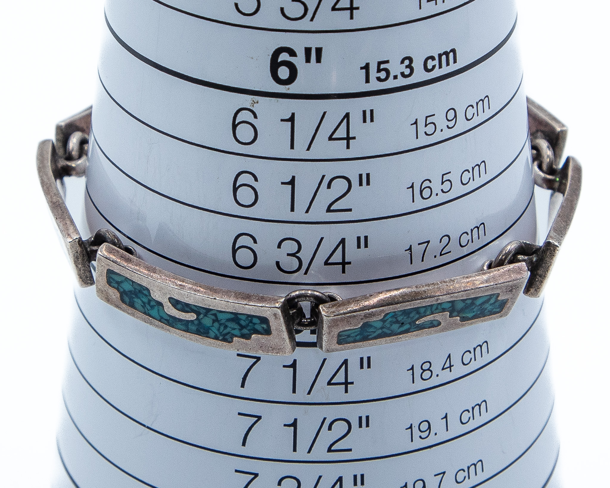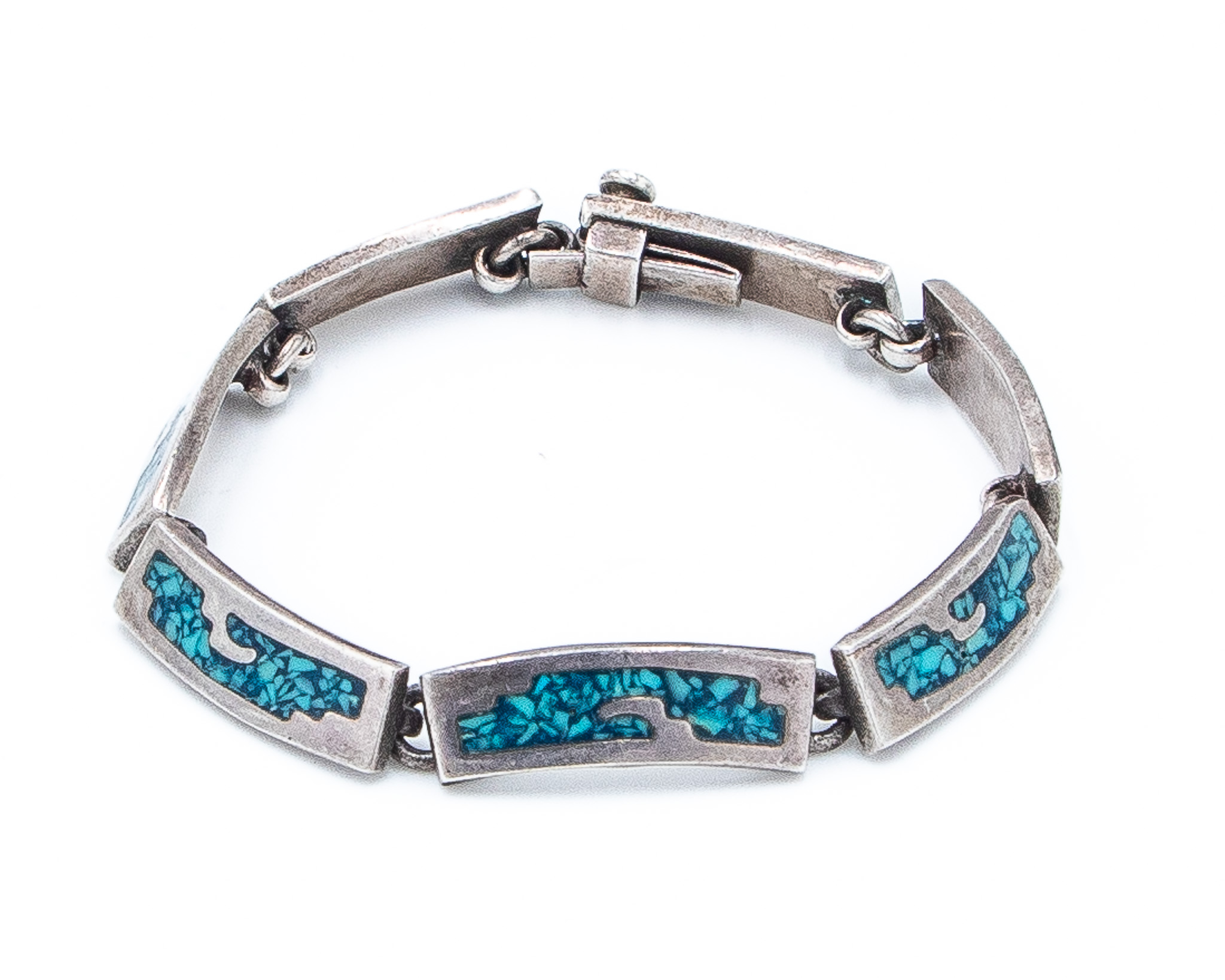 Signed TM-223 Taxco Mexico Crushed Turquoise Sterling Bracelet 32g