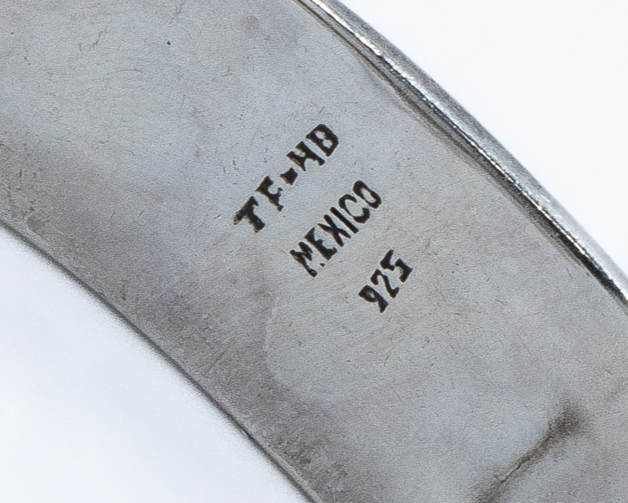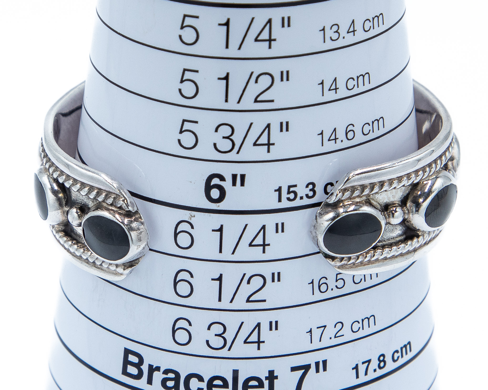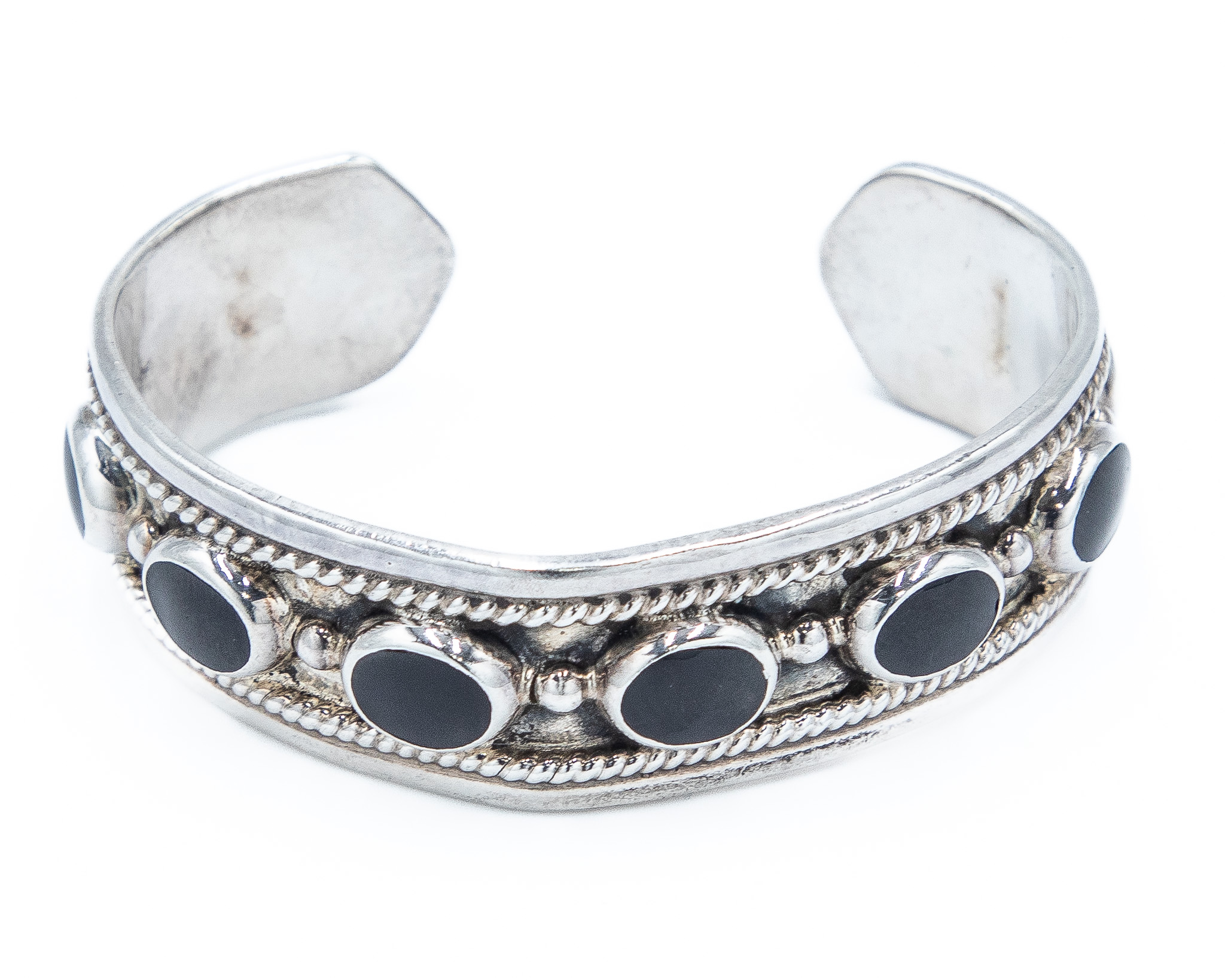 Signed TF-48 Taxco Mexico Onyx Sterling Cuff Bracelet 41g